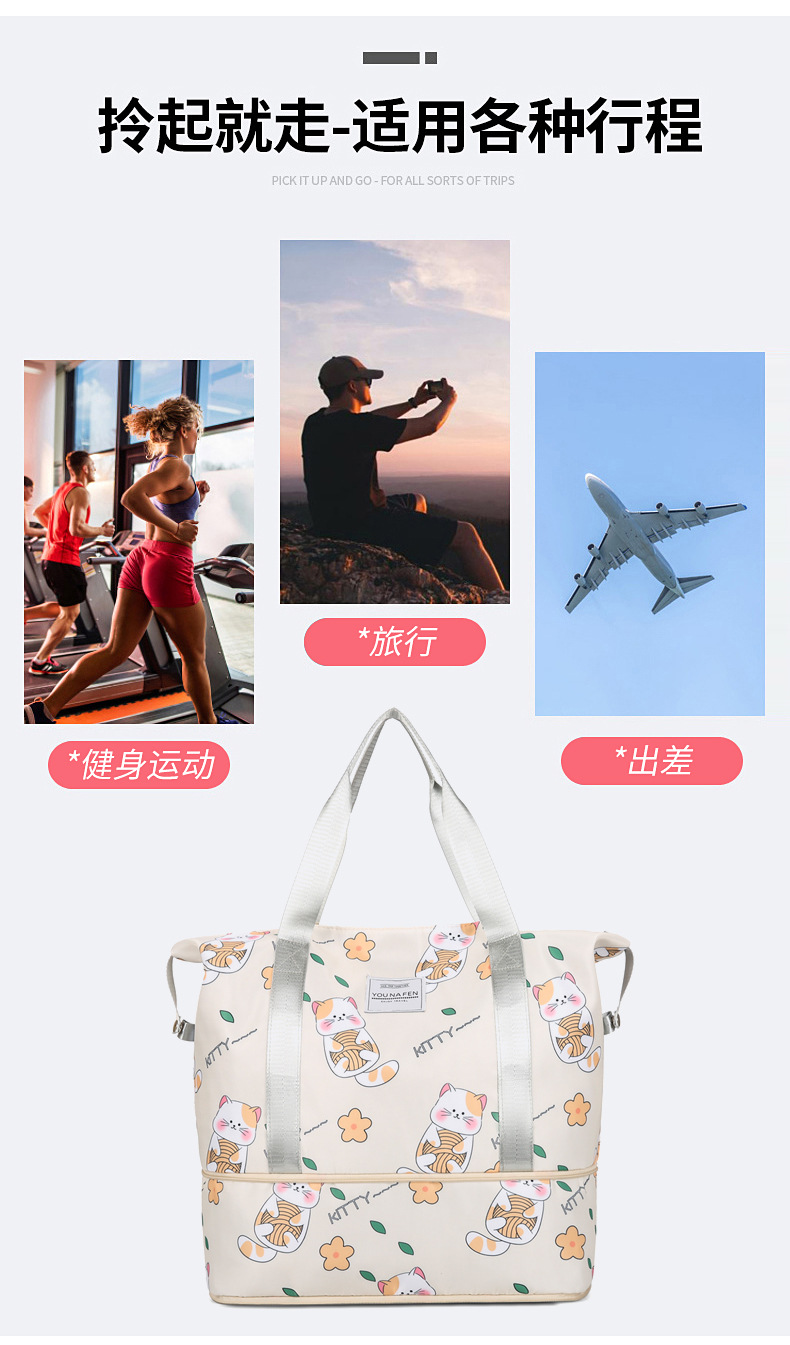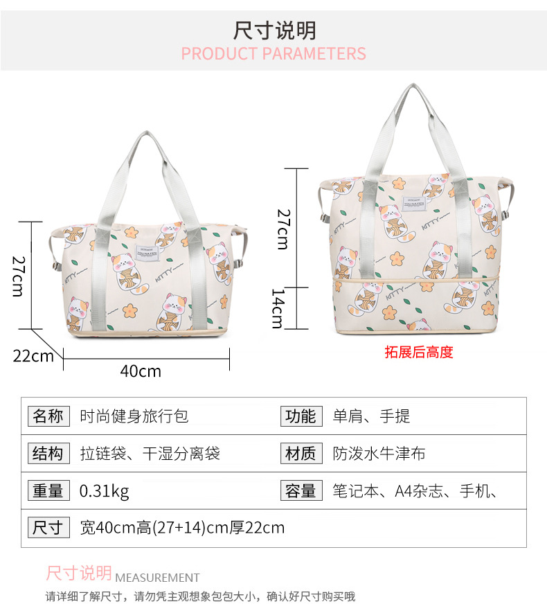 여행 가방 소매 트롤리 케이스 보관 가방 여성용 휴대용 단거리 수하물 가방 건조하고 젖은 분리 된 비즈니스 여행 보관 가방스토어 가기