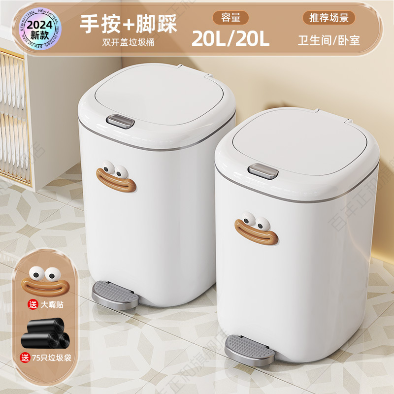 • 16L+20L 문라이트 화이트❤️발 + 손 누르기, 쓰레기 봉투 75개 + 큰 입 스티커