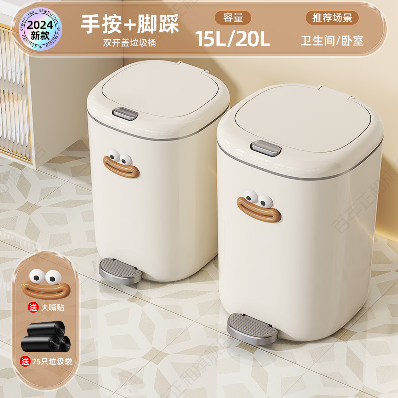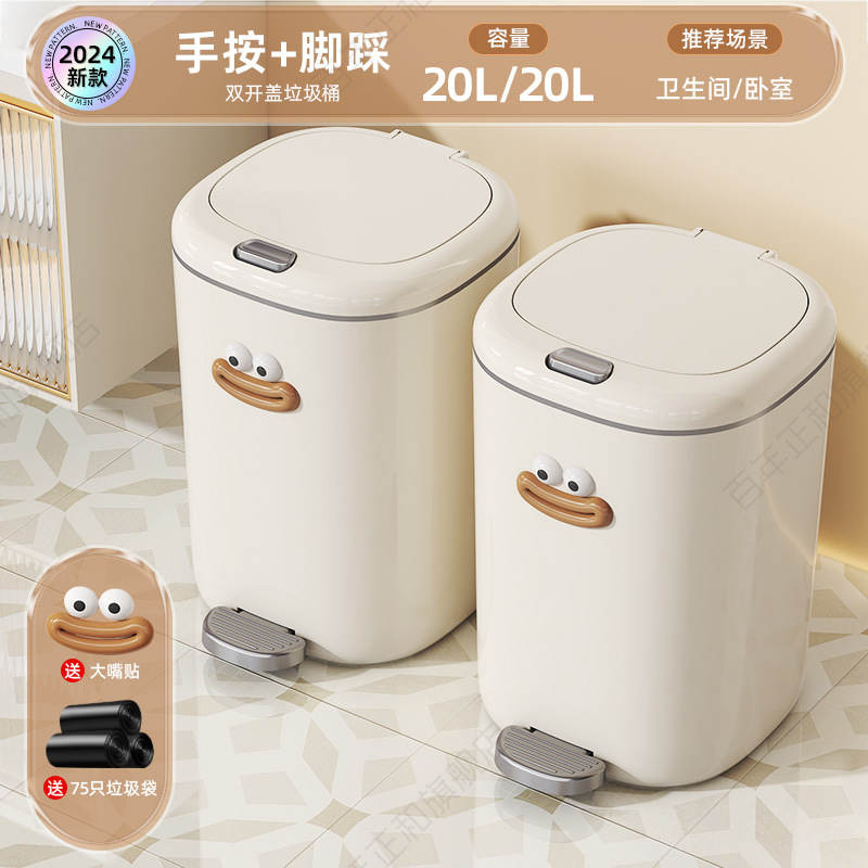 • 16L+20L 크림색❤️발 + 손 누르기, 쓰레기 봉투 75개 + 큰 입 스티커