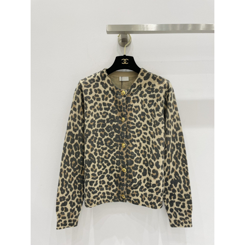 난유 여자 레오파드 자카드 니트 카디건 여자 2024 년 가을과 겨울 새 라운드 넥 하이 엔드 긴팔 탑