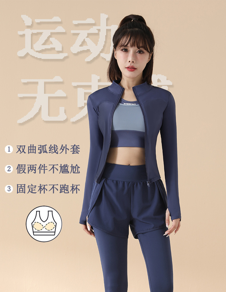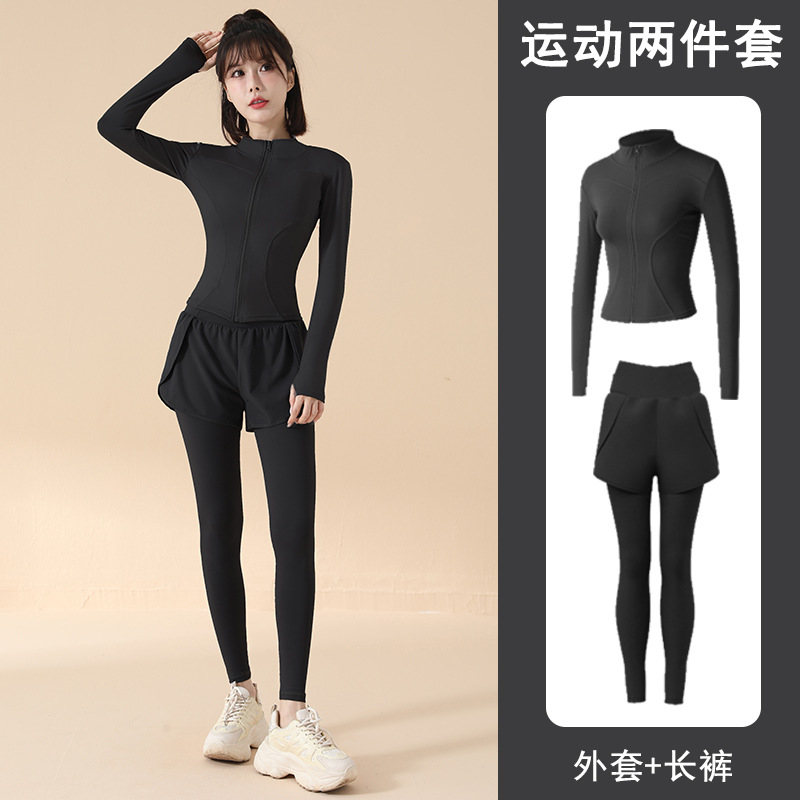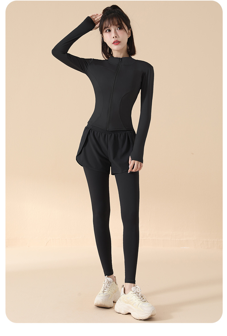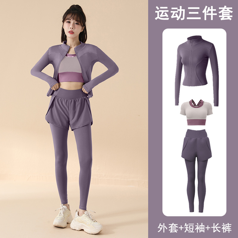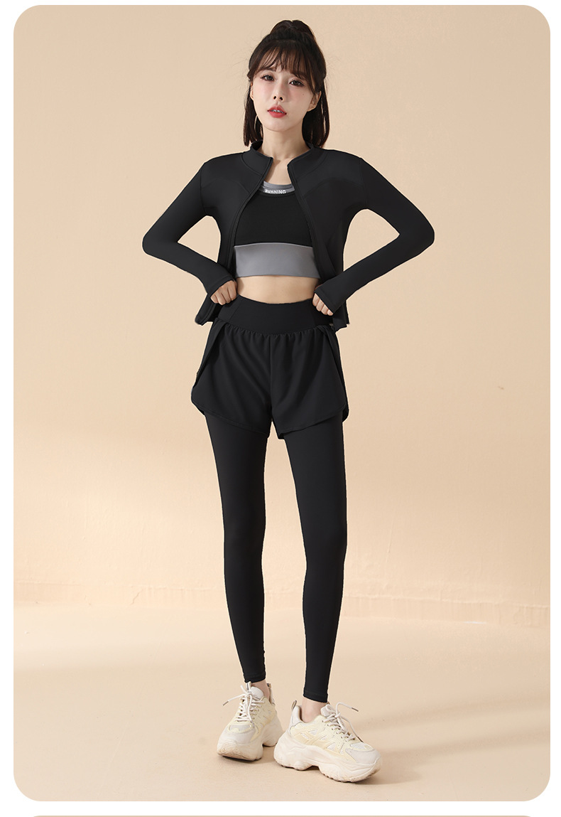 스포츠 세트 여성 피트니스 의류 대조 컬러 짧은 소매 봄과 가을 빠른 건조 달리기 알몸 요가 세트 2024 새로운 요가