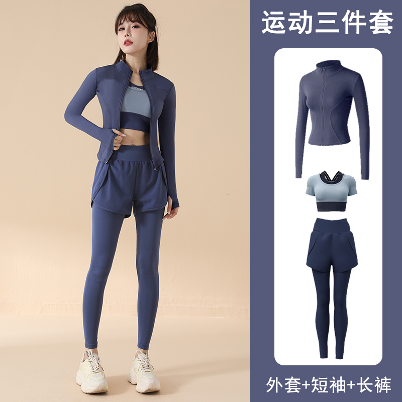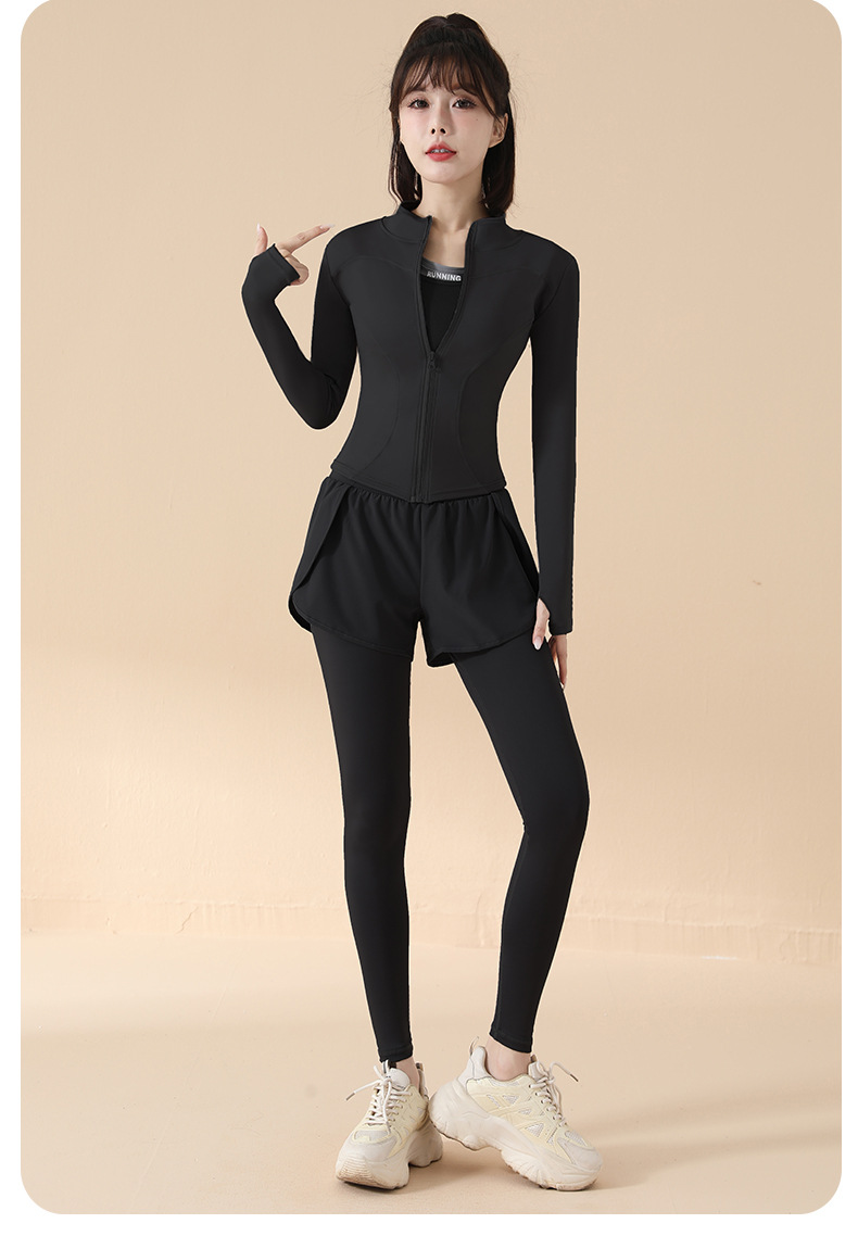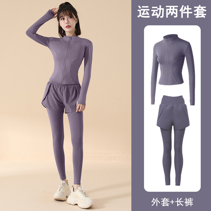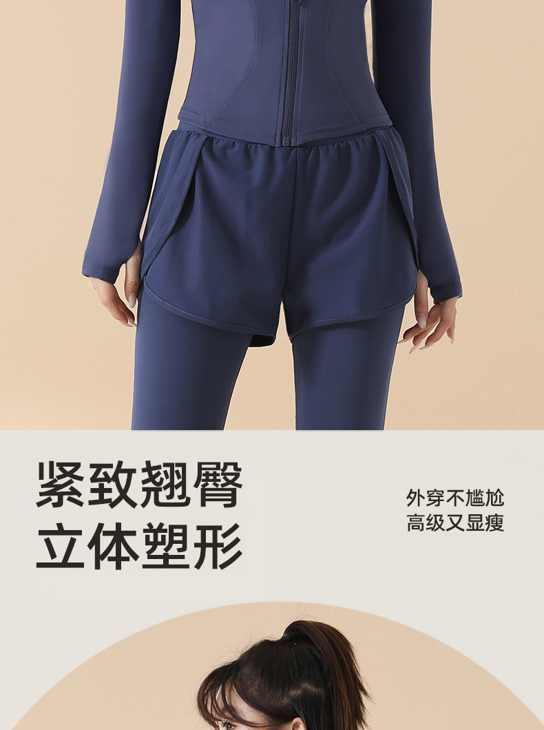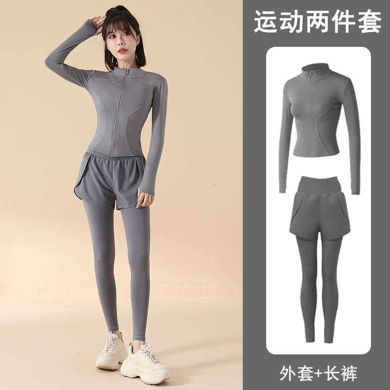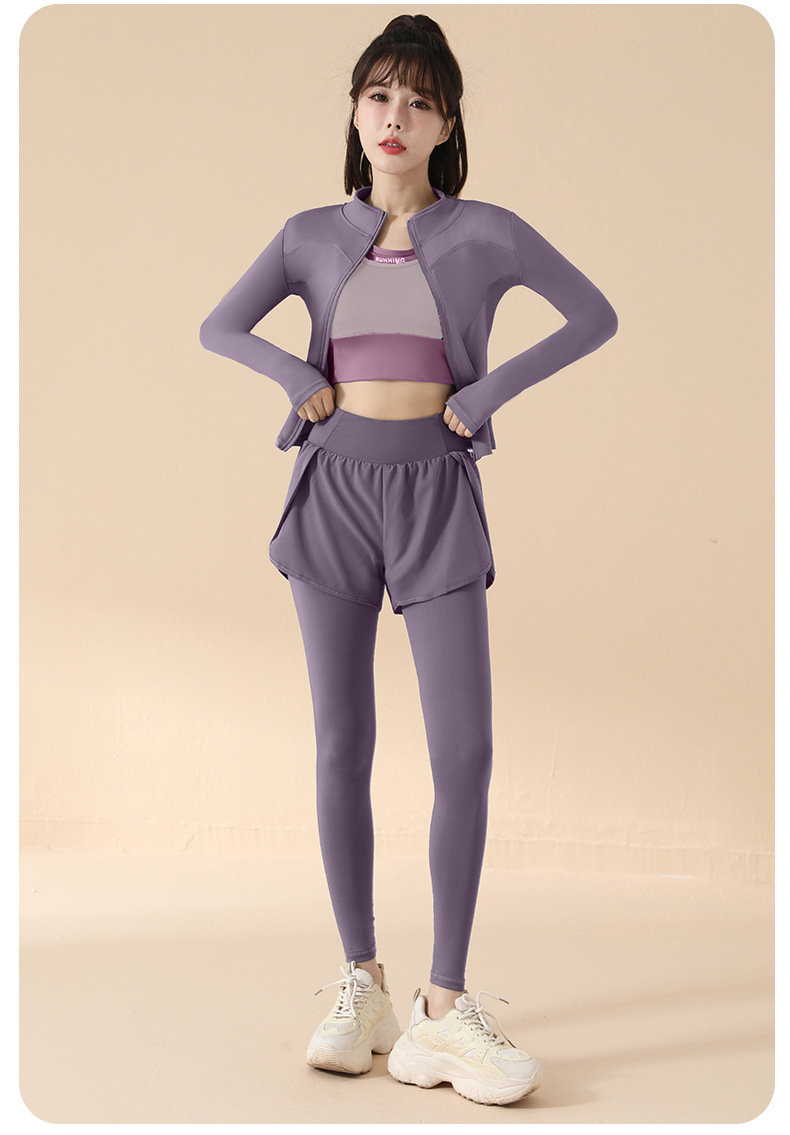 스포츠 세트 여성 피트니스 의류 대조 컬러 짧은 소매 봄과 가을 빠른 건조 달리기 알몸 요가 세트 2024 새로운 요가
