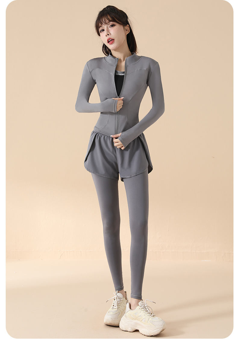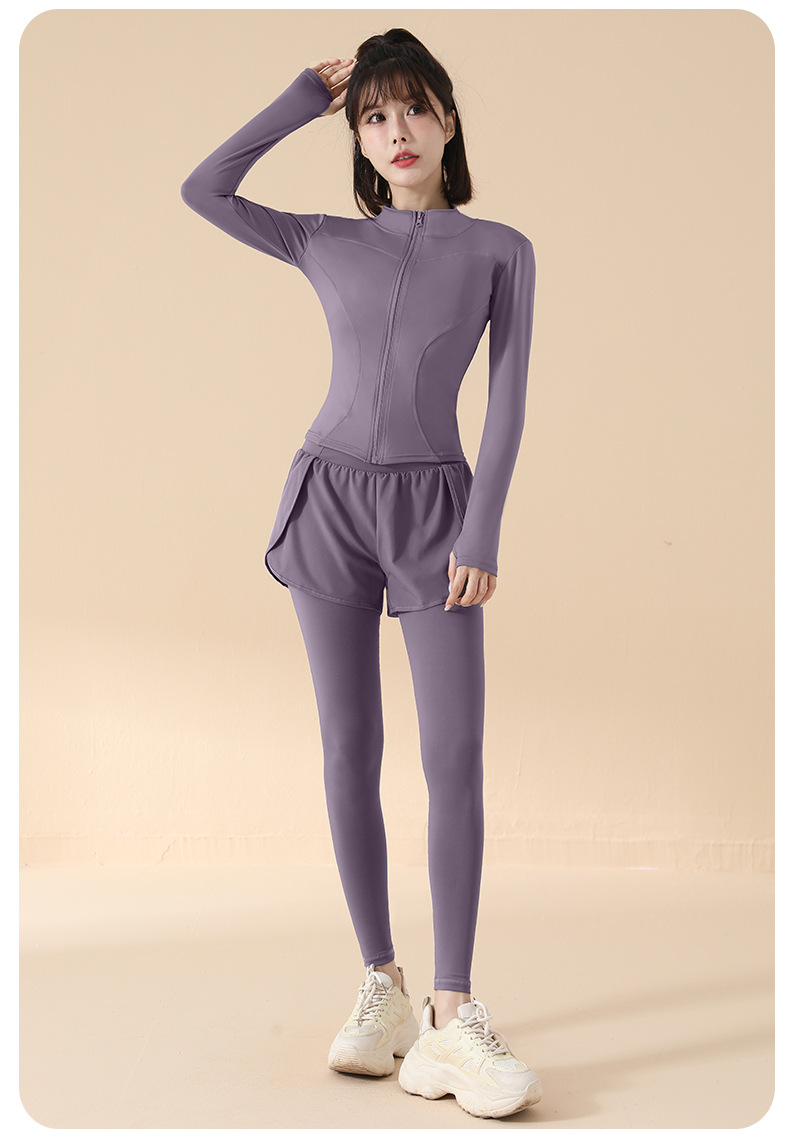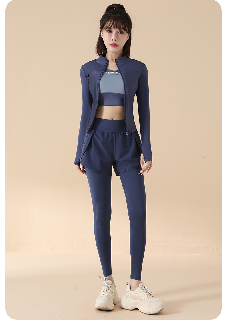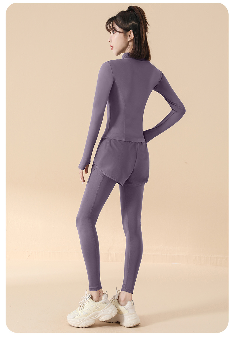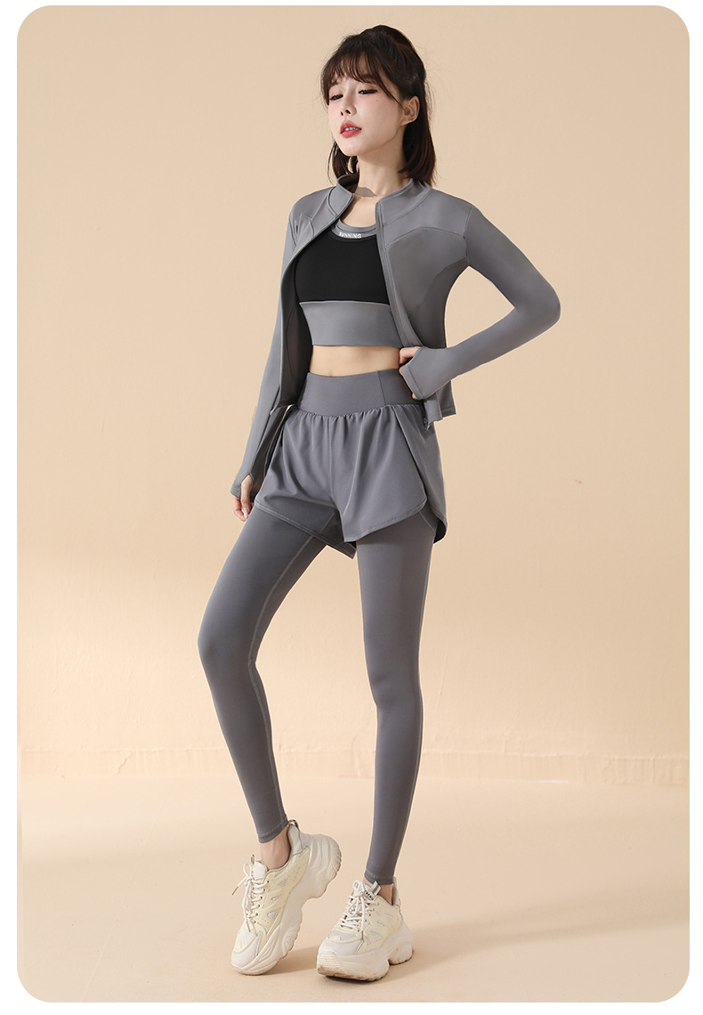 스포츠 세트 여성 피트니스 의류 대조 컬러 짧은 소매 봄과 가을 빠른 건조 달리기 알몸 요가 세트 2024 새로운 요가