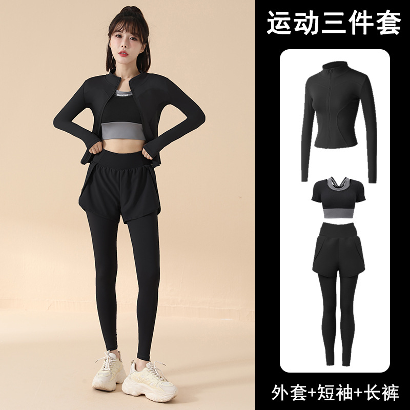 스포츠 세트 여성 피트니스 의류 대조 컬러 짧은 소매 봄과 가을 빠른 건조 달리기 알몸 요가 세트 2024 새로운 요가스토어 가기