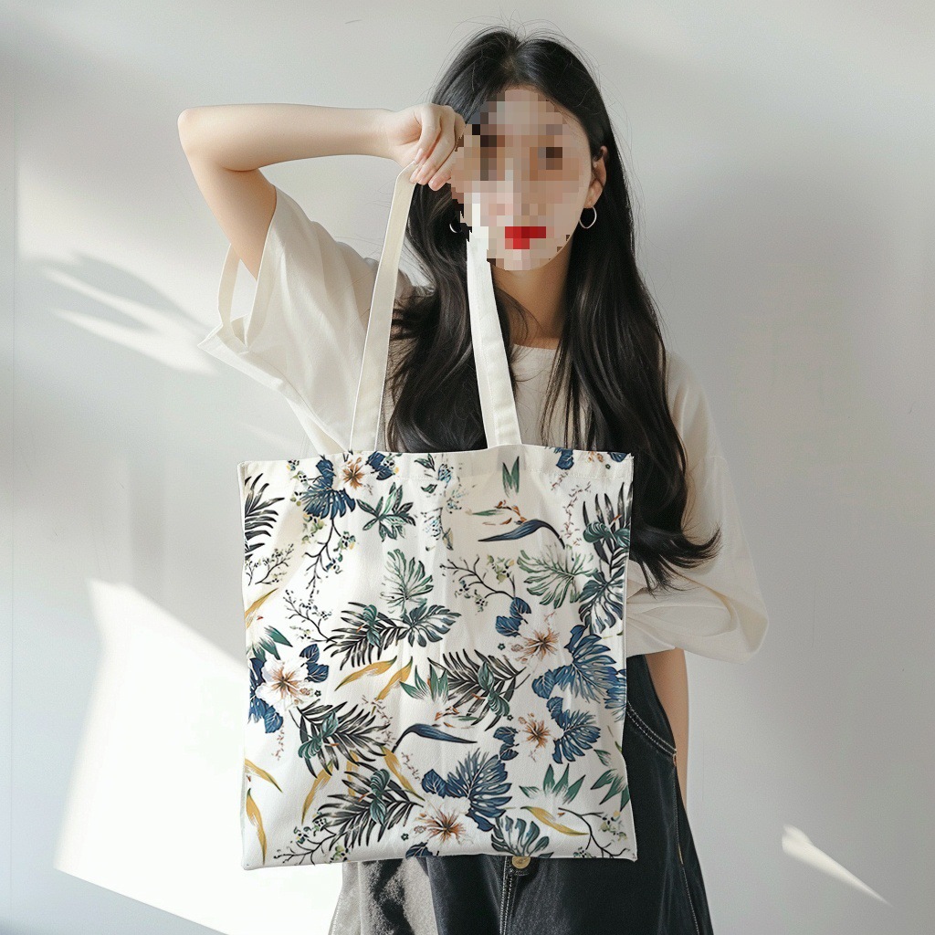 빈티지 예술 식물 인쇄 캔버스 가방 통근 학교 대용량 어깨 가방 노트북 토트 백 통근 가방