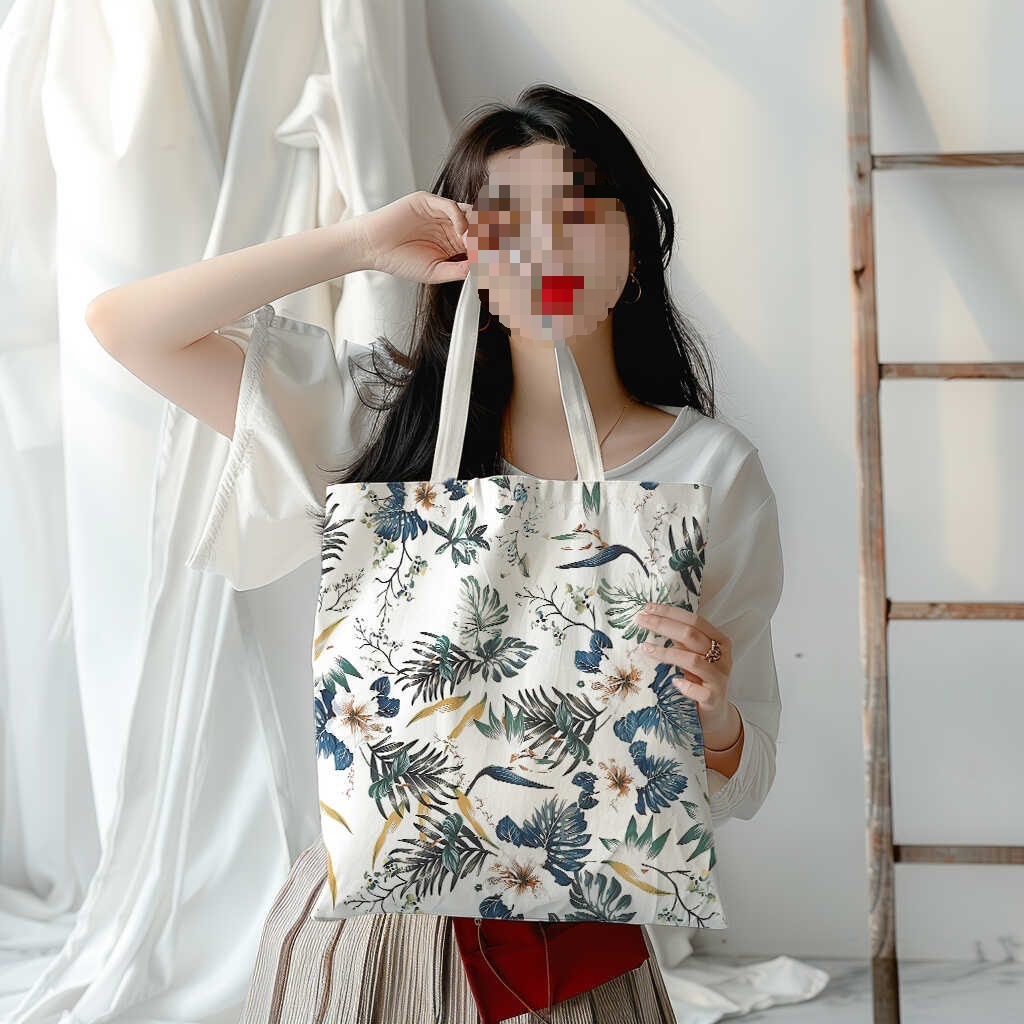 빈티지 예술 식물 인쇄 캔버스 가방 통근 학교 대용량 어깨 가방 노트북 토트 백 통근 가방스토어 가기