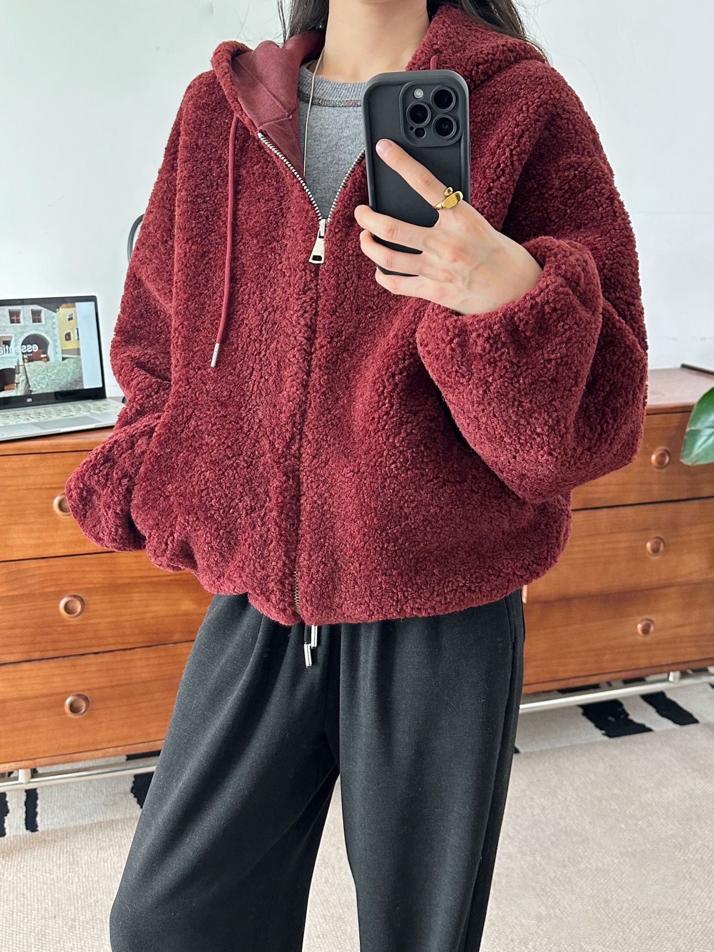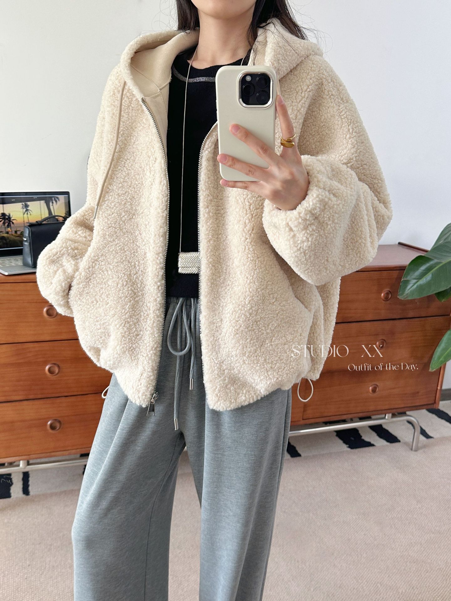 温暖软糯的羊羔毛连帽外套,品质真的太好了。