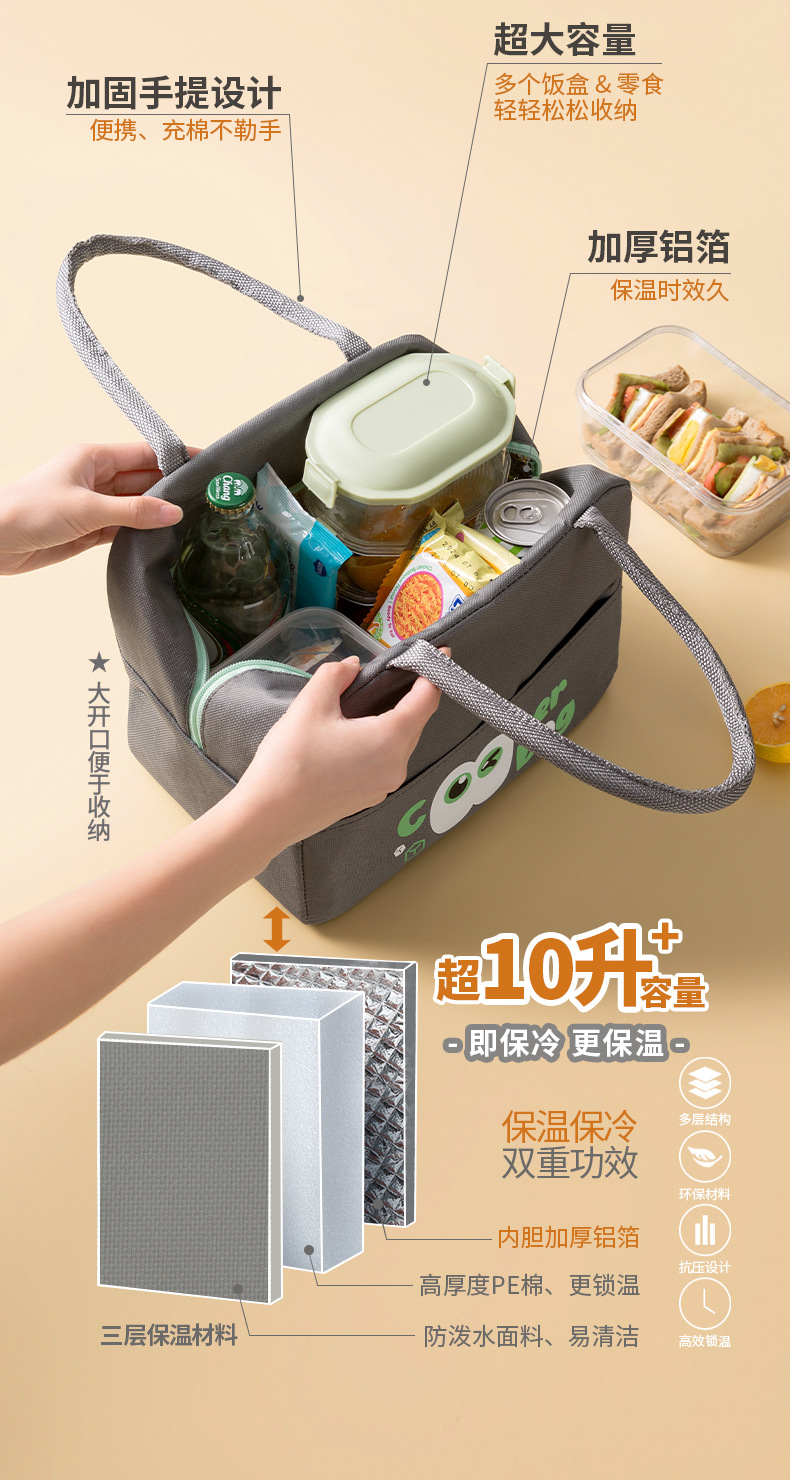 대용량 초대형 두꺼운 열 절연 휴대용 사무실 휴대용 도시락 가방 쌀 알루미늄 호일과 야외 추가 대형 도시락 가방