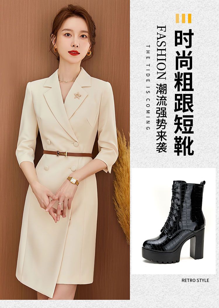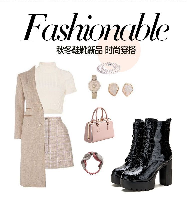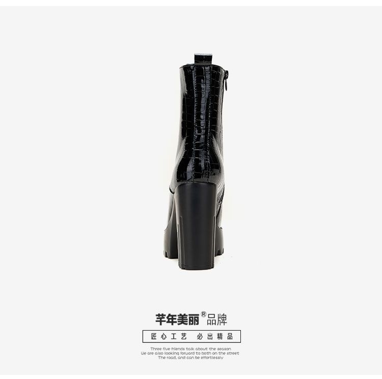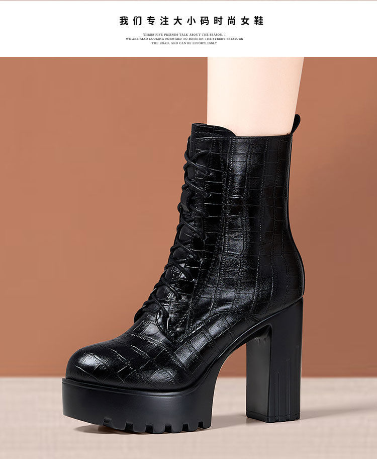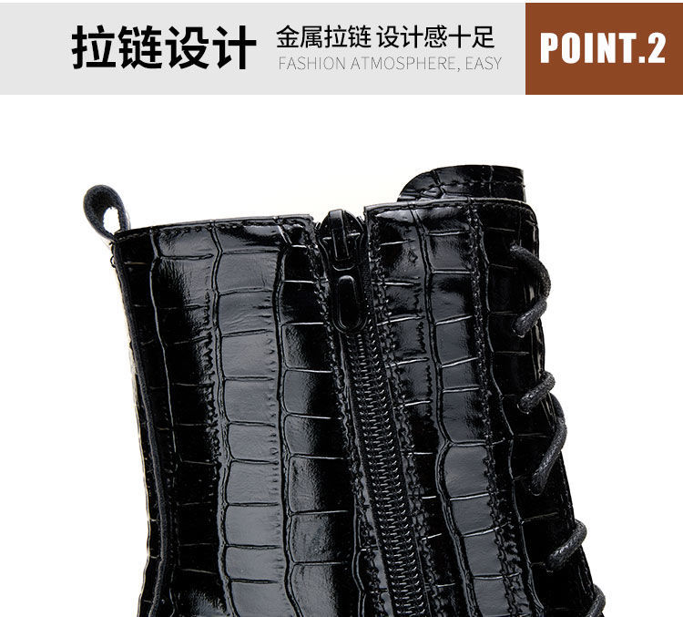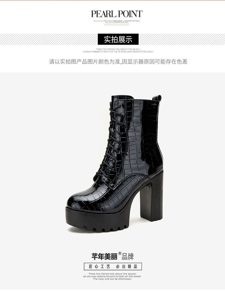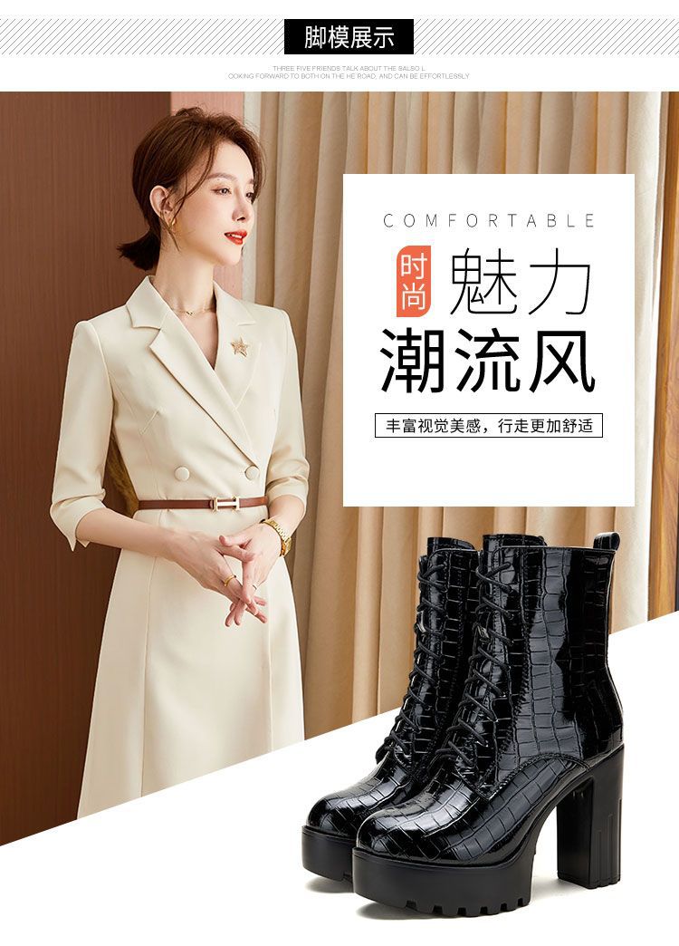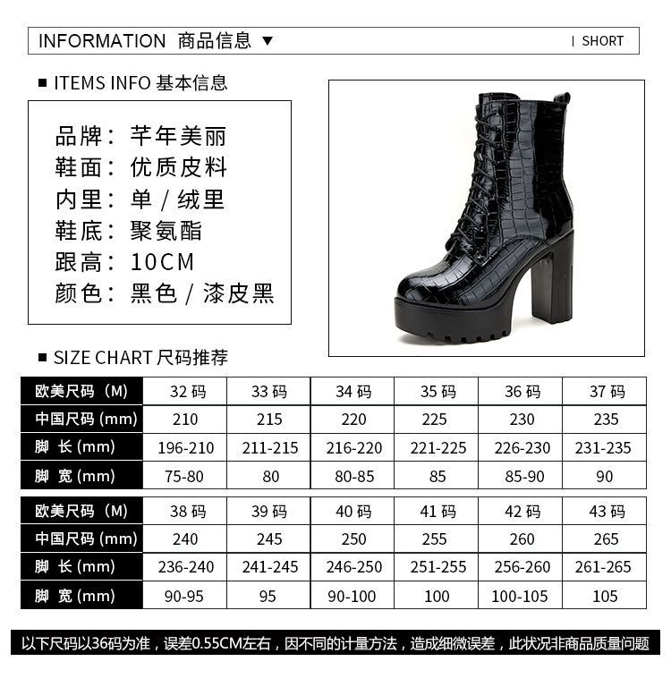 10cm 라운드 발가락 하이힐 마틴 부츠 여성 2024 가을 및 겨울 새로운 레이스 업 부츠 플러스 사이즈 하이힐 특허 가죽 쇼트 부츠스토어 가기