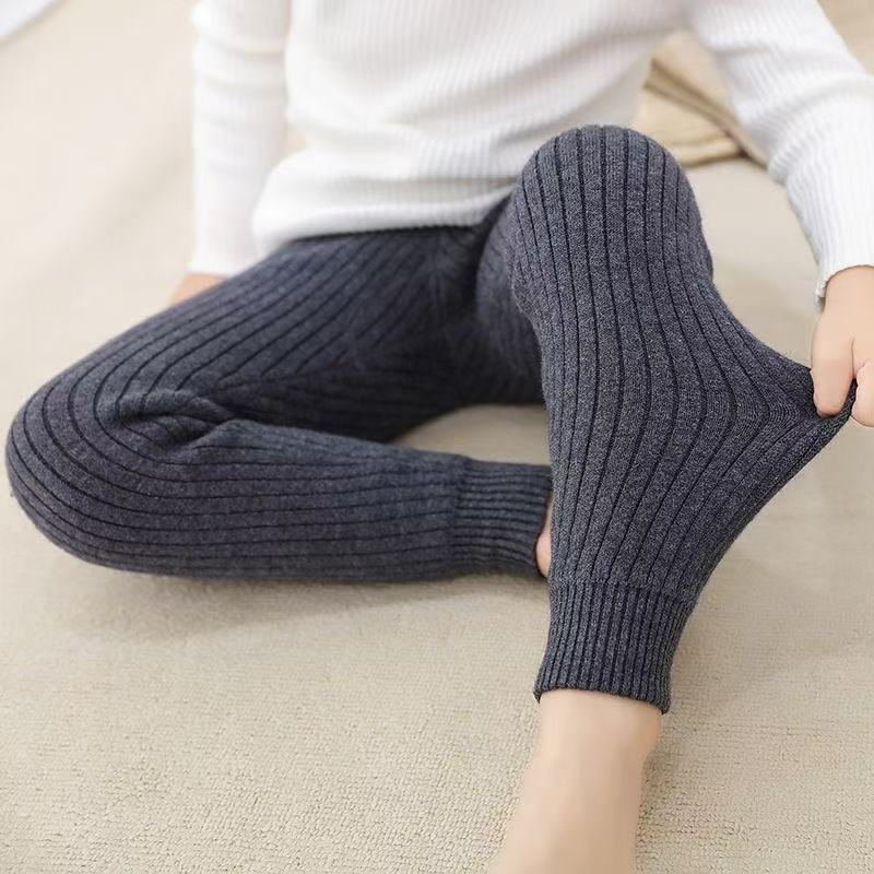 가을과 겨울 두꺼운 어린이 양모 바지 소년 소녀 캐시미어 바지 니트 드로우 스트링 바토밍 양모 바지 큰 어린이 따뜻한 바지
