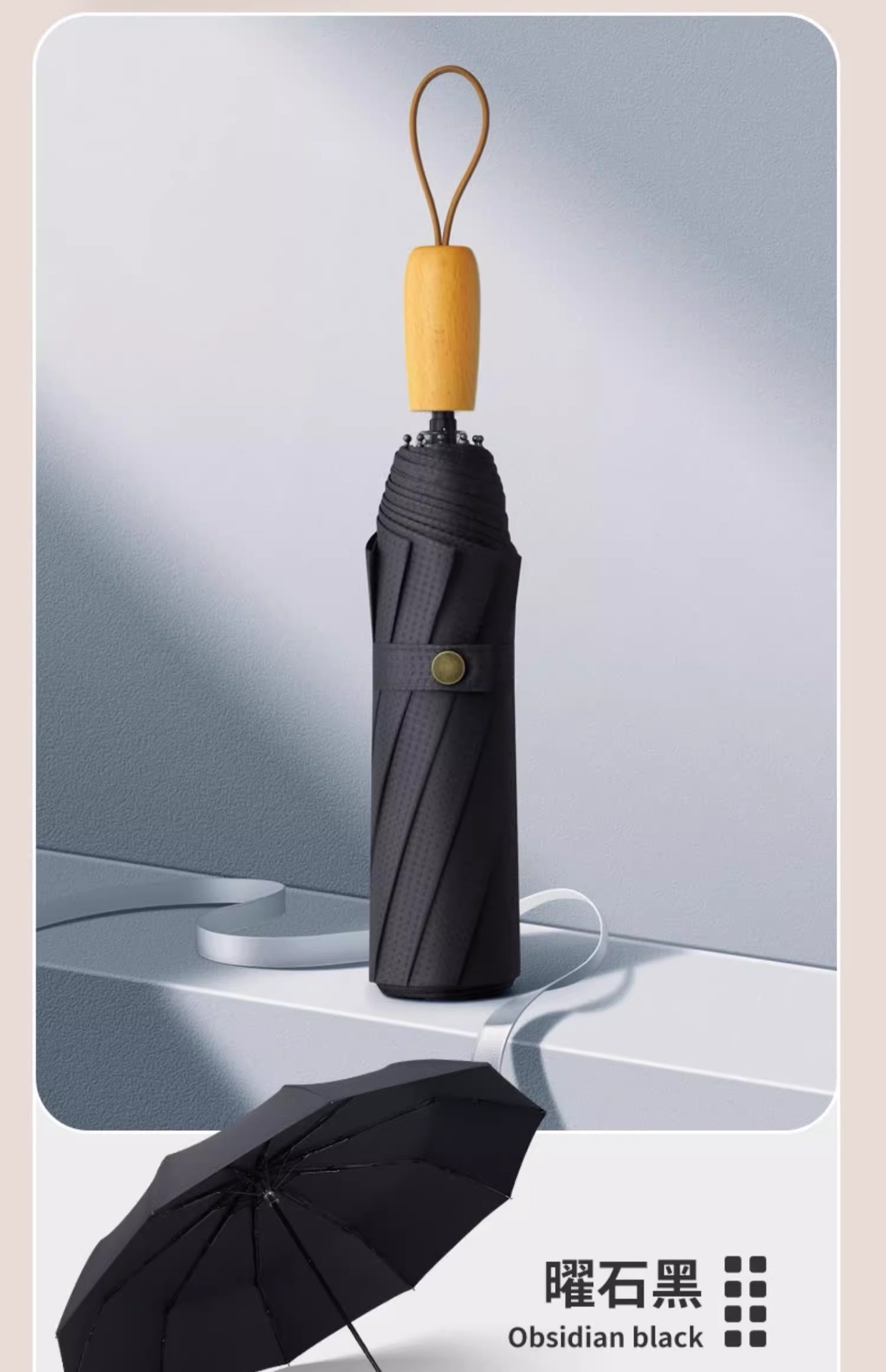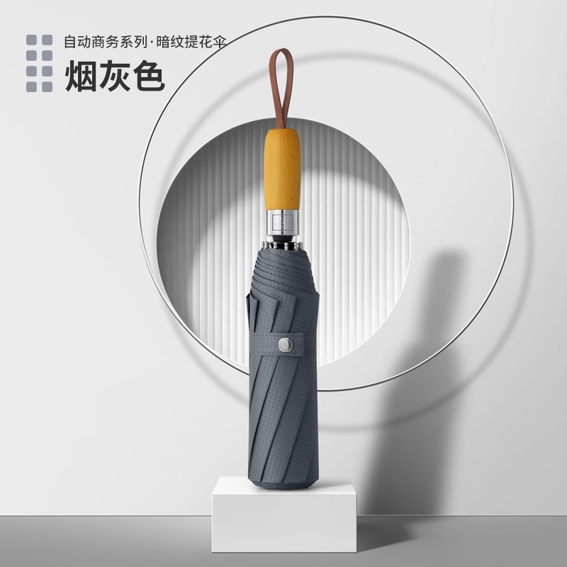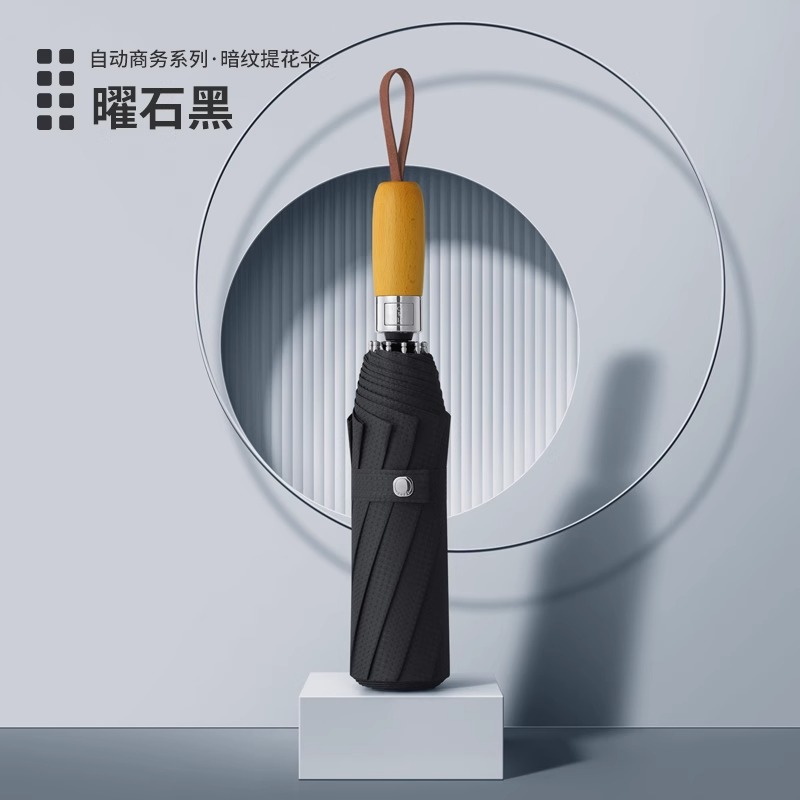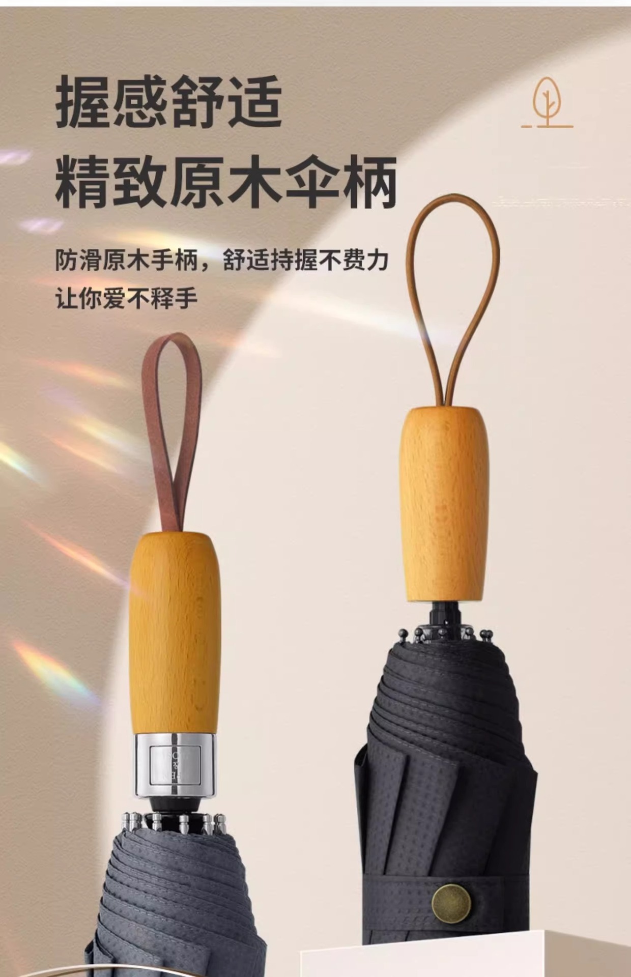DX 나무 손잡이 고급 감각 완전 자동 남성 초대형 두껍게 강화 강한 바람에 저항하는 두 배 접히는 우산 사업 우산스토어 가기