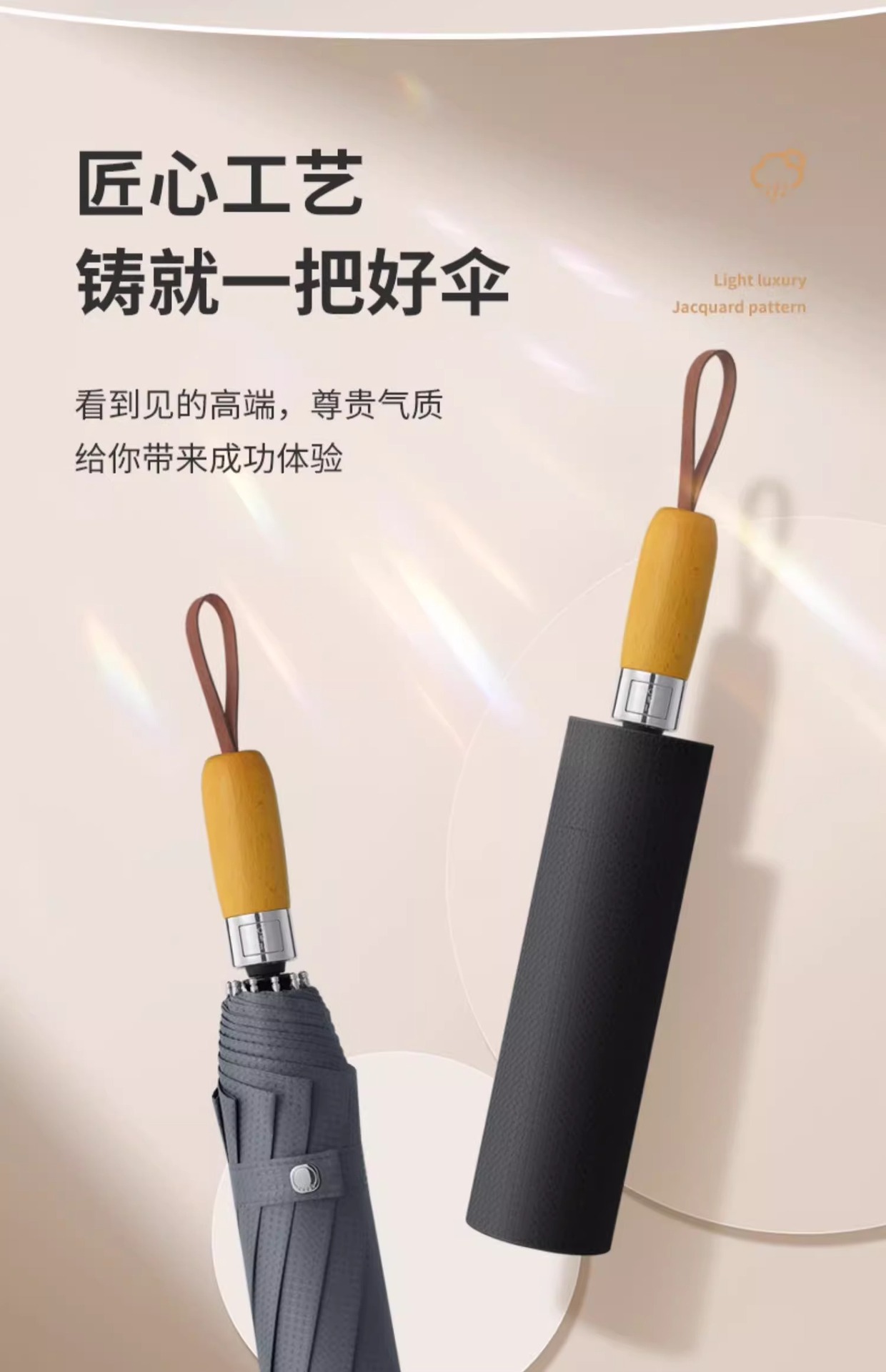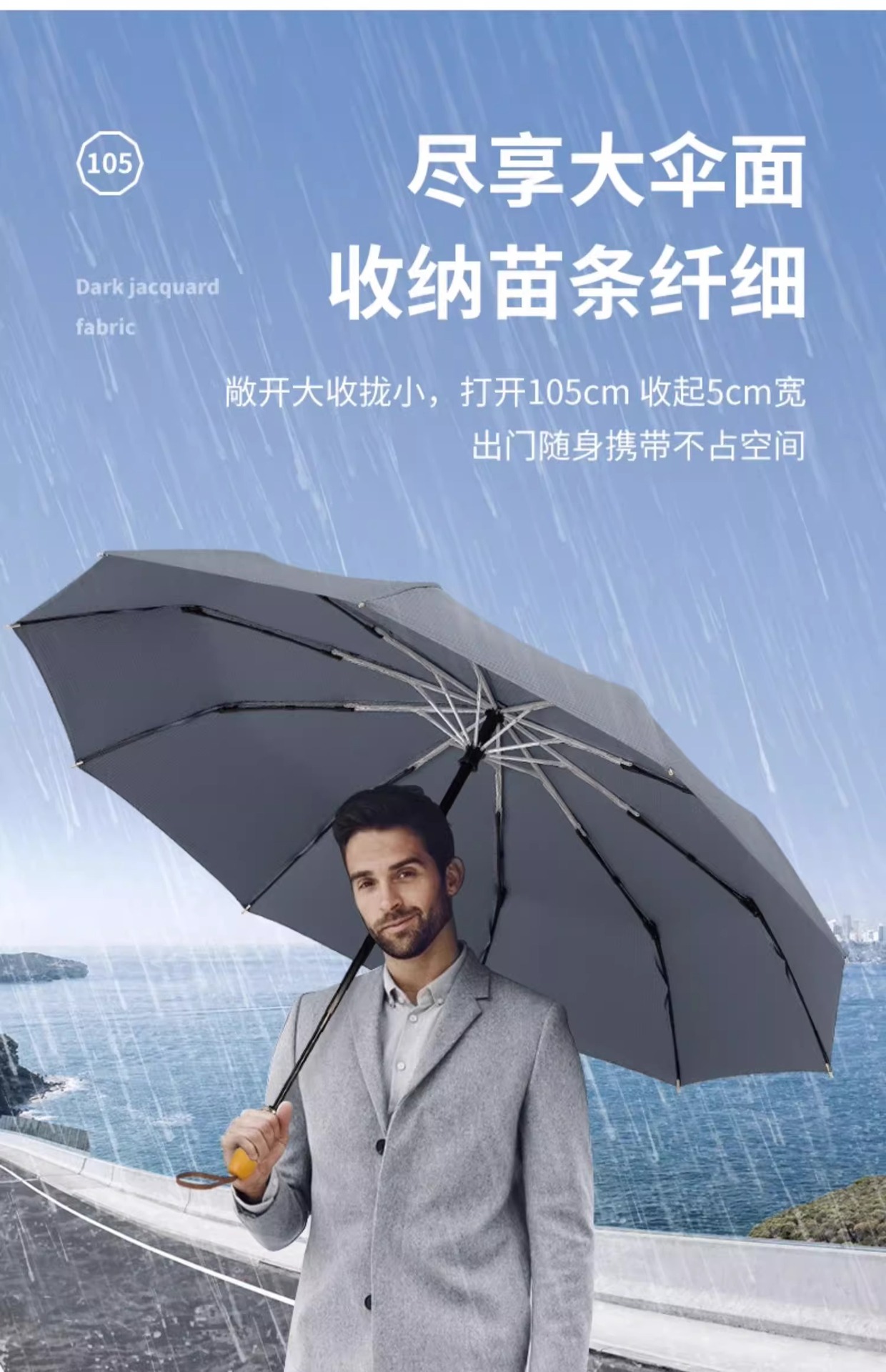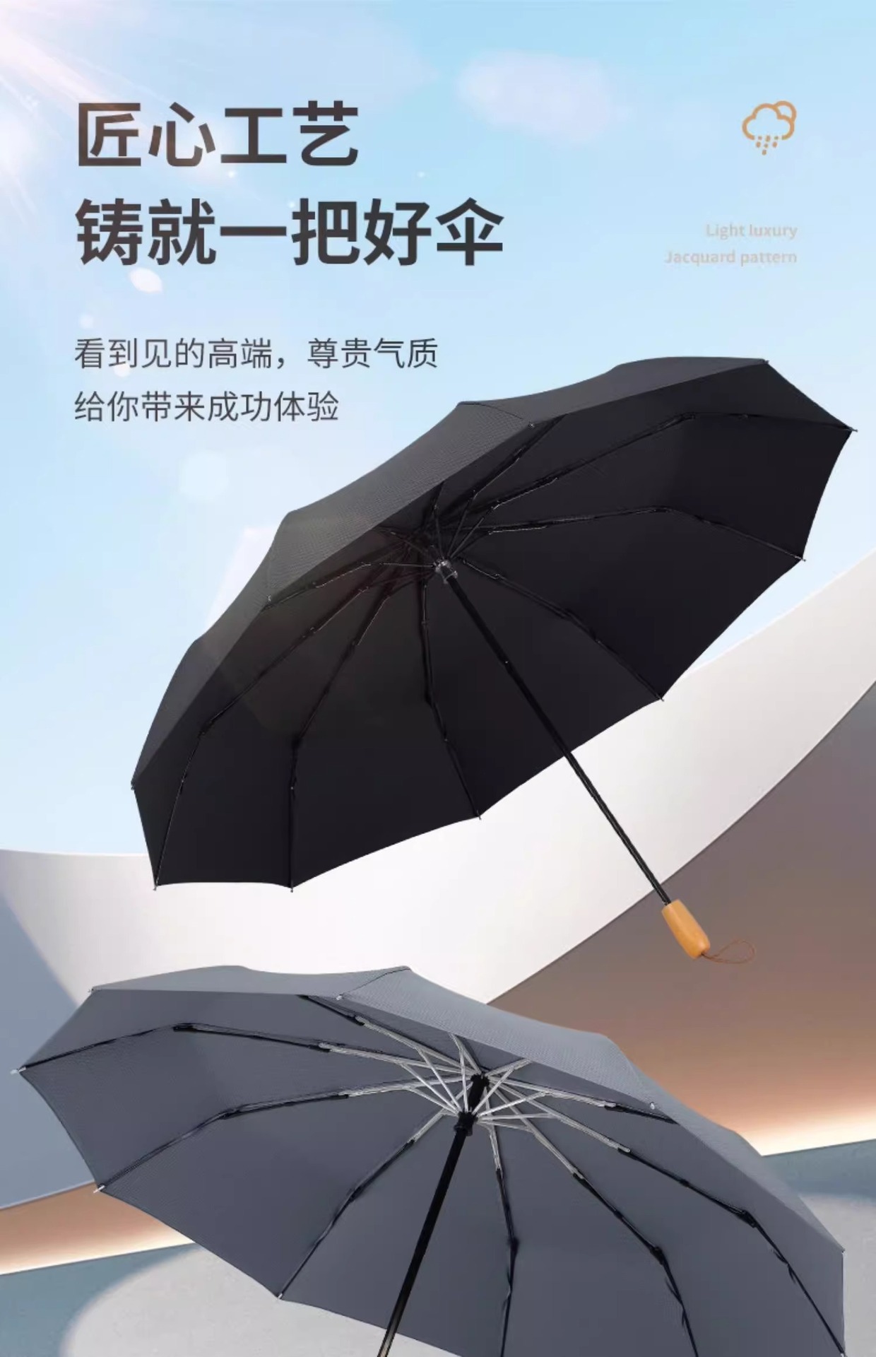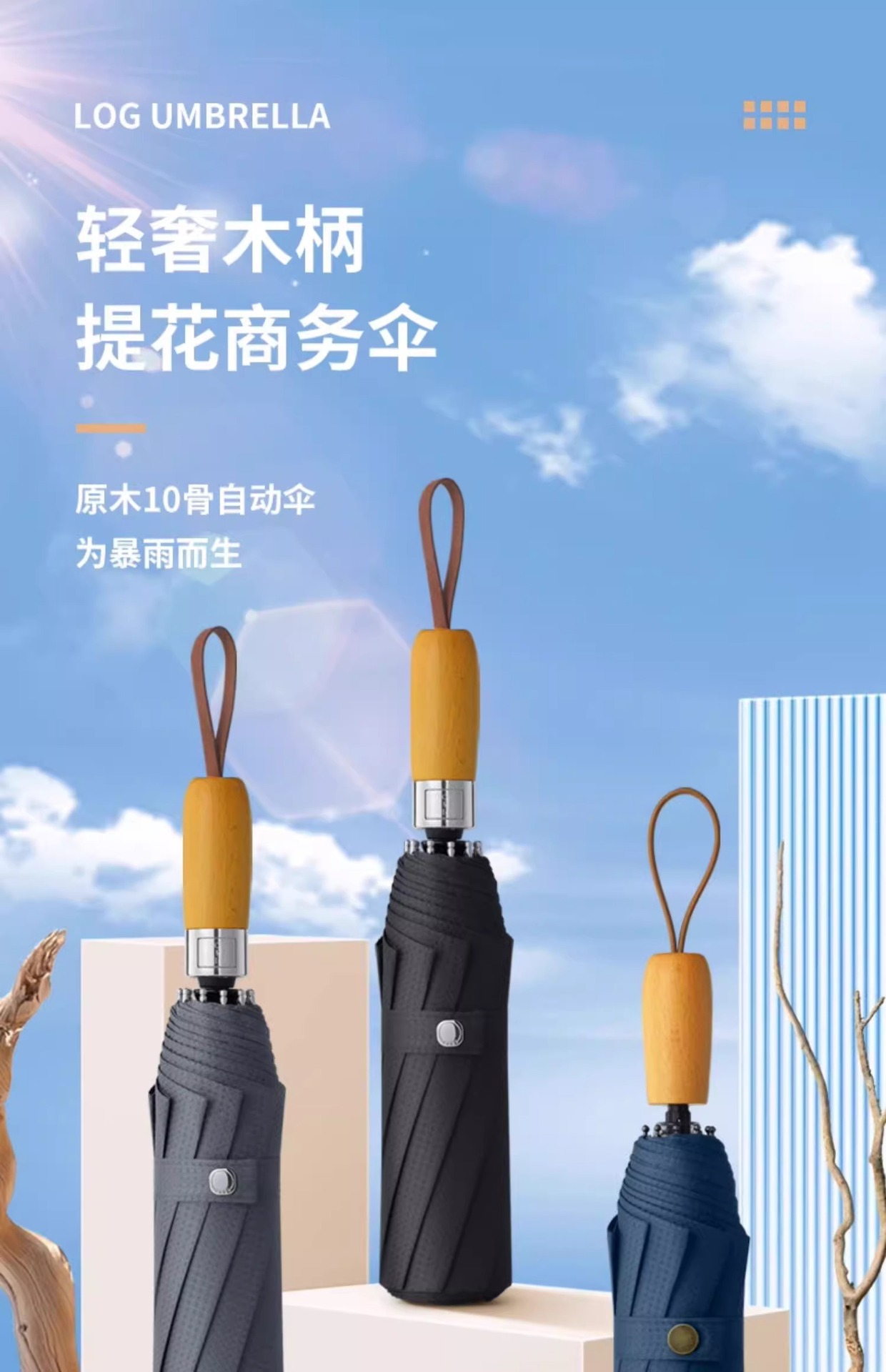 DX 나무 손잡이 고급 감각 완전 자동 남성 초대형 두껍게 강화 강한 바람에 저항하는 두 배 접히는 우산 사업 우산스토어 가기