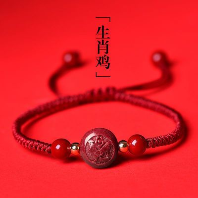 2022 Cinnabar Zodiac Red Rope 팔찌 커플의 올해 이적 구슬은 호랑이 남녀 팔찌입니다.