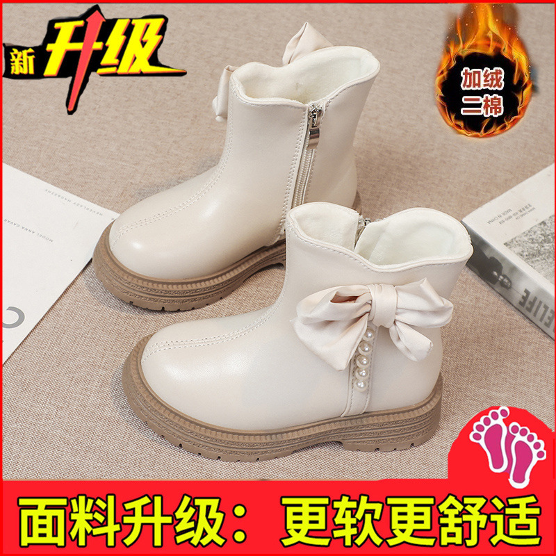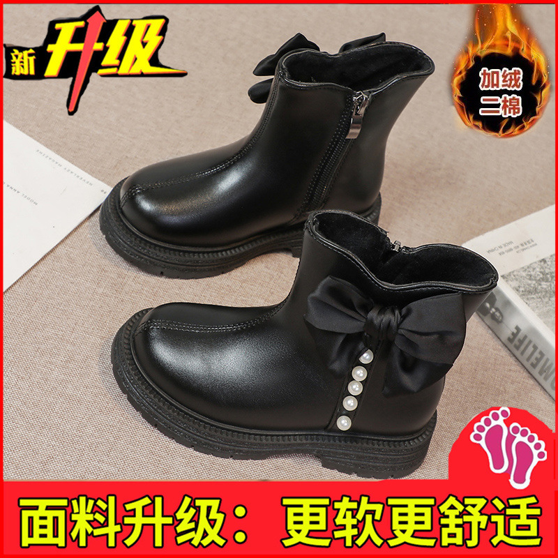 마틴 걸스 2024 가을 겨울 부츠 새로운 어린이 기모 발목 부츠 패션 세련된 향기로운 스타일 공주 가죽 부츠스토어 가기