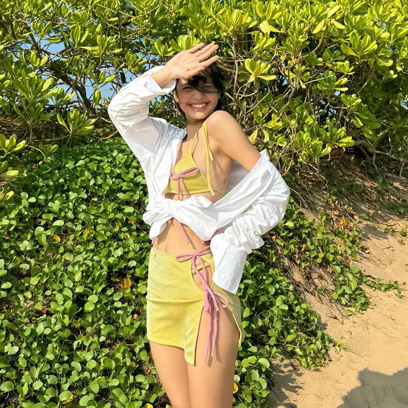 인터넷 Celebrous Lisa Same Sexy Spice Girl 3 점 비키니 비키니 스커트 3 피스 세트 여성용 하이 엔드 수영복스토어 가기