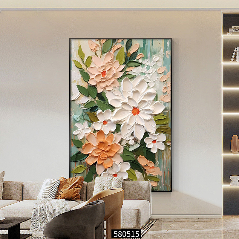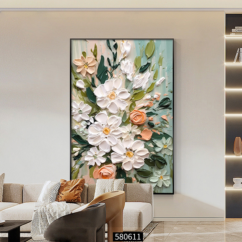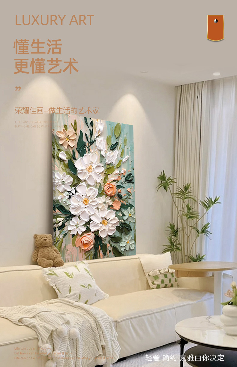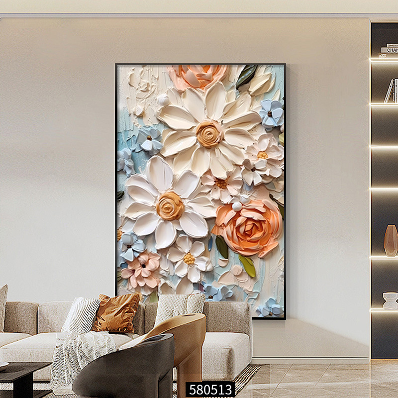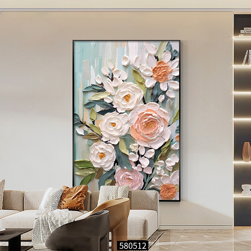 유화 바닥 그림 크림 스타일 거실 장식 그림 꽃 복도 매달려 그림 소파 배경 벽 벽화 그림