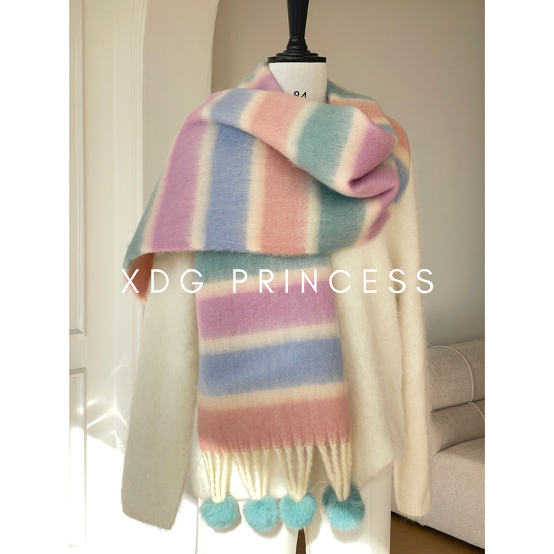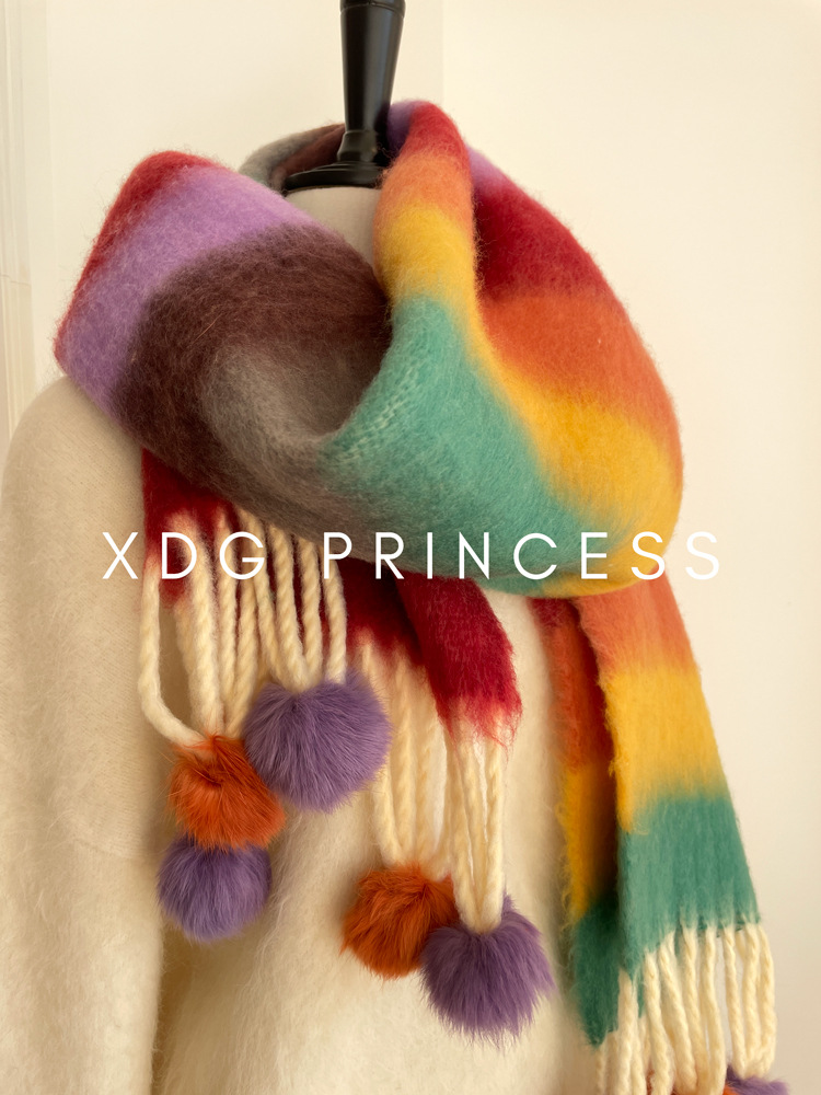 수출 한국 ~ 부드러운 왁스 슈퍼 편안함! 도파민 무지개 양모 스카프 헤어 볼 스카프 따뜻한 큰 목도리