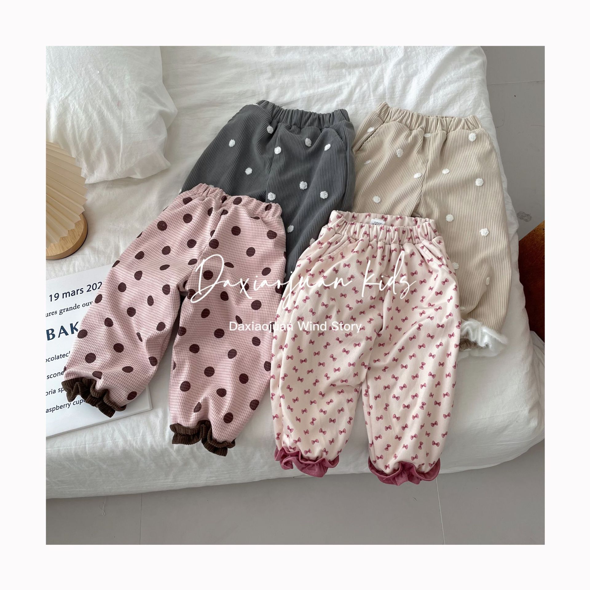 재고 사이즈 롤 가을과 겨울 더블 레이어드 벨벳 랜턴 바지 공주 바지 캐주얼 바지 느슨한 폴카 도트스토어 가기