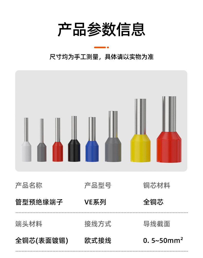 VE 튜브 유형 터미널 핀 유형 사전 절연 배선 냉압 단자 압착 펜치 황동 귀 와이어 와이어 커넥터스토어 가기