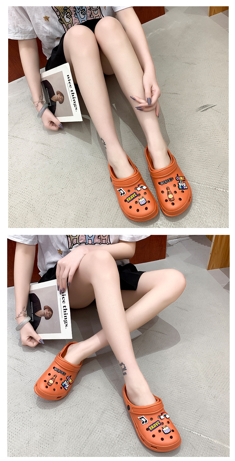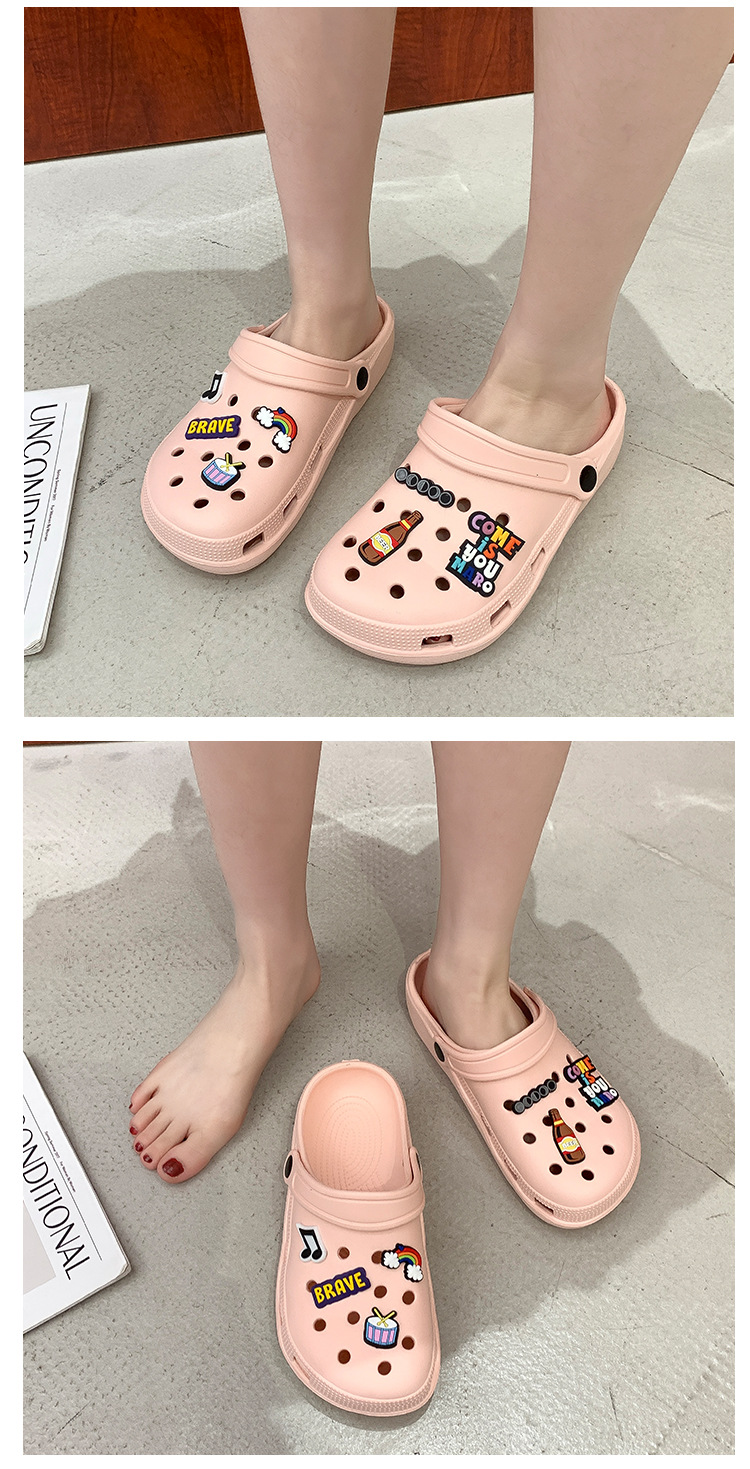 2024년 신상 여름 여성용 통굽 샌들, 미끄럼 방지 두꺼운 밑창 비치 샌들, 편안한 착용감의 앞코가 덮인 반슬리퍼, 남성용