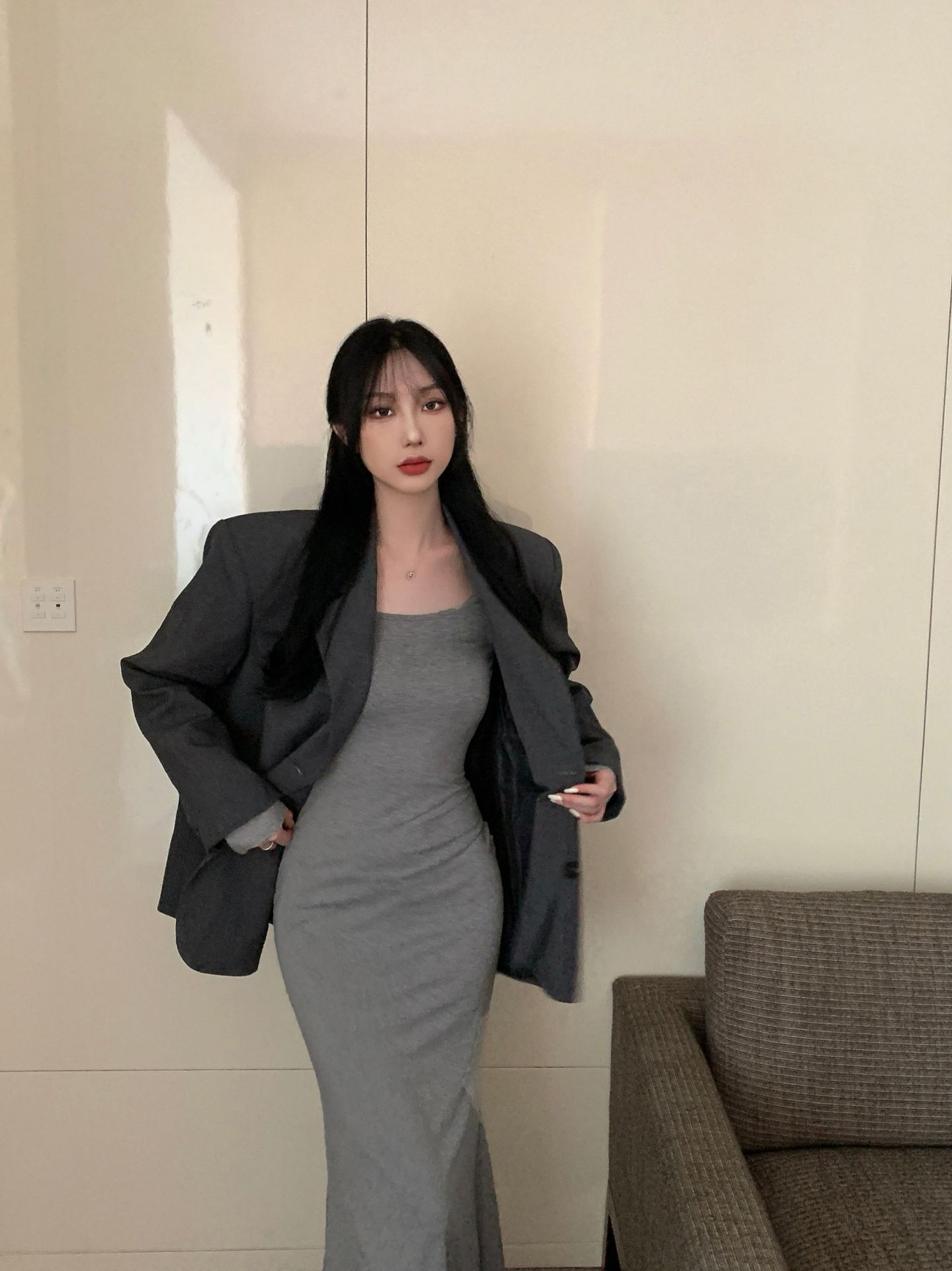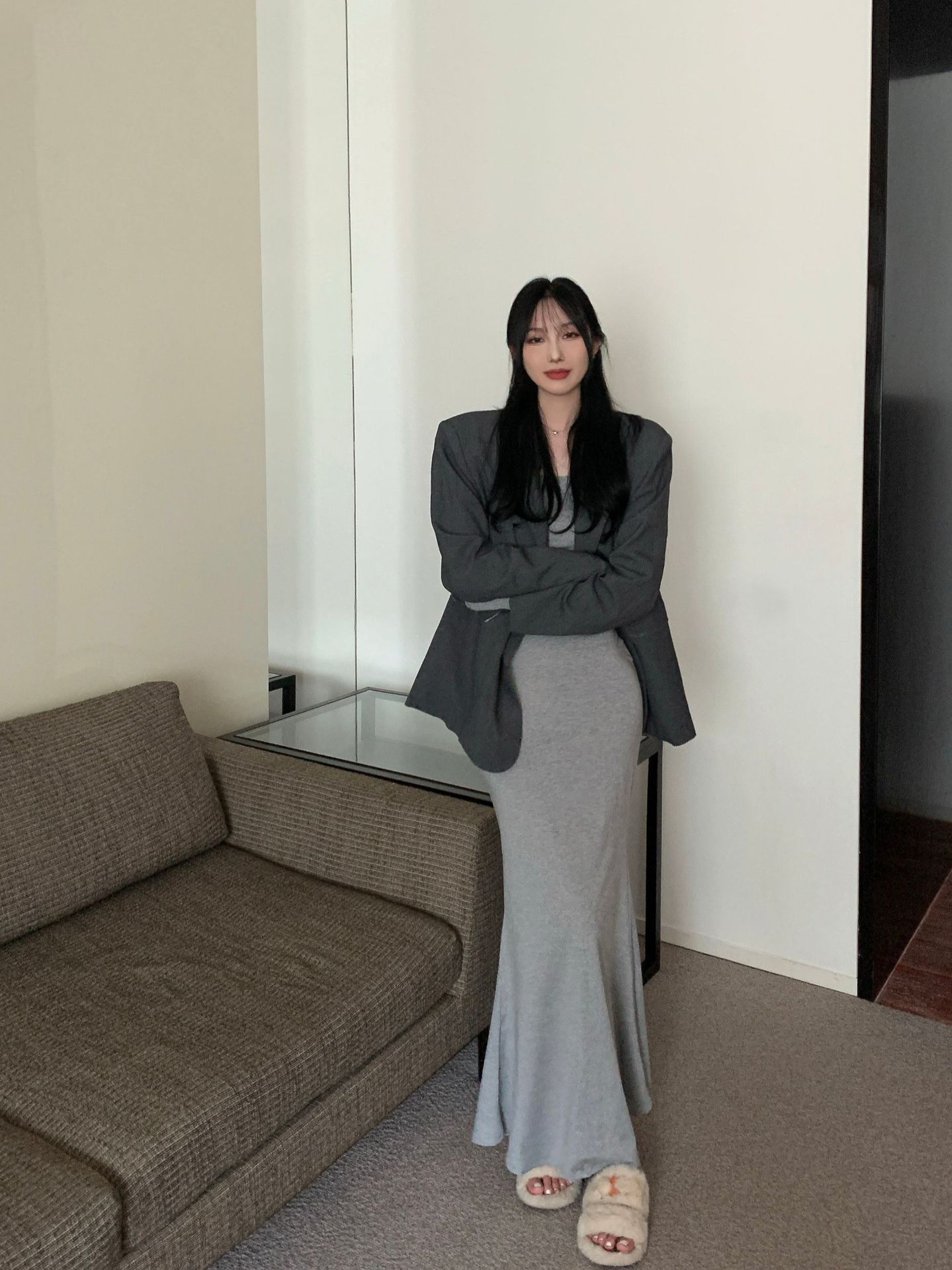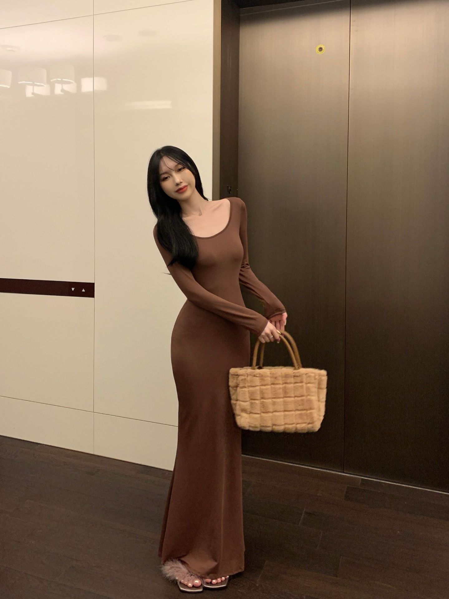 핫걸 섹시한 긴팔 드레스 여성 가을 2025 새로운 커피 컬러 바닥 긴 드레스 슬림 피쉬 테일 힙 스커트스토어 가기