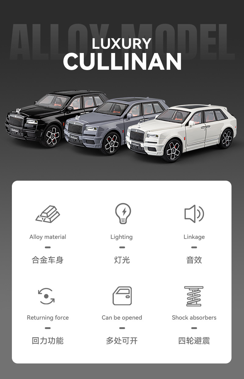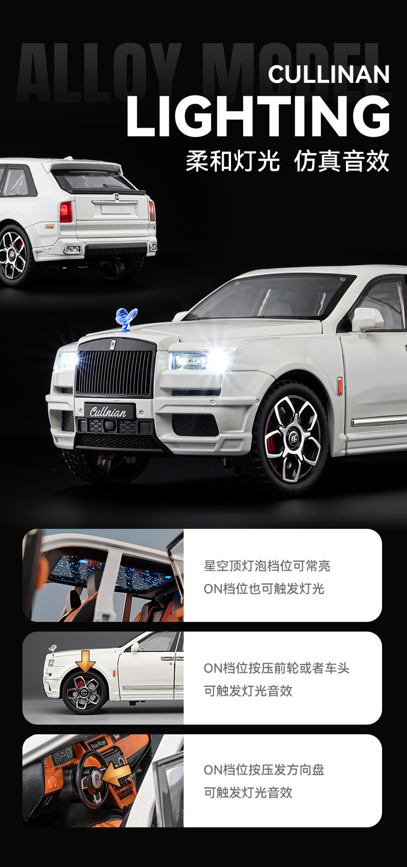 자동차 1:20 롤스 컬리 난 사운드 및 라이트 백 자동차 어린이 장난감 시뮬레이션 합금 자동차 모델 컬렉션 장식품스토어 가기