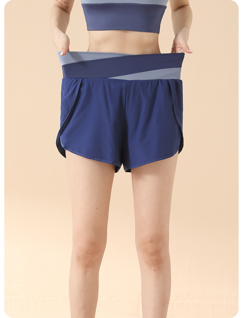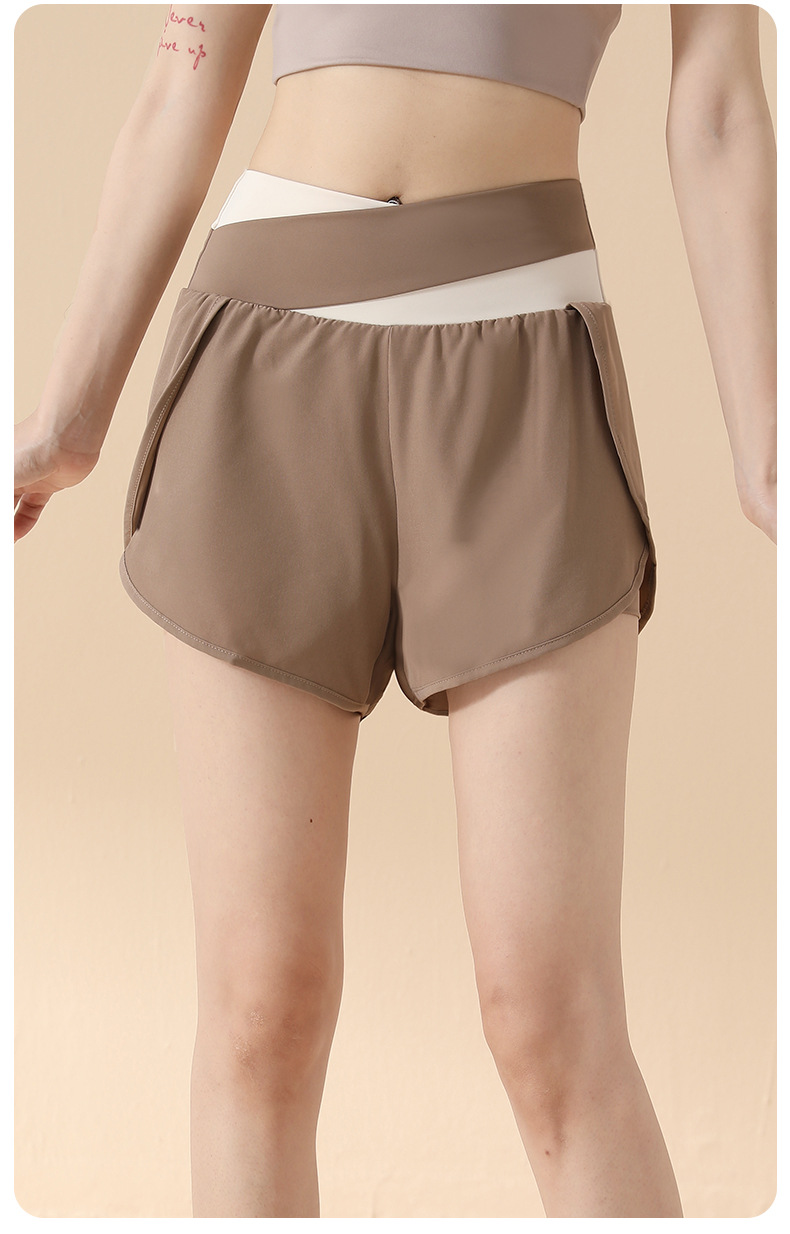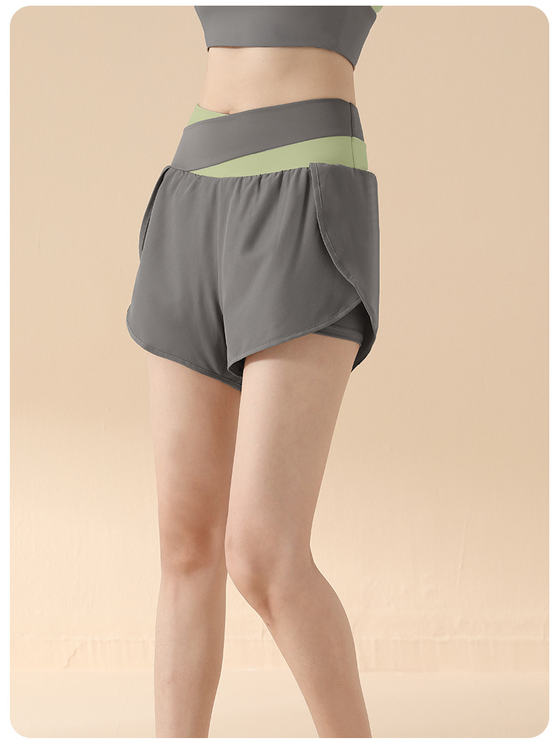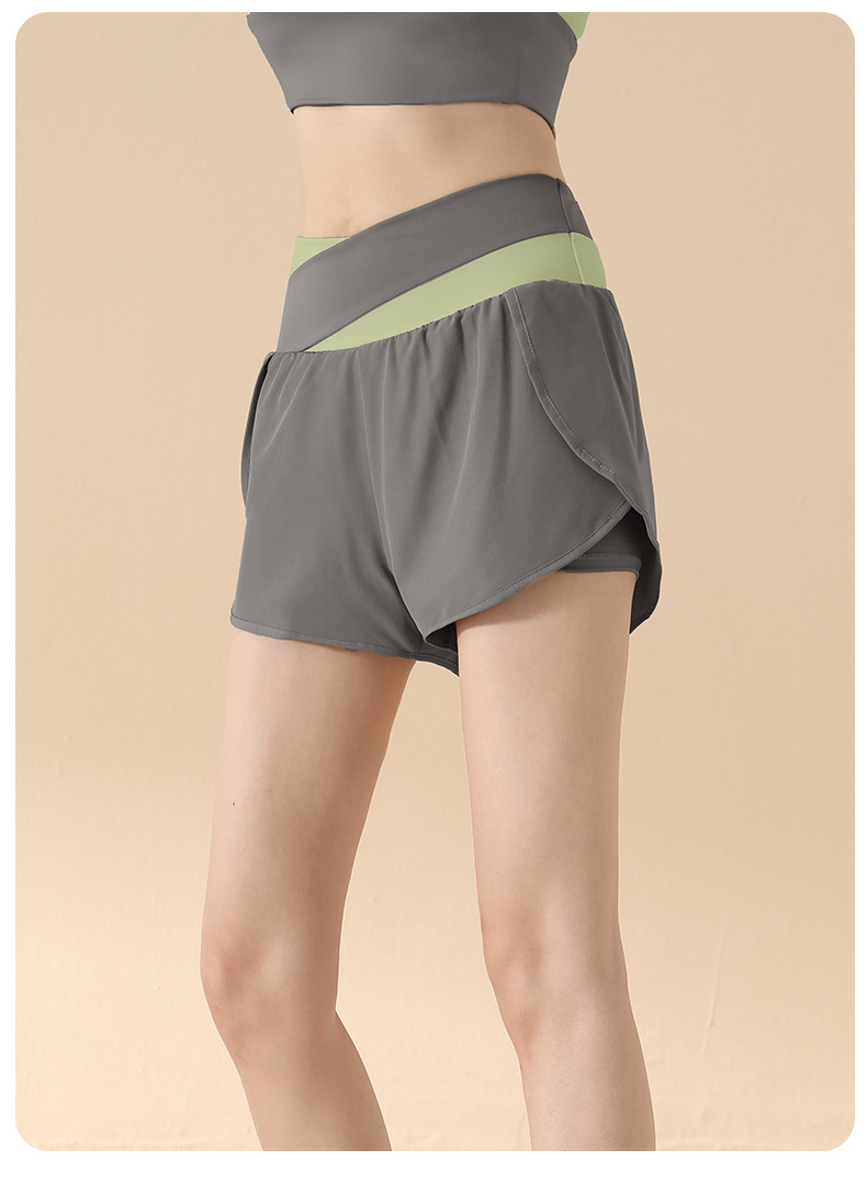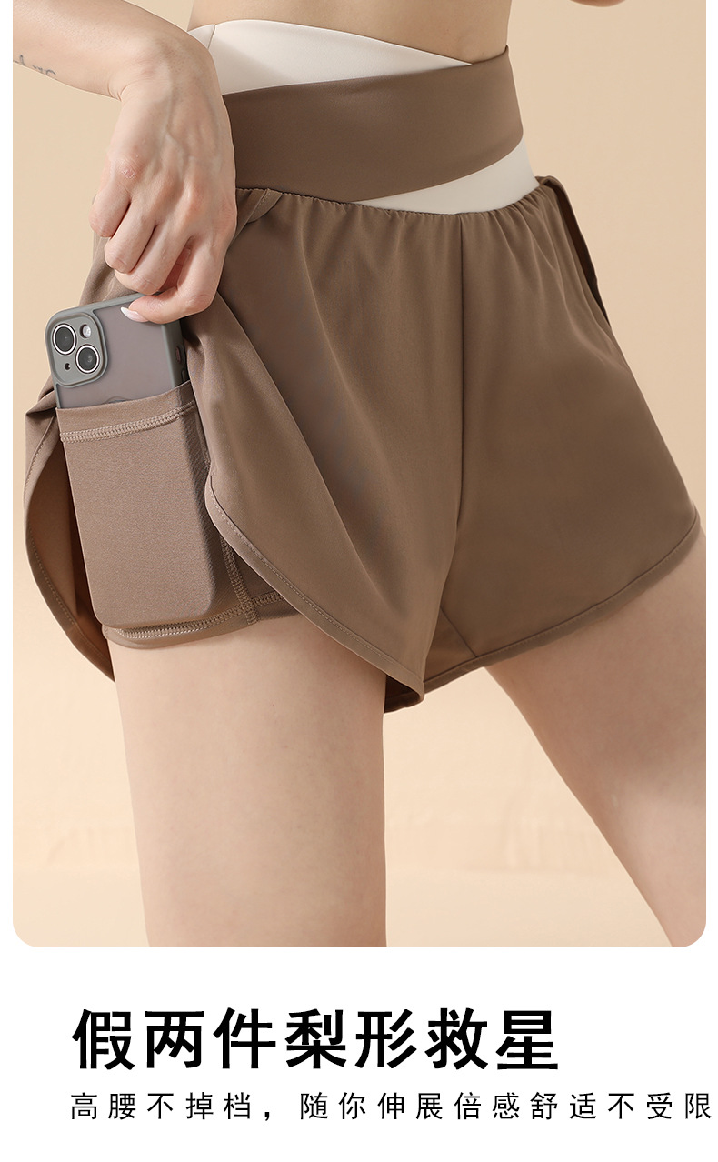컬러 매칭 가짜 투피스 요가 반바지 벌거 벗은 높은 허리 엉덩이 리프팅 눈부심 방지 스포츠 반바지 여성용 외복 러닝 피트니스 바지스토어 가기