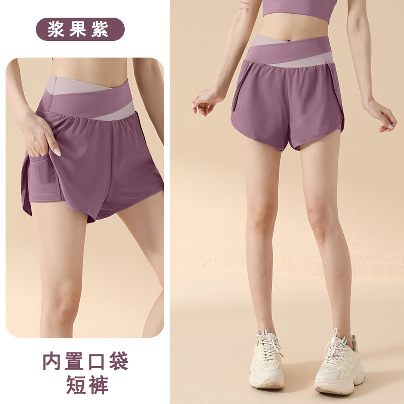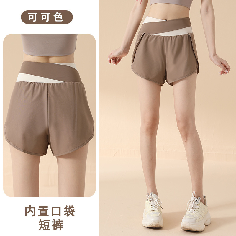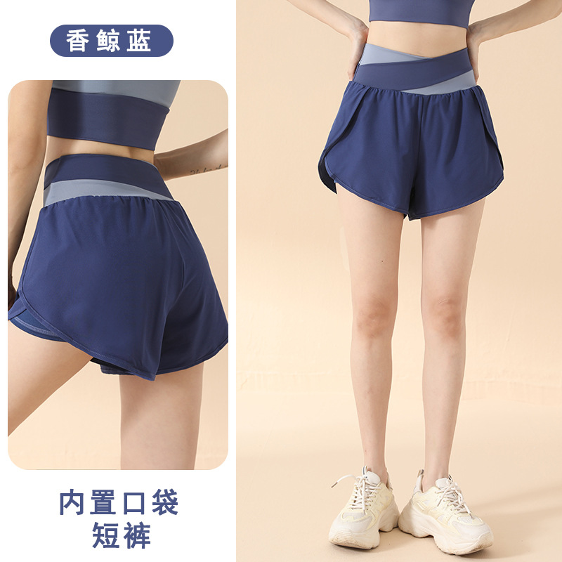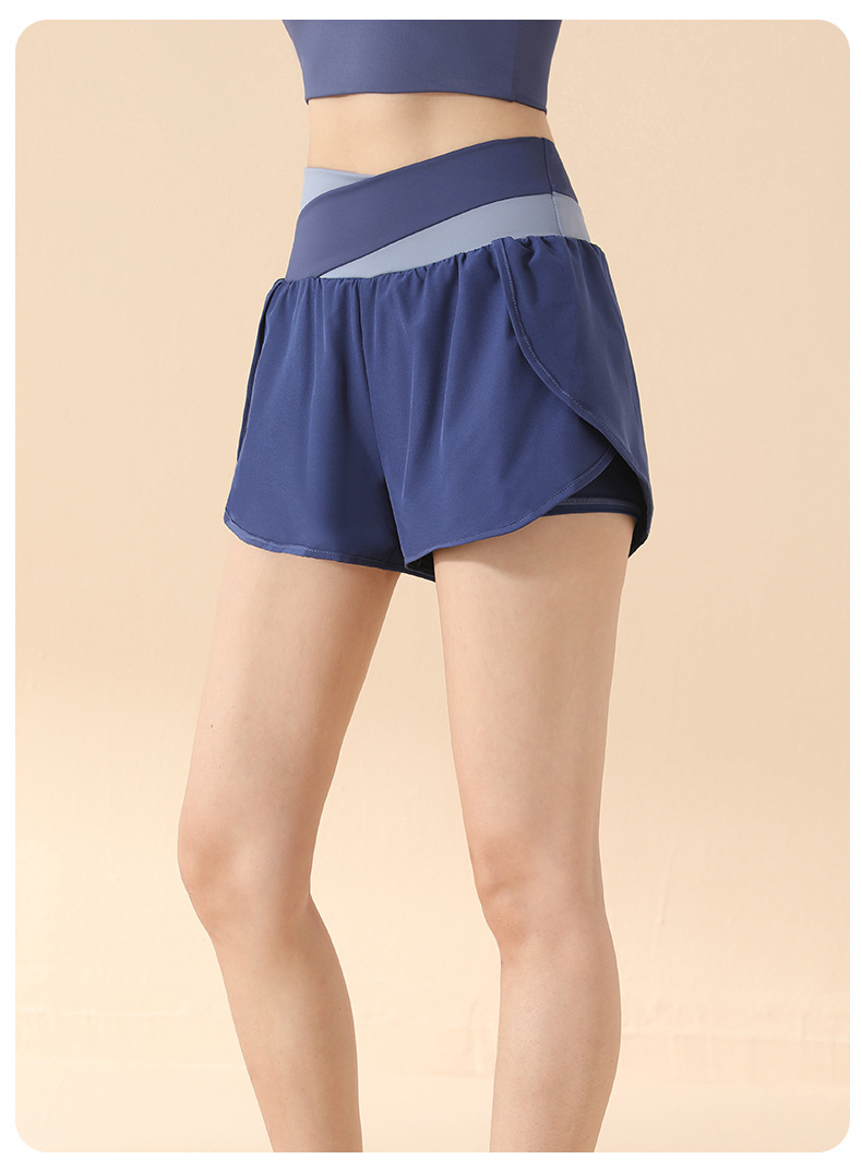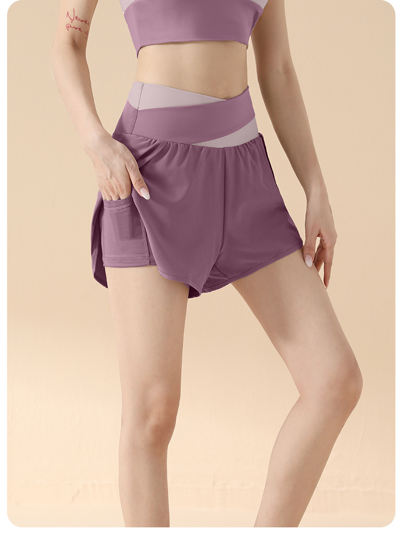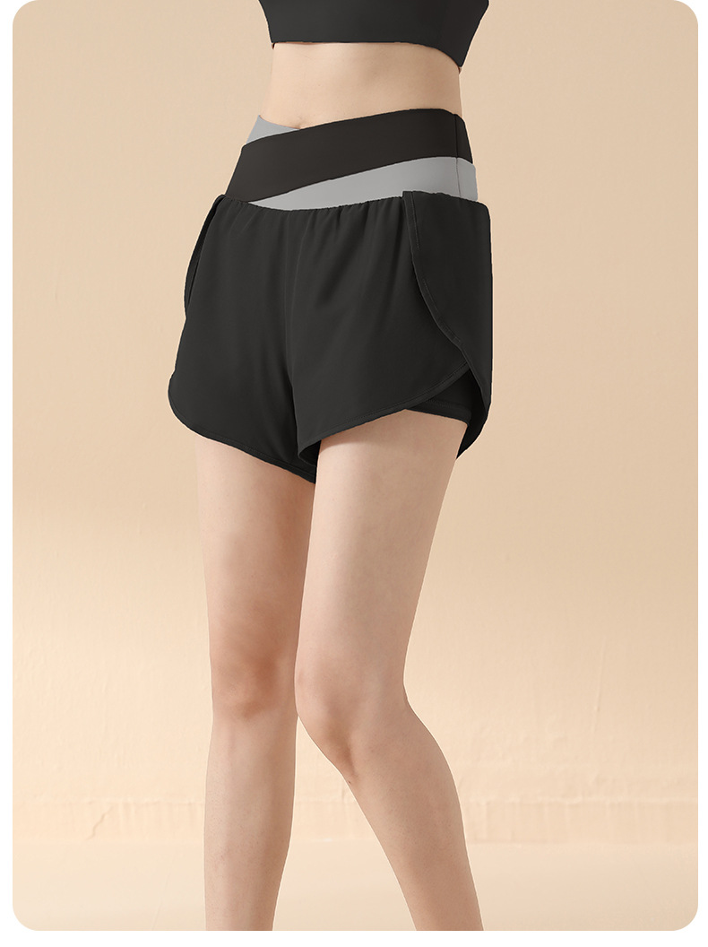 컬러 매칭 가짜 투피스 요가 반바지 벌거 벗은 높은 허리 엉덩이 리프팅 눈부심 방지 스포츠 반바지 여성용 외복 러닝 피트니스 바지스토어 가기