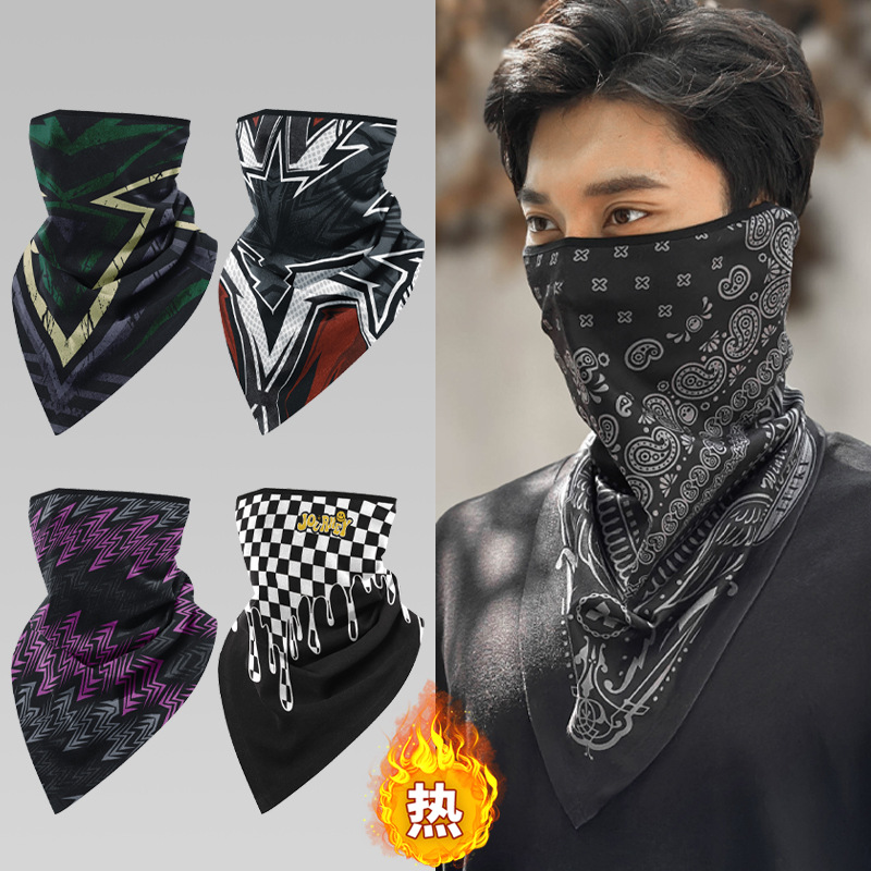 야외 방풍 방수 스키 오토바이 승마 마스크 따뜻한 귀 보호자 반 얼굴 삼각형 스카프 세트 겨울 남녀
