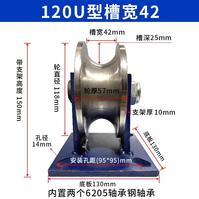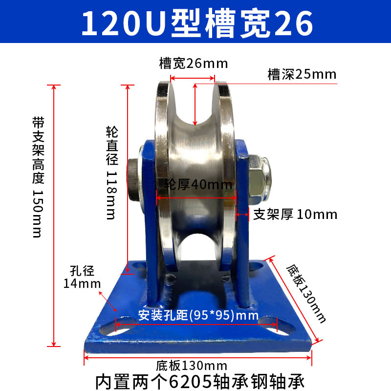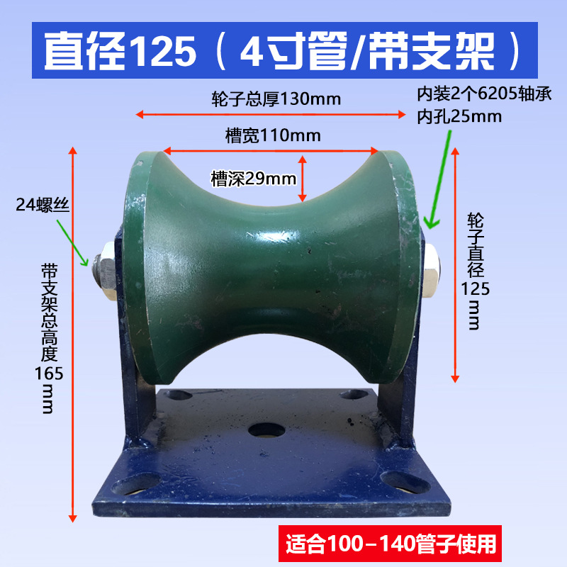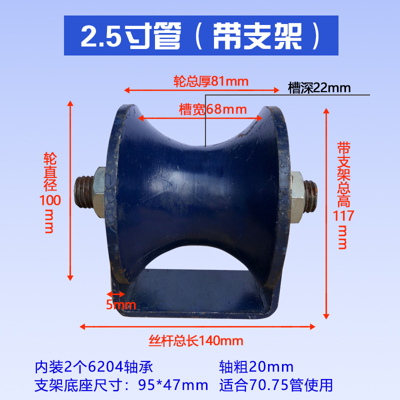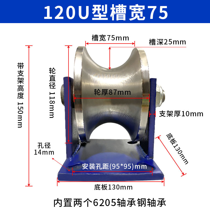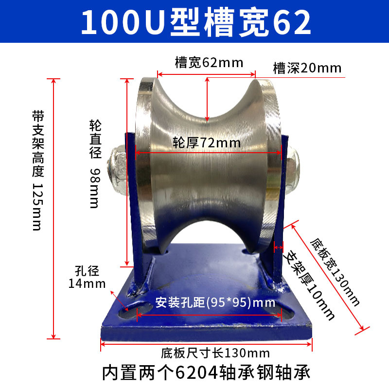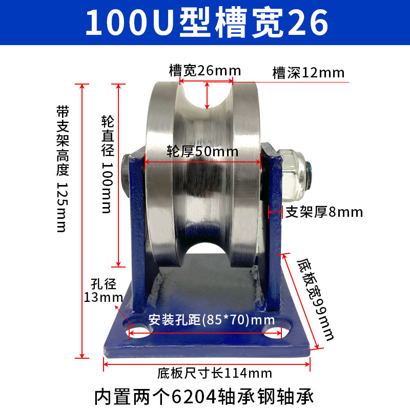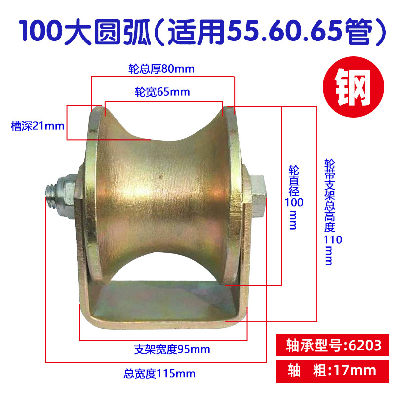 강철 튜브 U 자형 레일 휠 풀리 원형 튜브 레일 휠 베어링 도르래 홈 풀리 크라운 블록 넓은 홈 로드 풀리