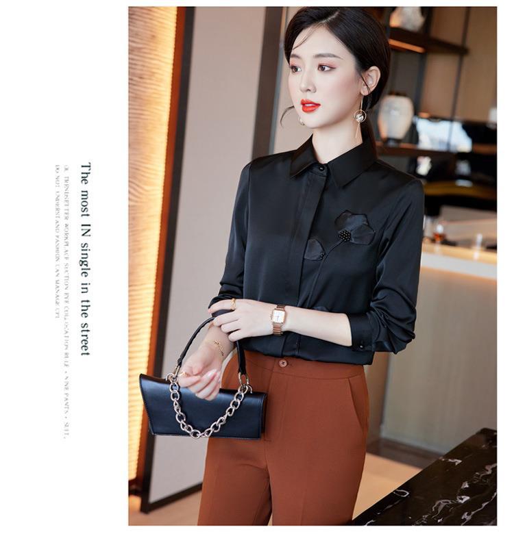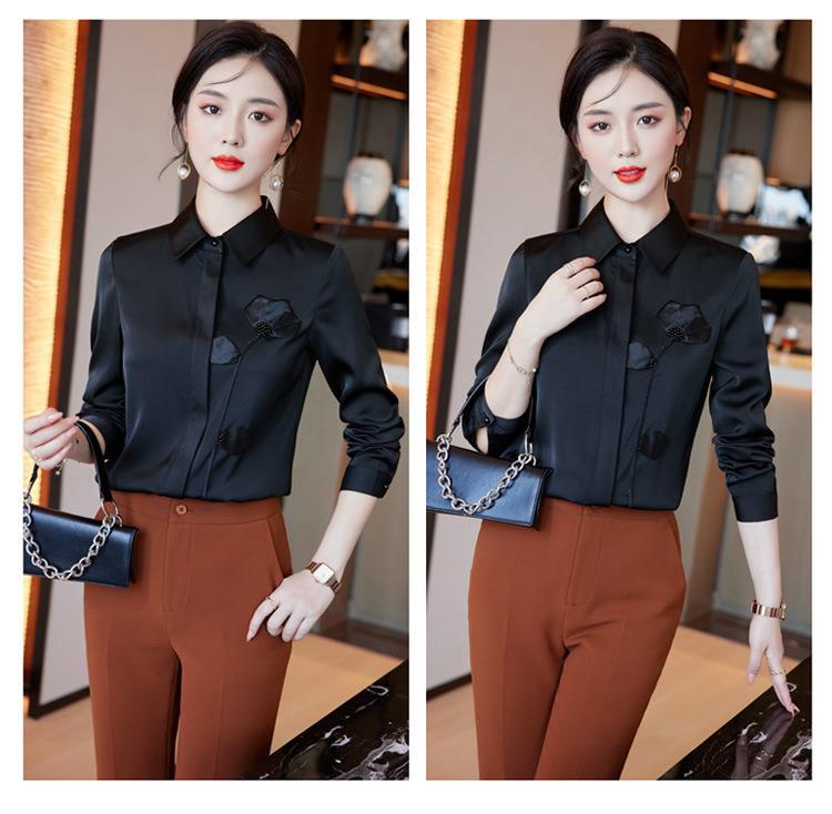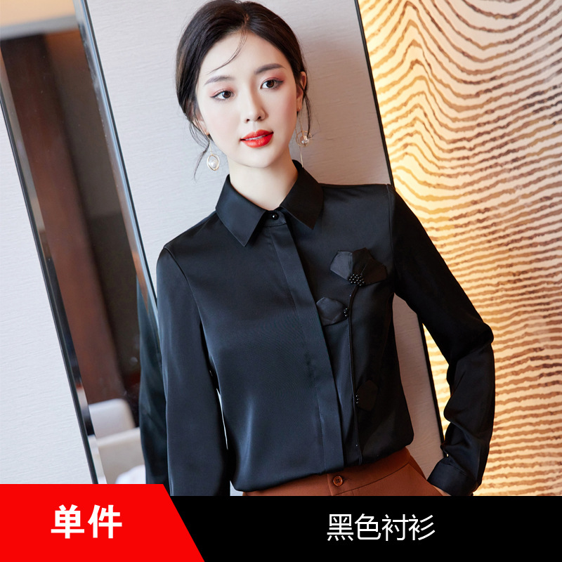 치구니앙 2024 가을과 겨울 새 검은 셔츠 여자 긴팔 한국식 프로 툴링 원피스 여자 슬림핏 올매치 탑스토어 가기
