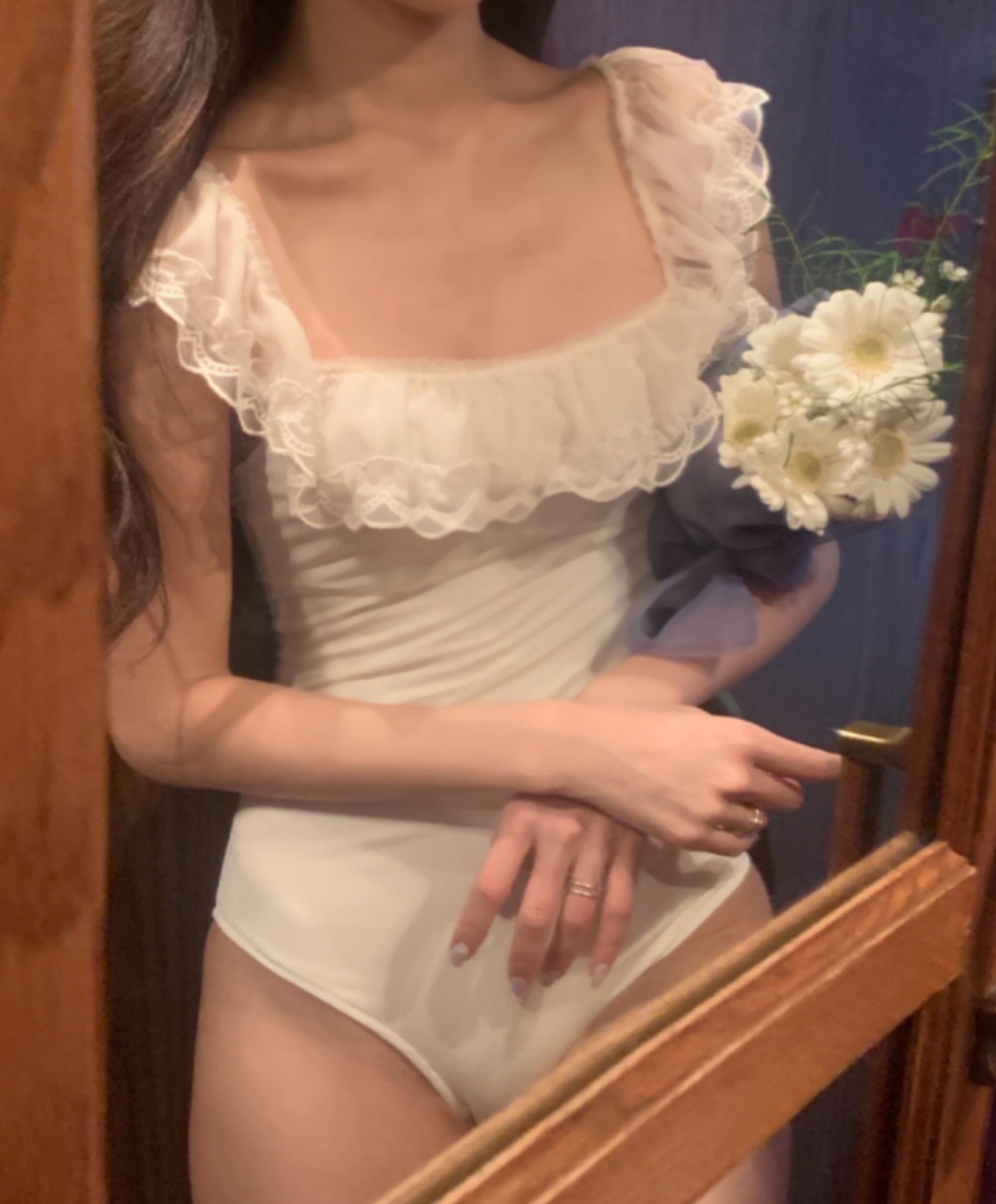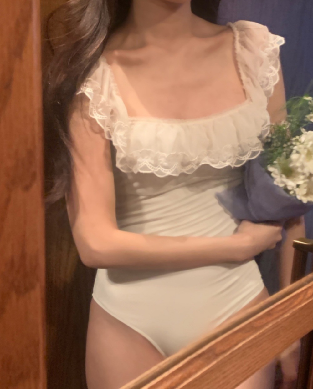 한국 동대문 인즈 스타일 귀여운 소녀의 레이스 연꽃 잎 플라잉 달콤한 하이 엔드 원피스 수영복 여성용 수영복스토어 가기