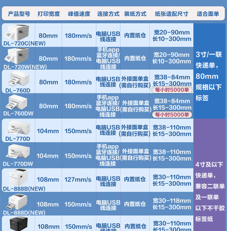 델리 DL-720C 라벨 프린터 소형 익스프레스 단일 전자 얼굴 단일 열 접착 스티커스토어 가기