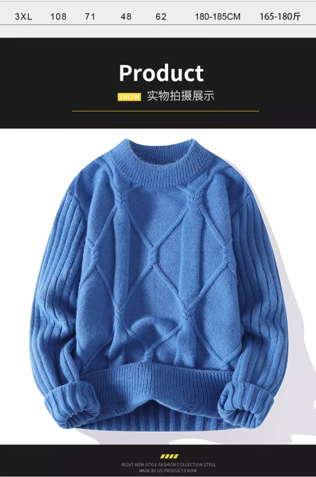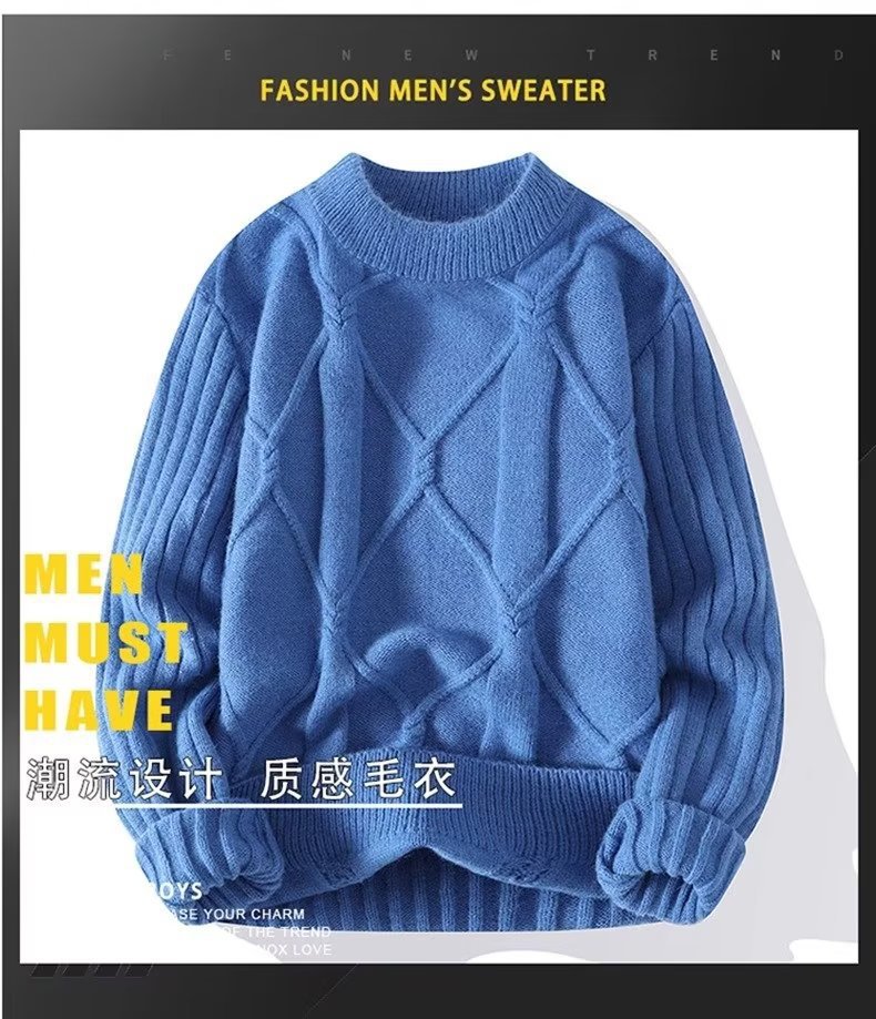 소프트 왁스 스웨터 남자 겨울 트렌디 브랜드 트위스트 울 스웨터 라운드 넥 따뜻한 내부 올 매치 트렌디 스웨터스토어 가기