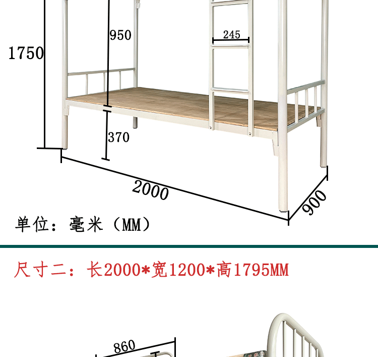 건설 현장 이층 철제 침대 작업자 이중층 철제 프레임 침대 직원 기숙사 높고 낮은 프레임 침대 학생 2 층 높은 침대스토어 가기