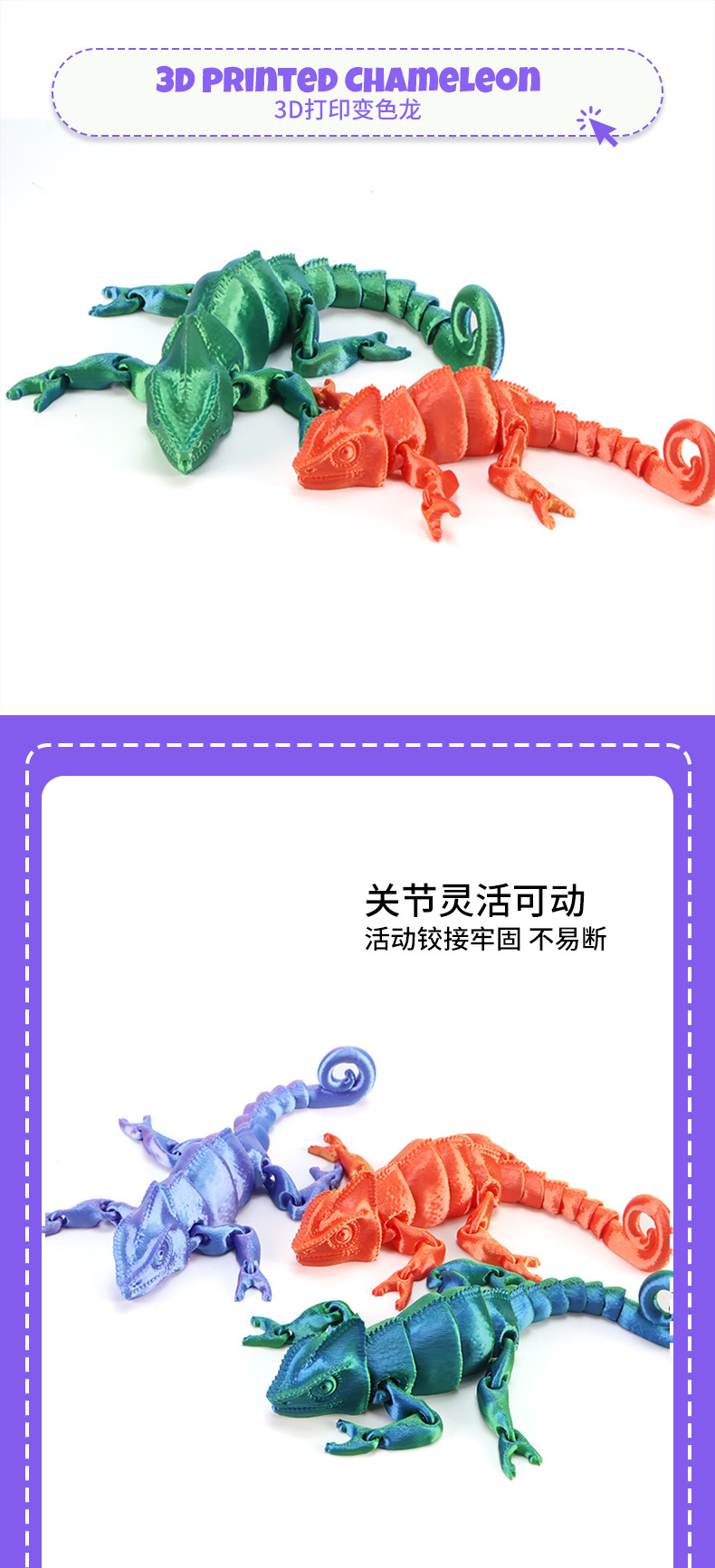 3D 인쇄 도마뱀 카멜레온 움직일 수 있는 귀여운 눈 합동 아이들 선물 장난감 모형 장식품