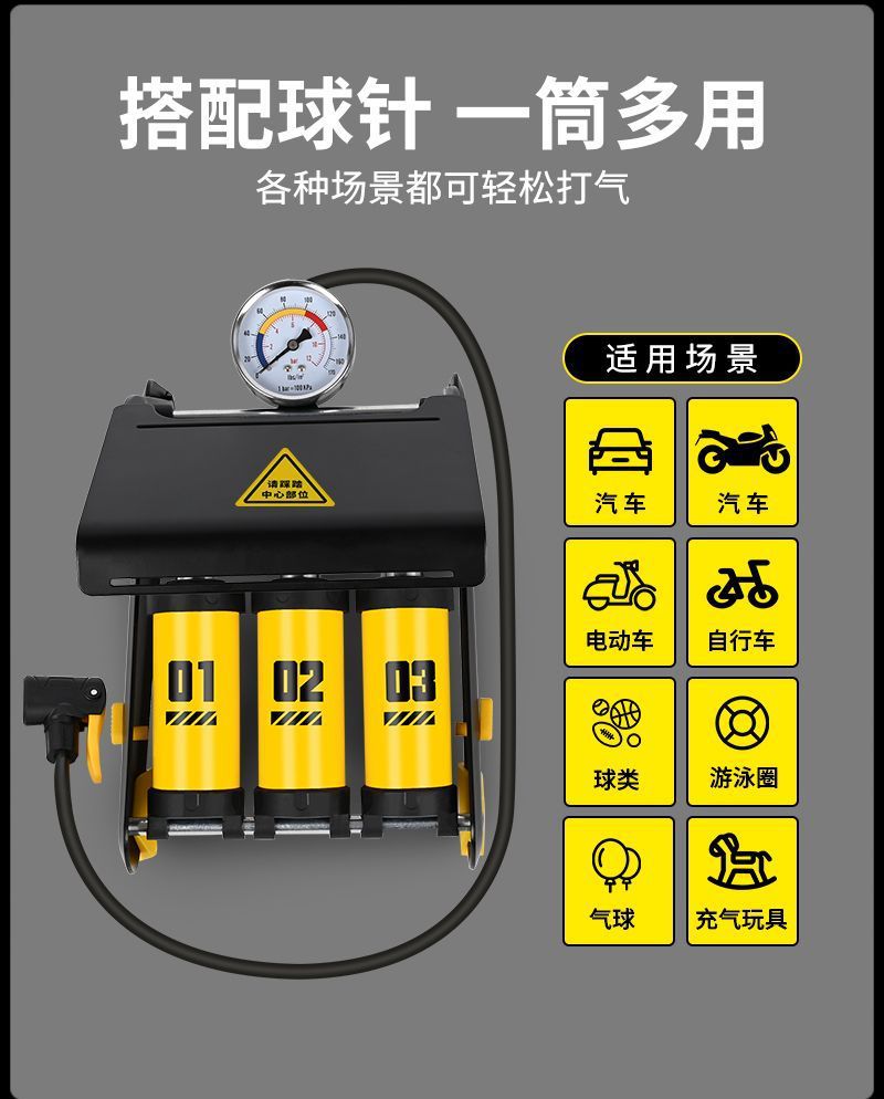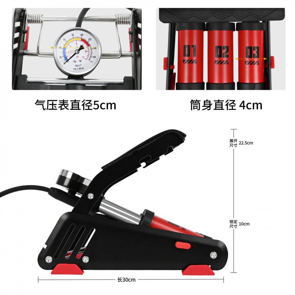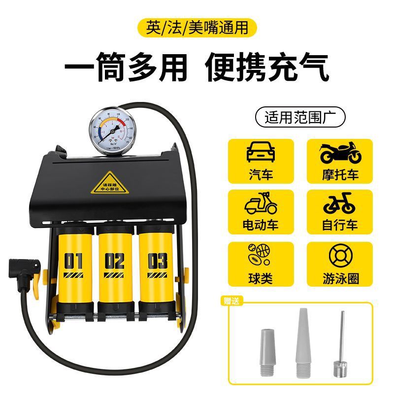 자동차, 자전거 및 오토바이용 접이식 휴대용 공기 펌프를 사용할 수 있는 3실린더 공기 주입식 고압 펌프
