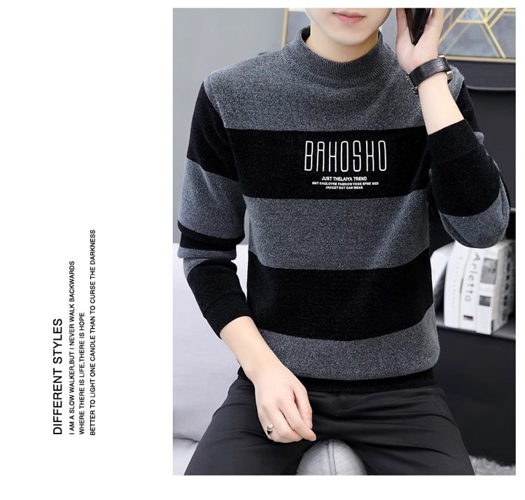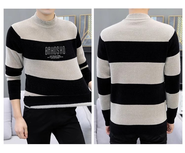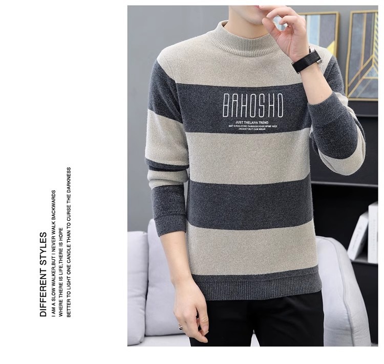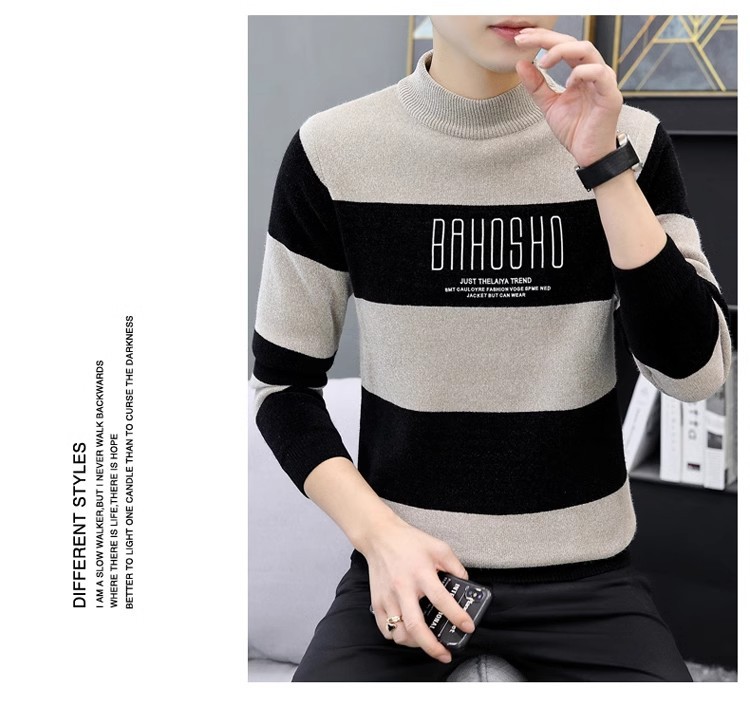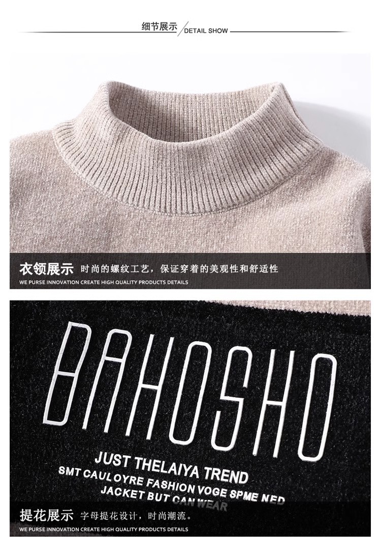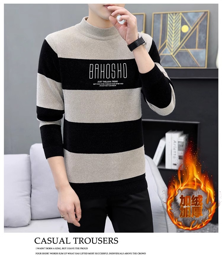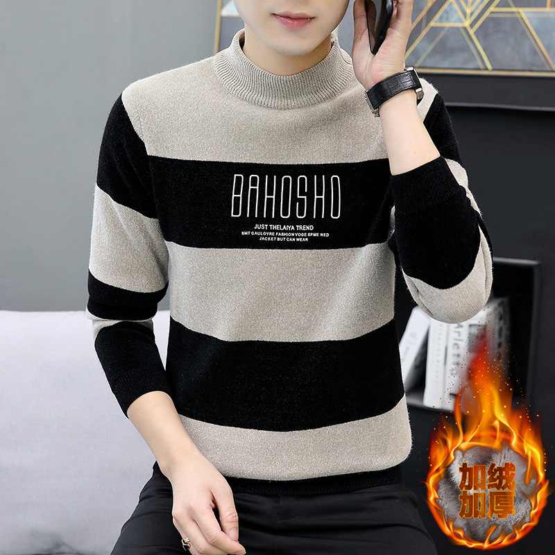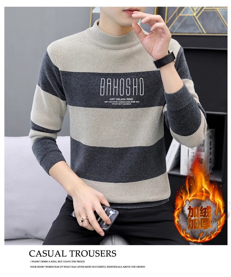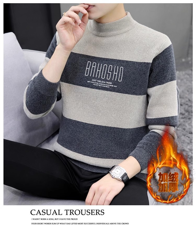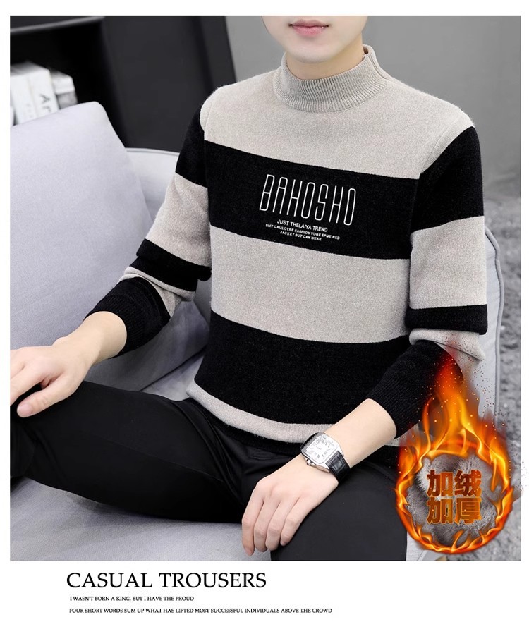 높은 탄성 겨울 2024 새로운 젊은 및 중년 남성 캐주얼 스웨터 기모 니트 백킹 셔츠 세미 터틀넥 백킹 셔츠스토어 가기