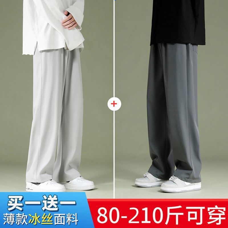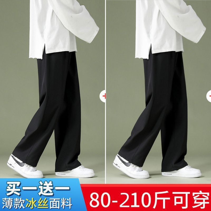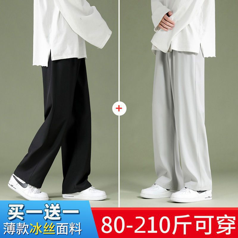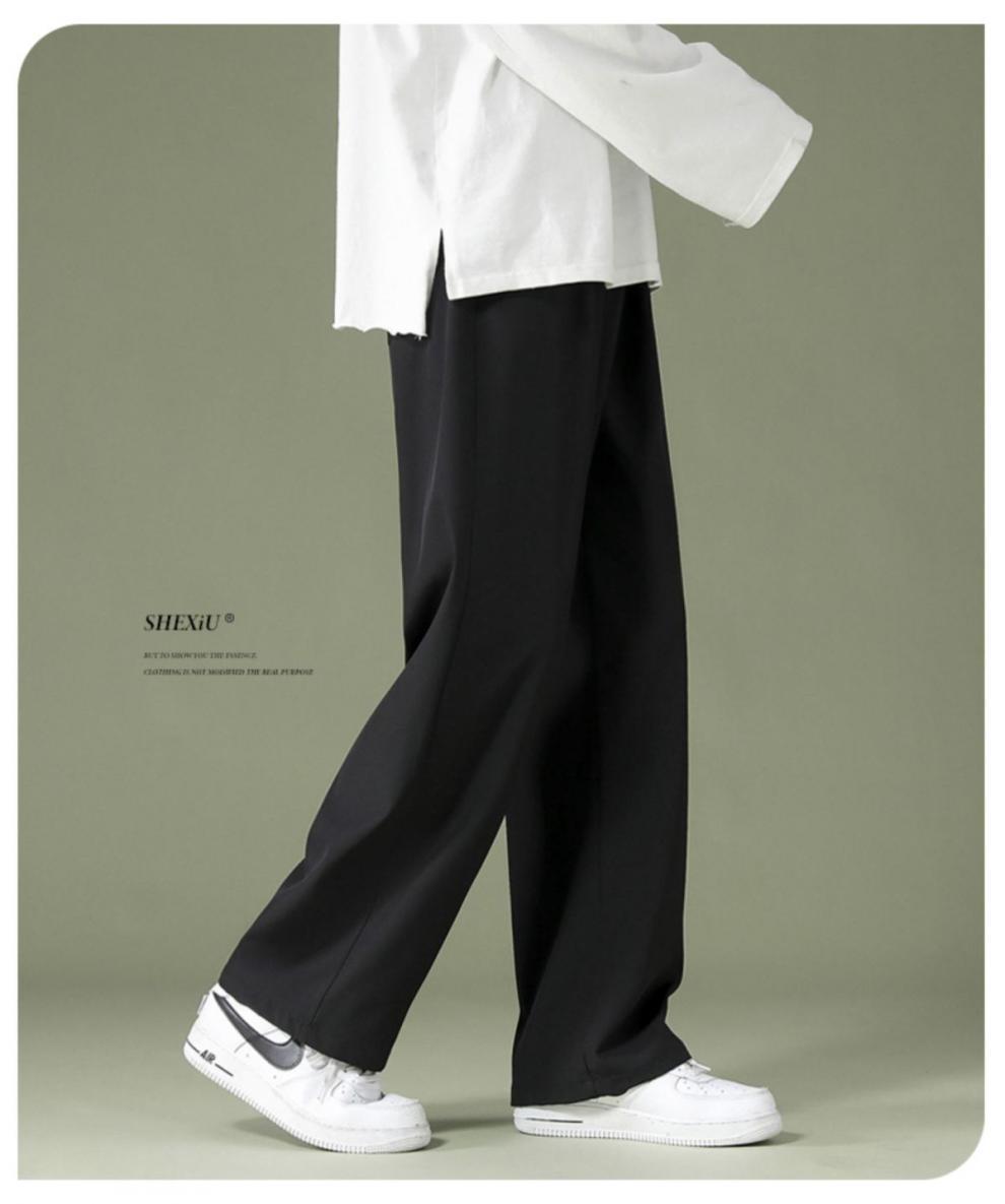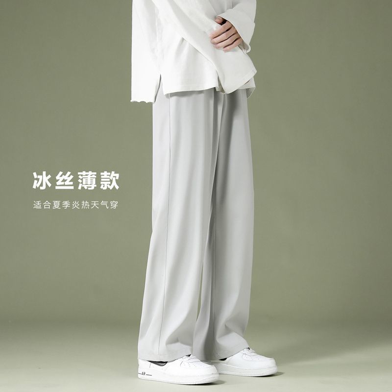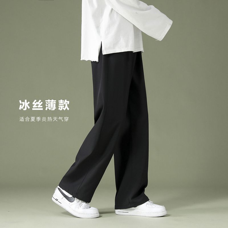 블랙 아이스 실크 바지 남자 여름 느슨한 유행 올매치 스트레이트 바지 펜던트 와이드 레그 캐주얼 바지스토어 가기