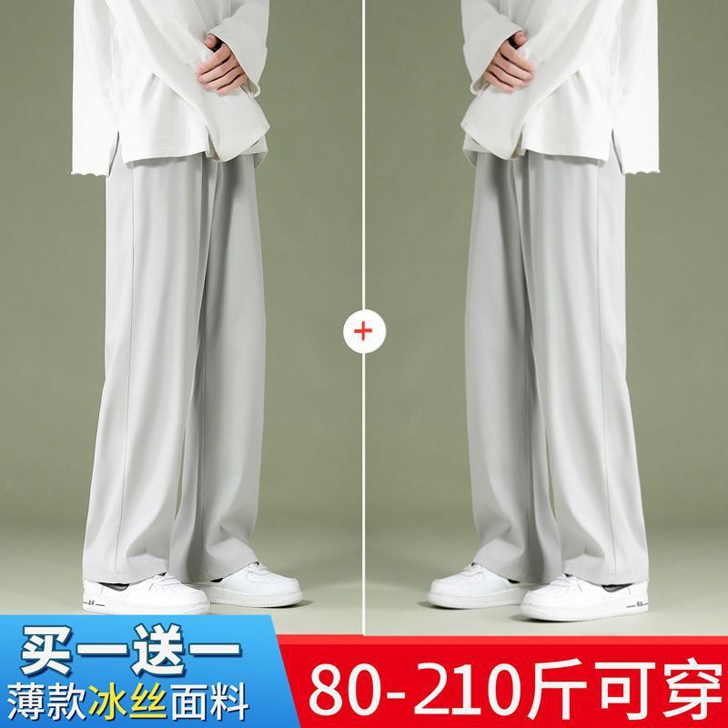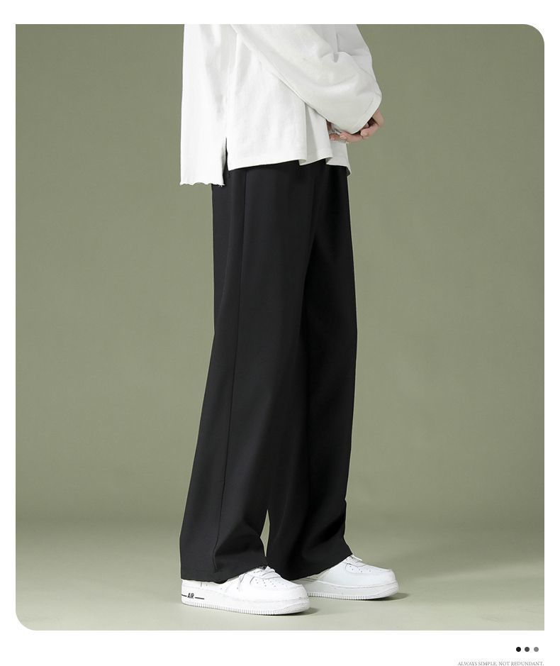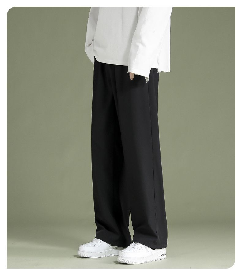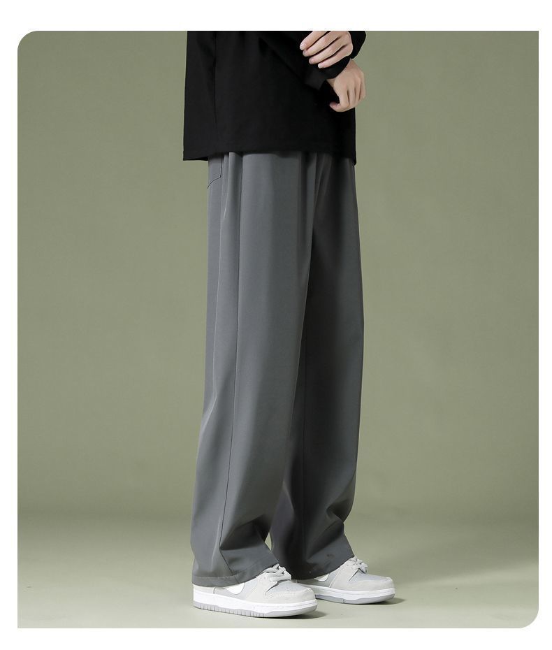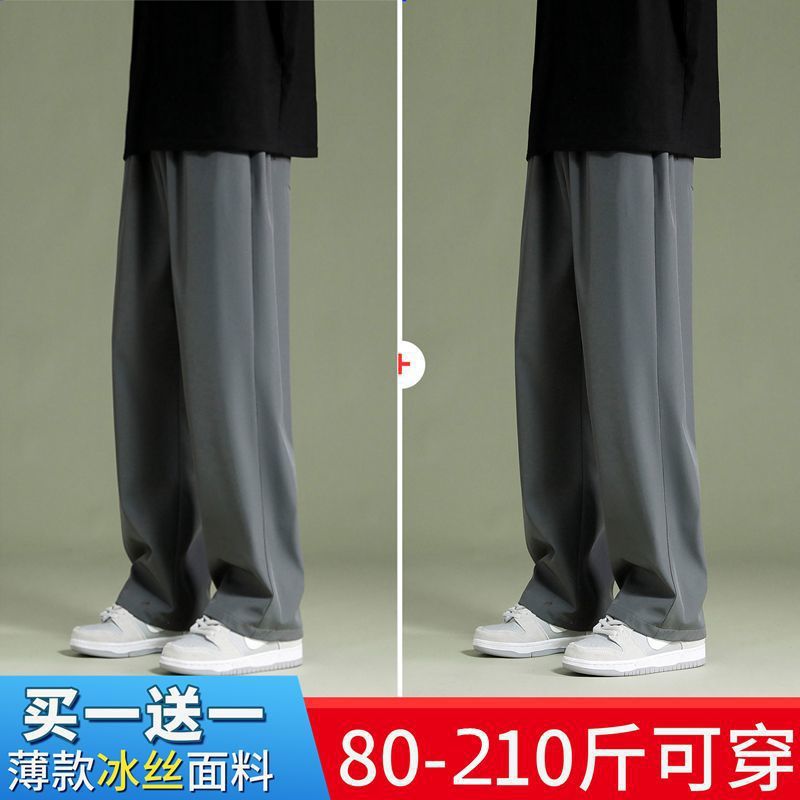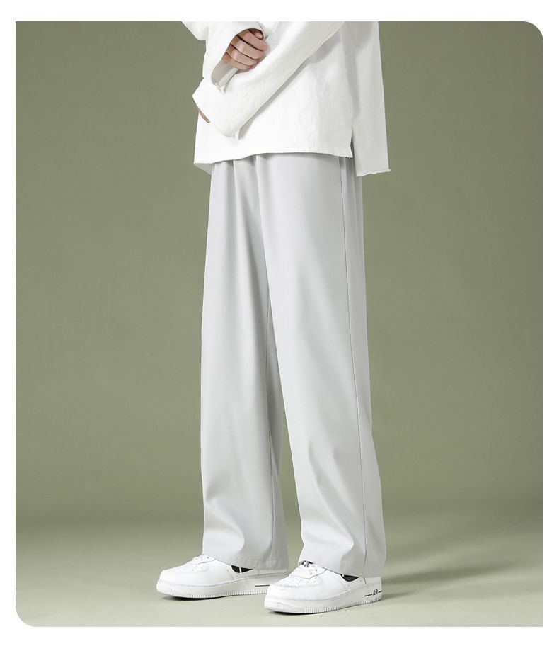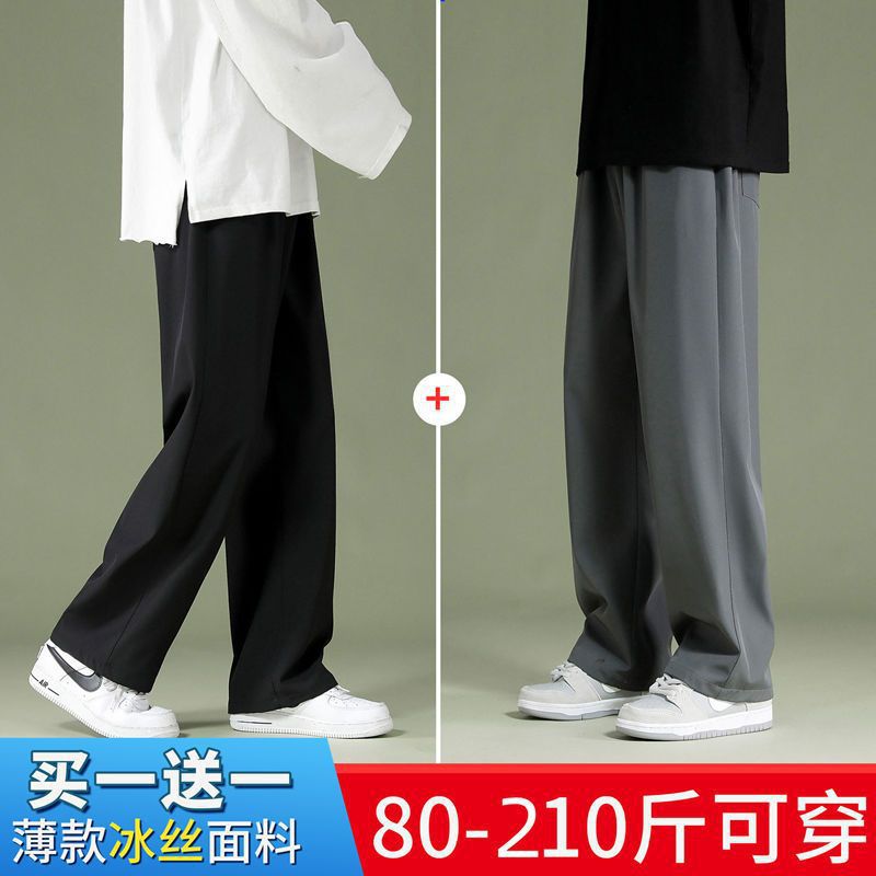 블랙 아이스 실크 바지 남자 여름 느슨한 유행 올매치 스트레이트 바지 펜던트 와이드 레그 캐주얼 바지스토어 가기
