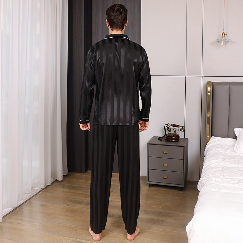 아마존 알리 익스프레스 국경 파자마 남성 아이스 실크 긴팔 카디건 옷깃 홈 의류 세트 봄과 가을 새로운