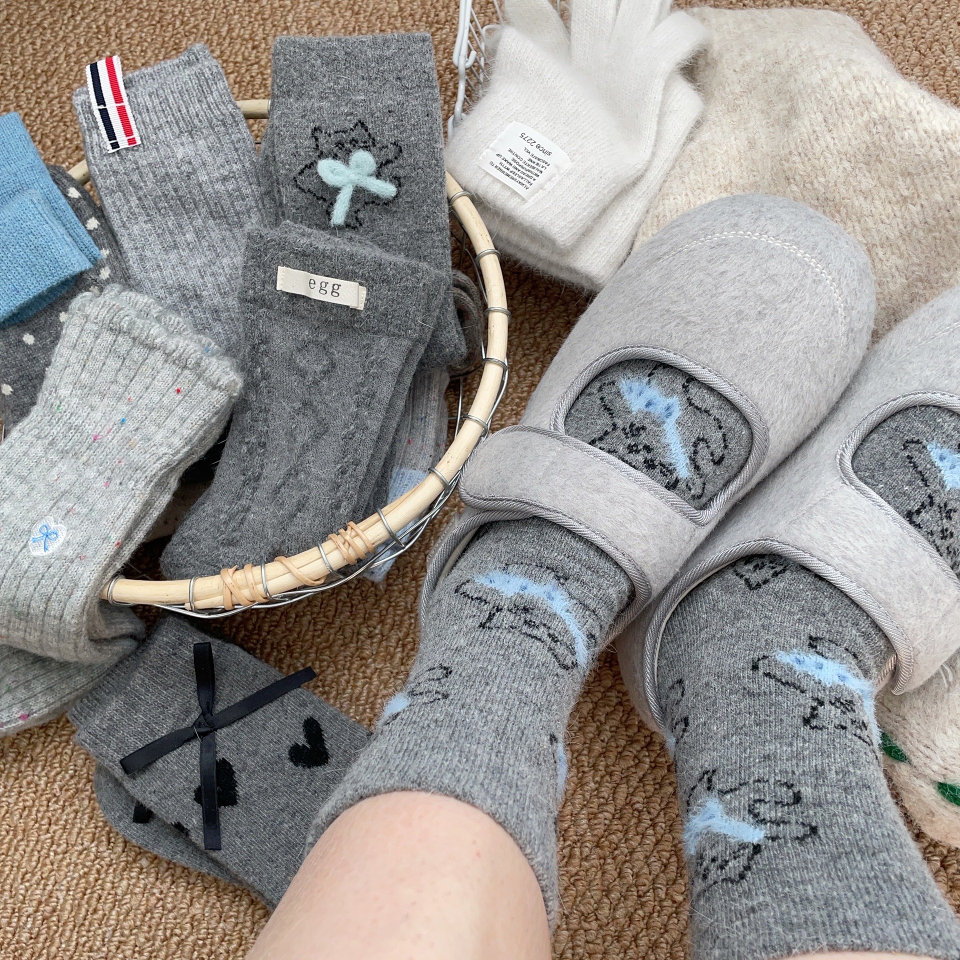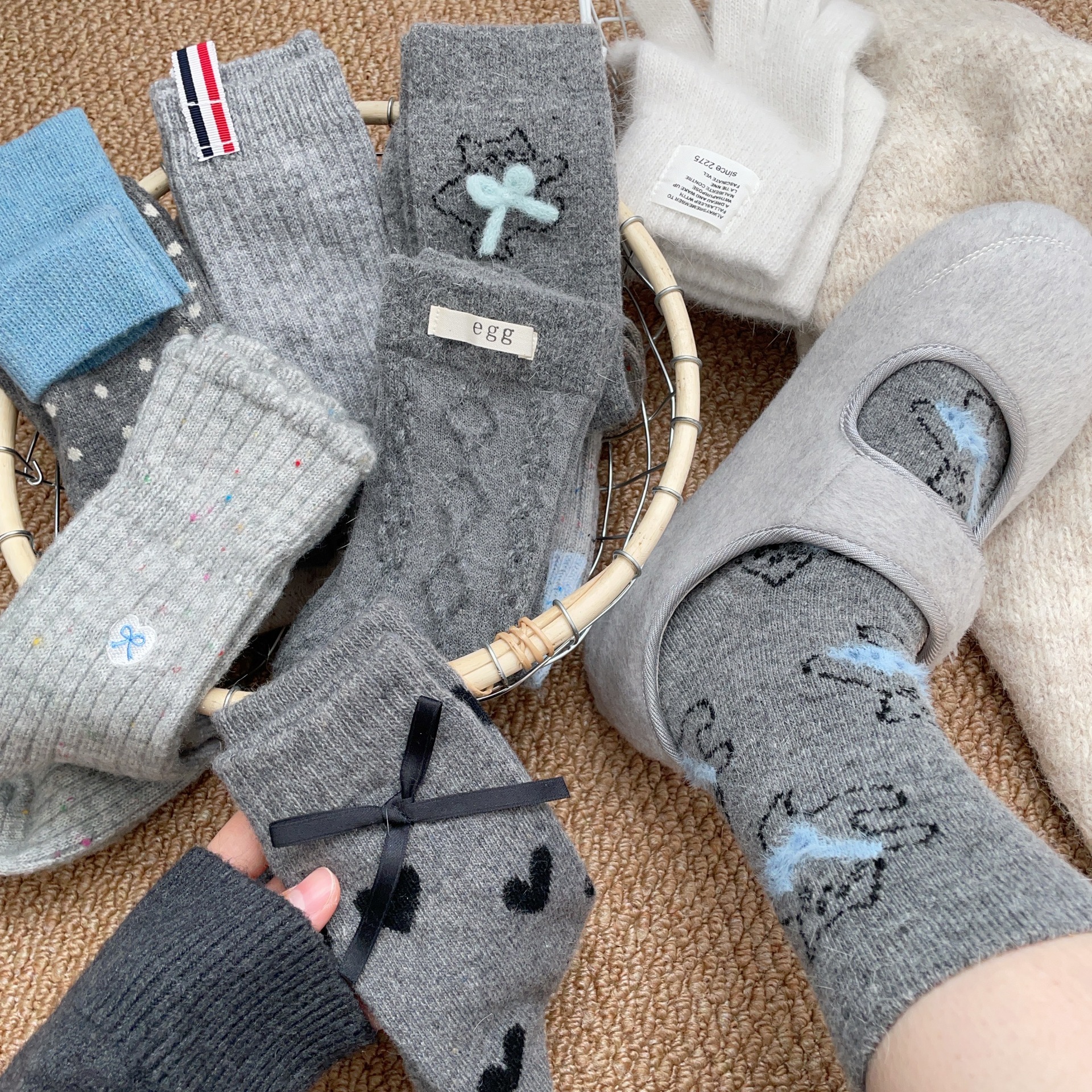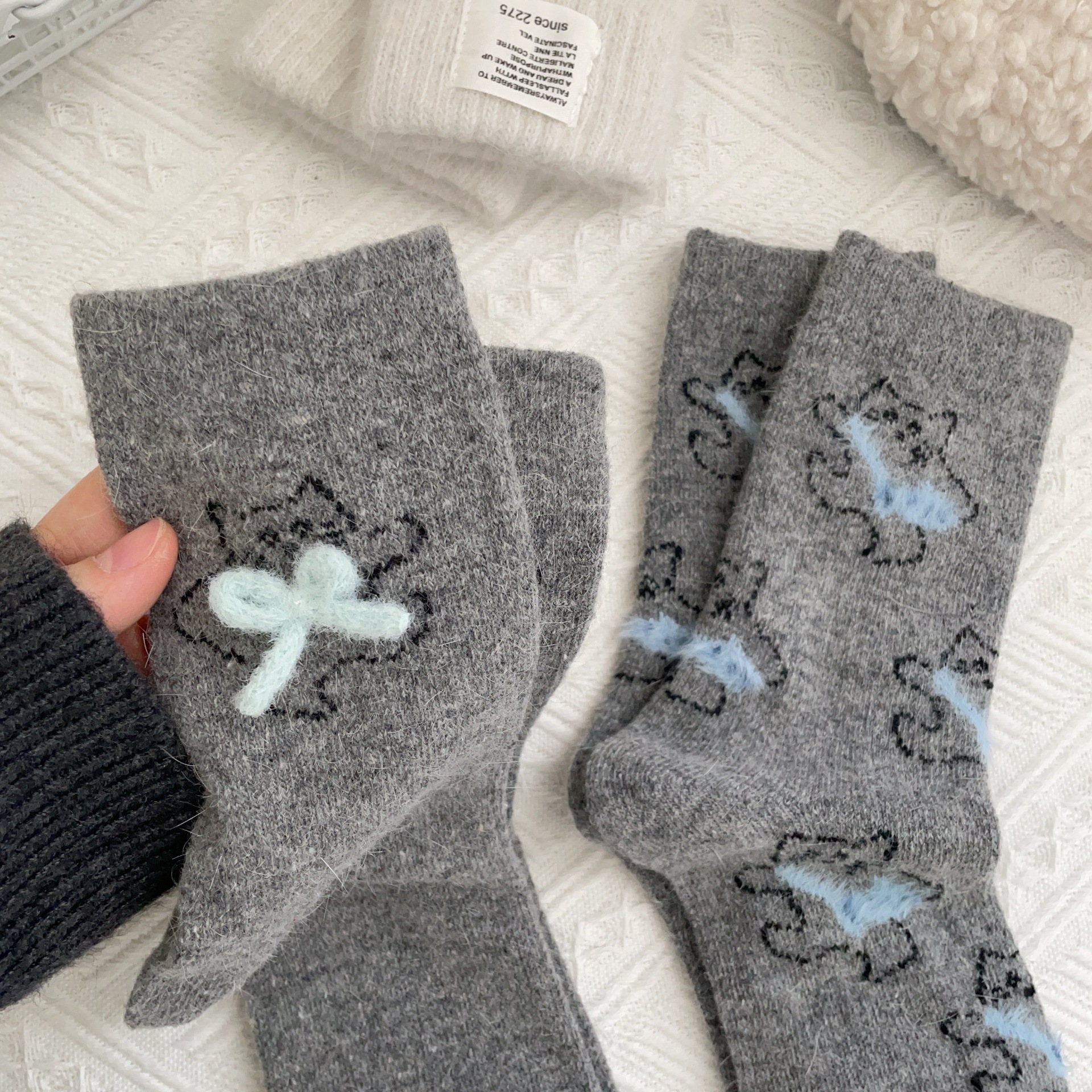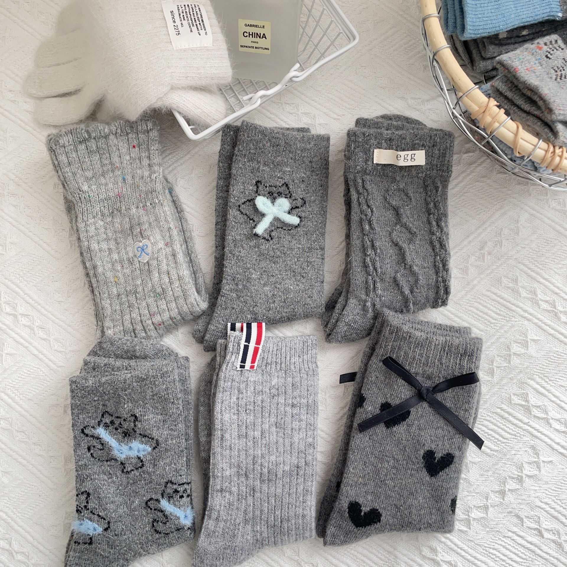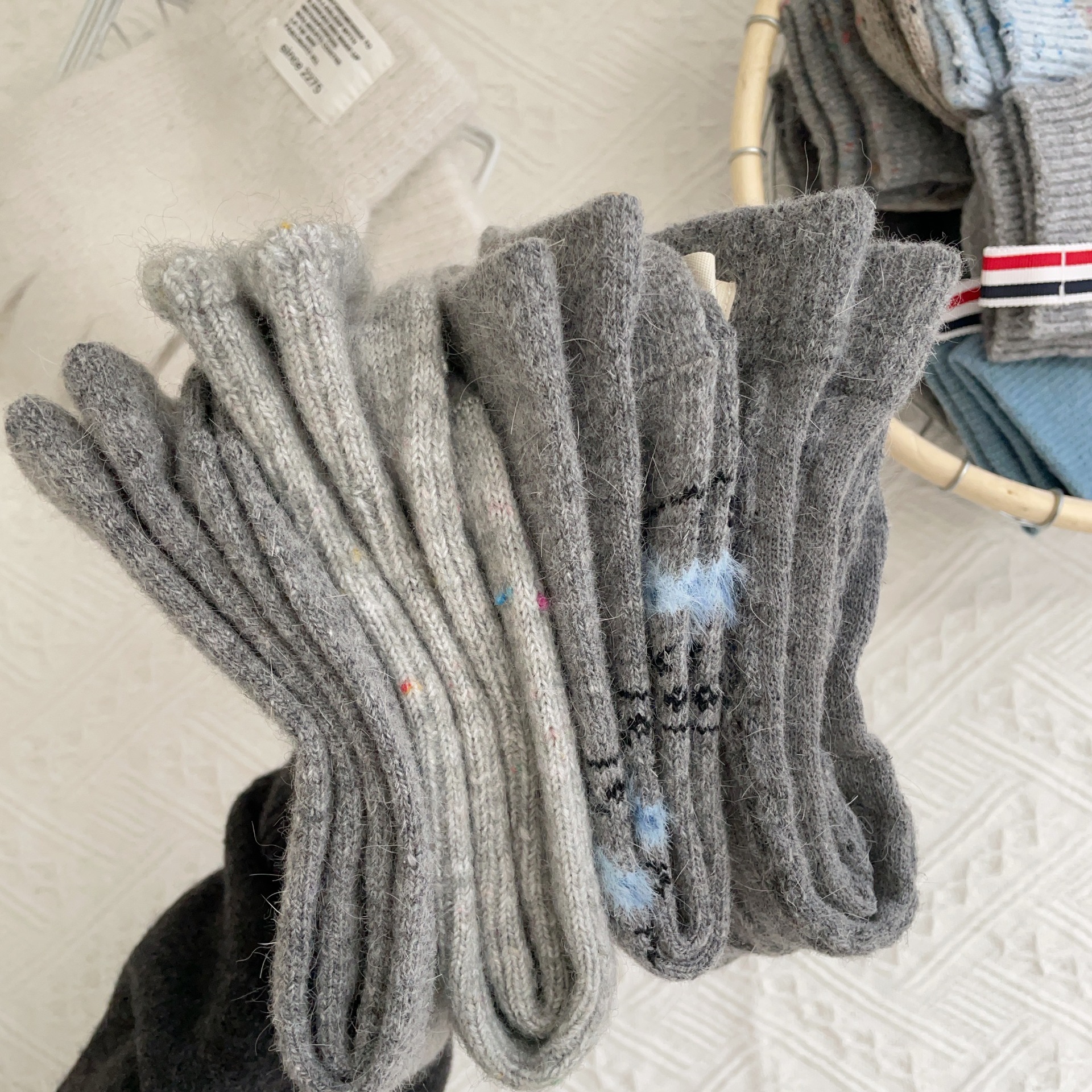 가을과 겨울 회색 파란색 두꺼운 기모 토끼 양모 양말 따뜻한 튜브 양말 어린이 인플 무리 활 더미 양말
