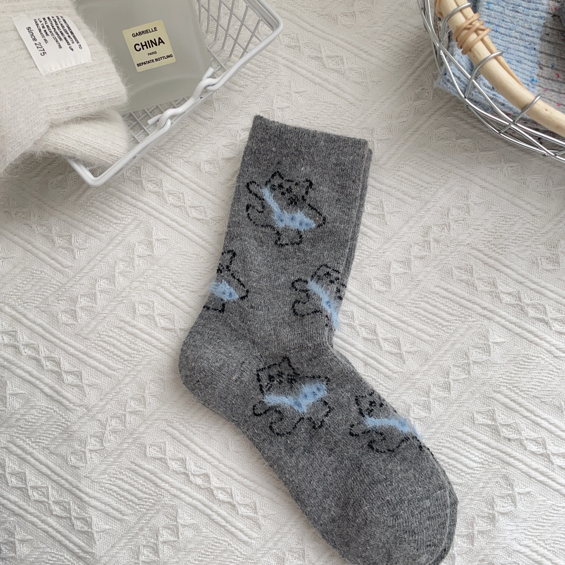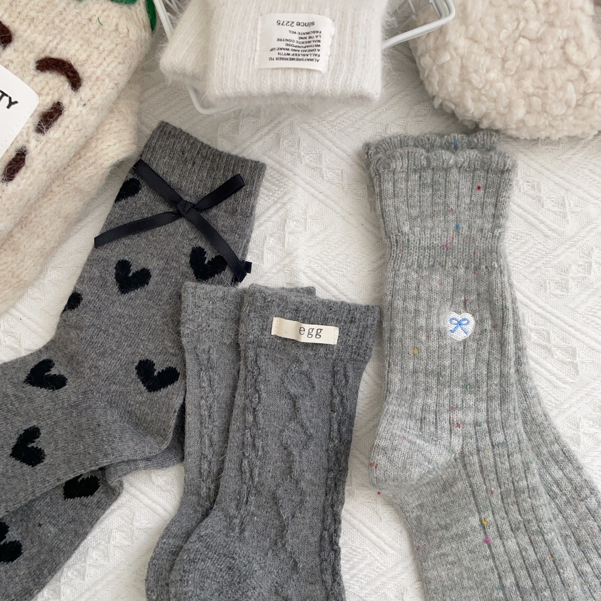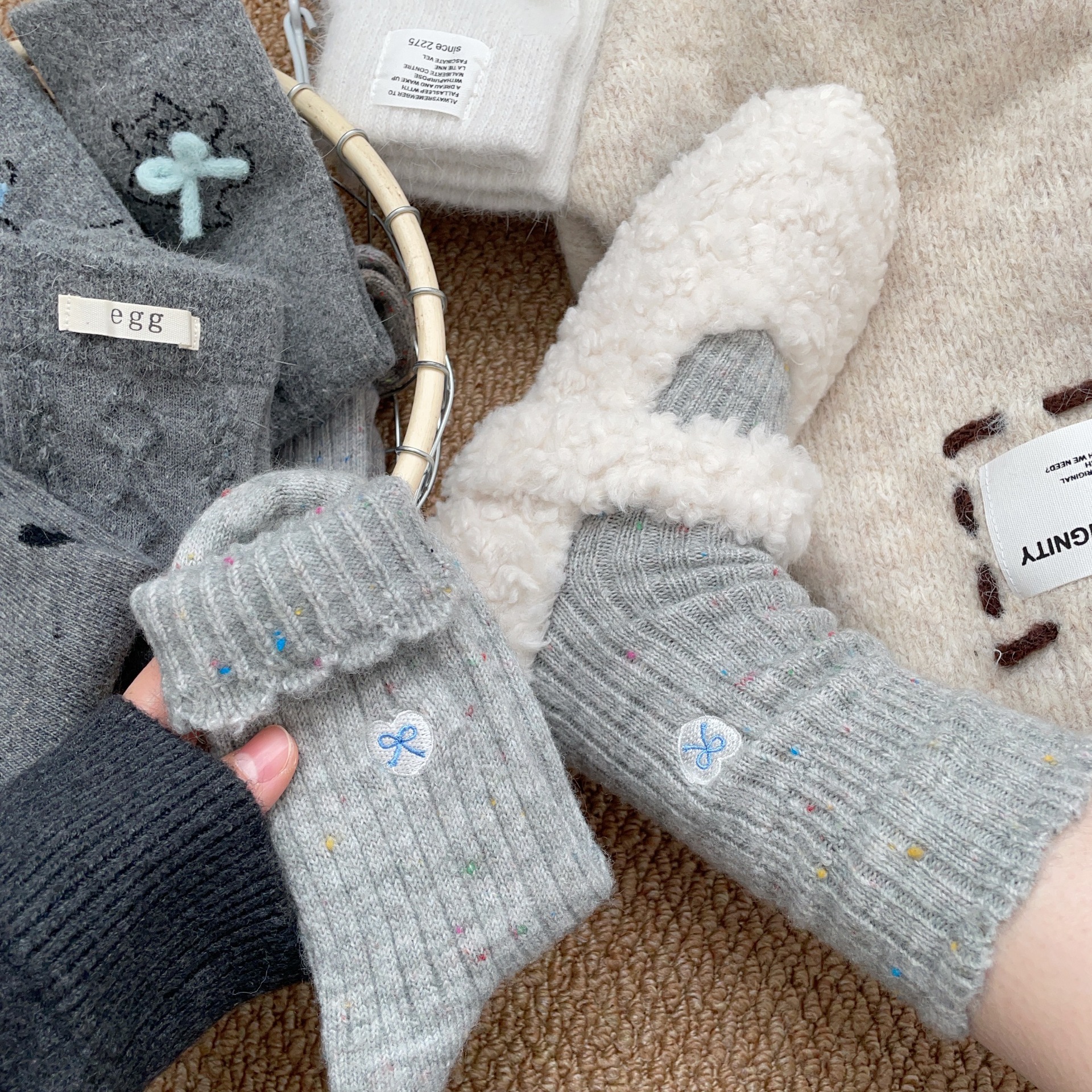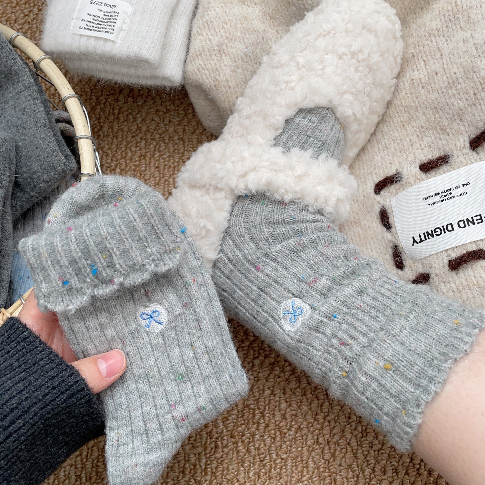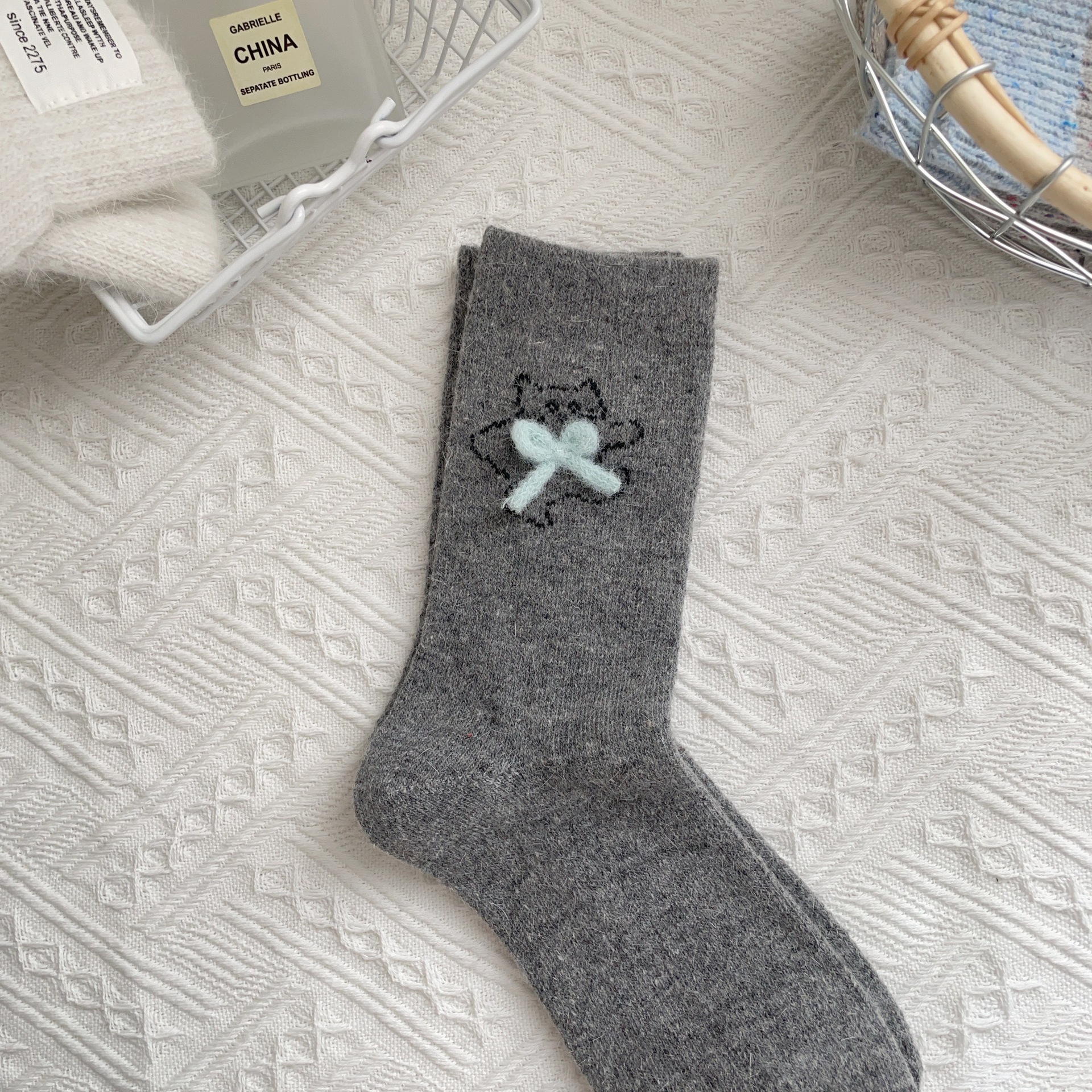 가을과 겨울 회색 파란색 두꺼운 기모 토끼 양모 양말 따뜻한 튜브 양말 어린이 인플 무리 활 더미 양말