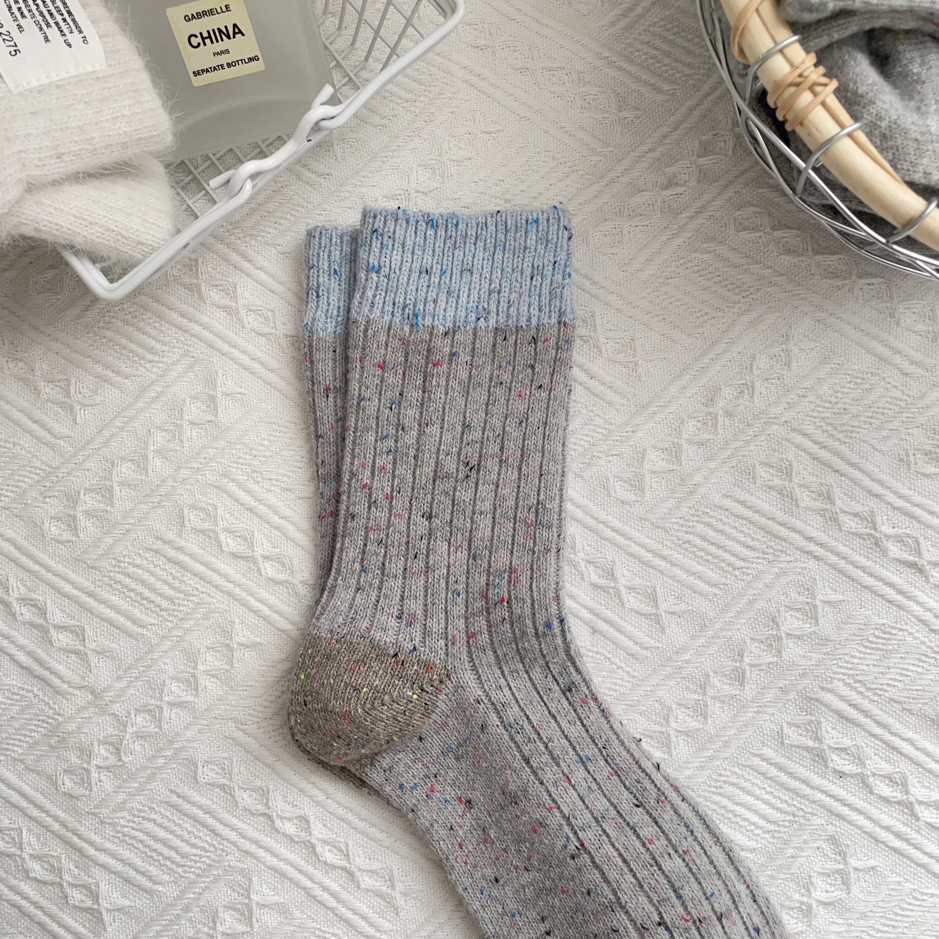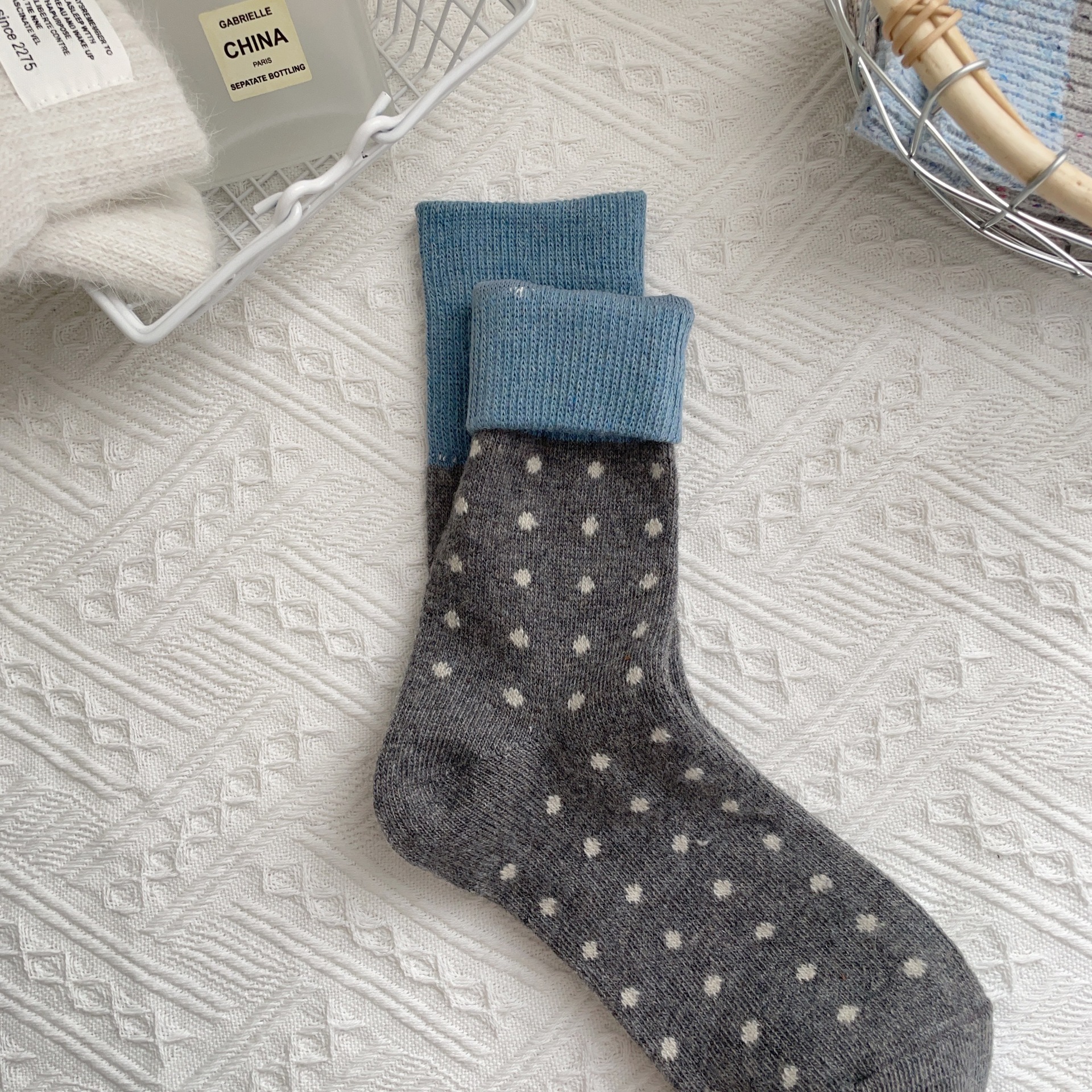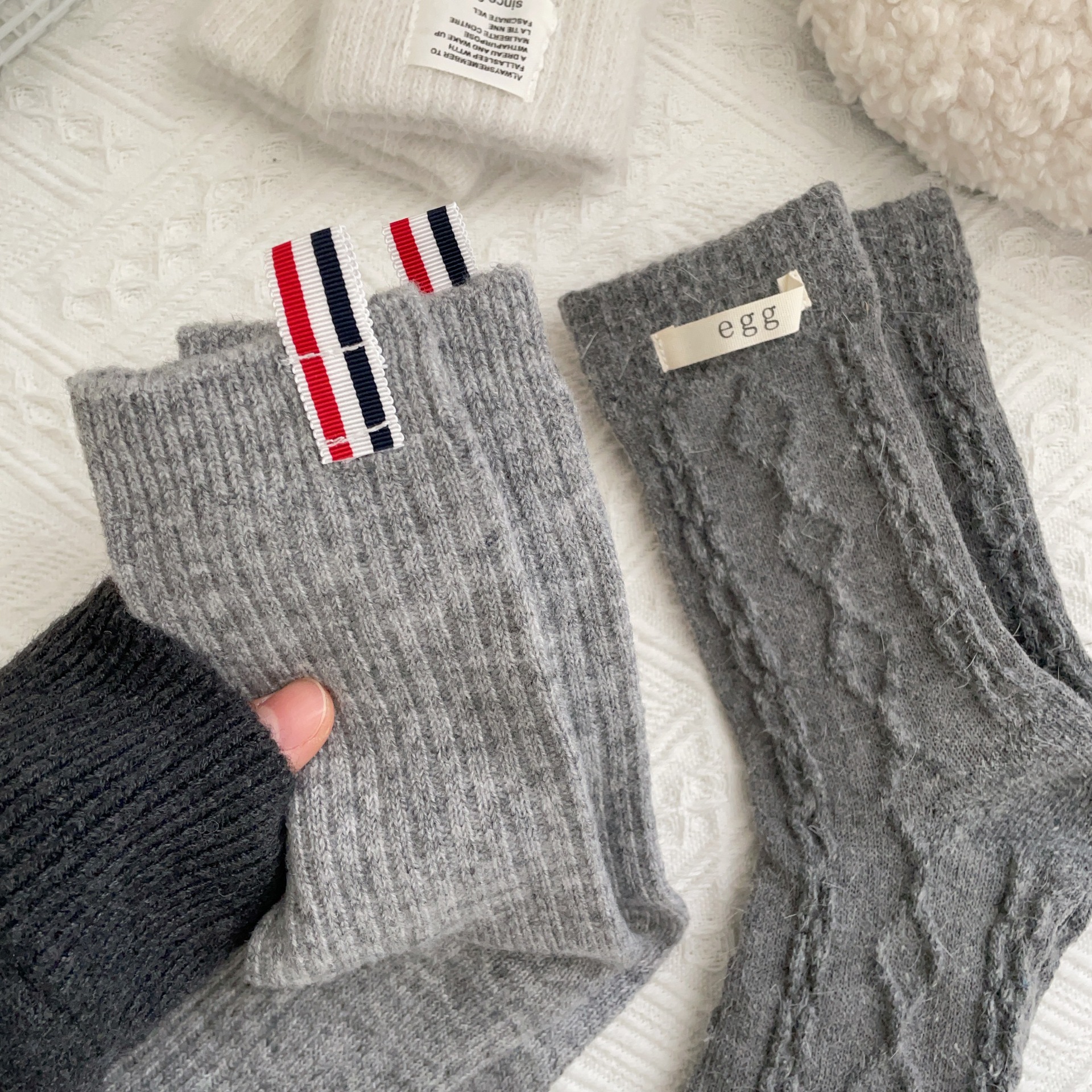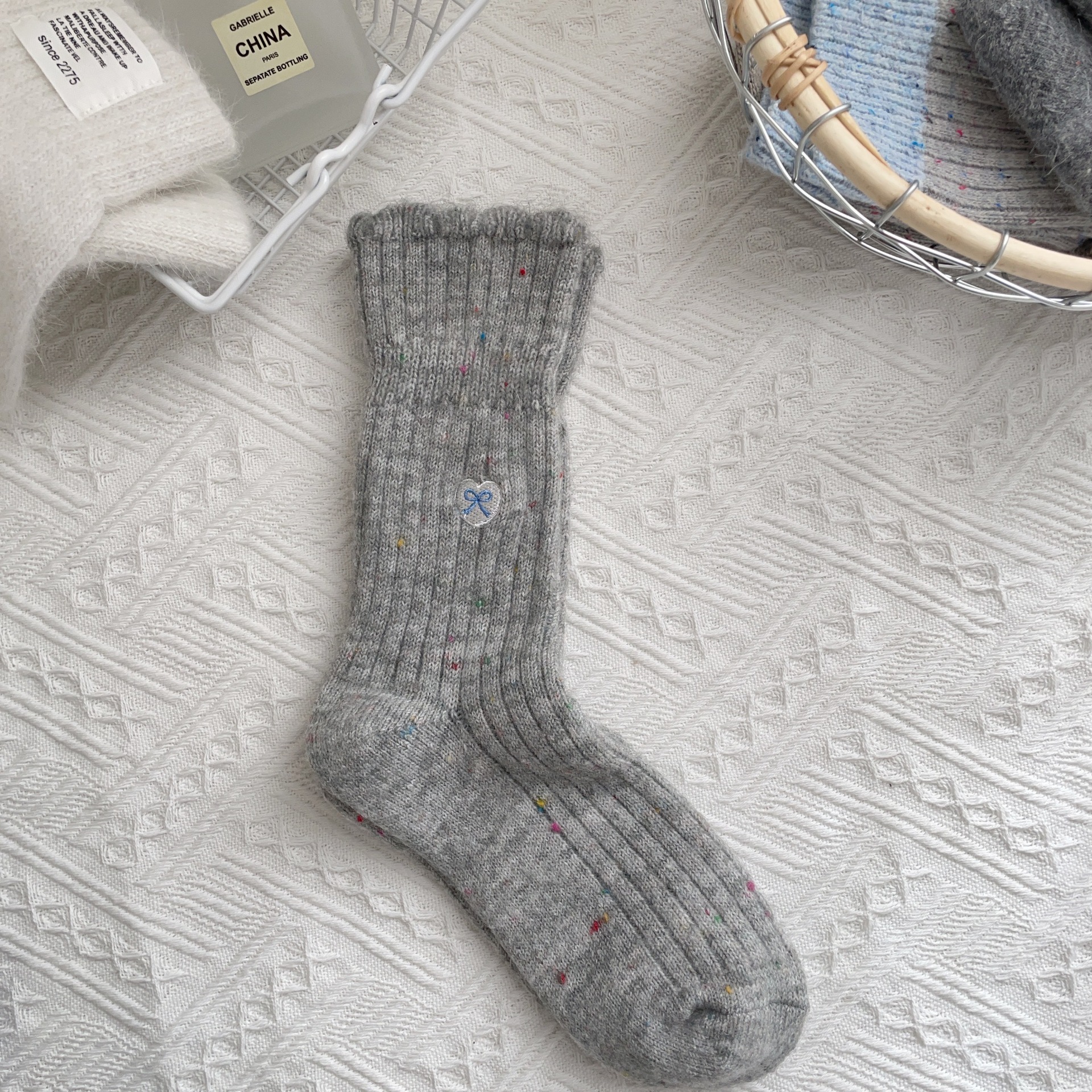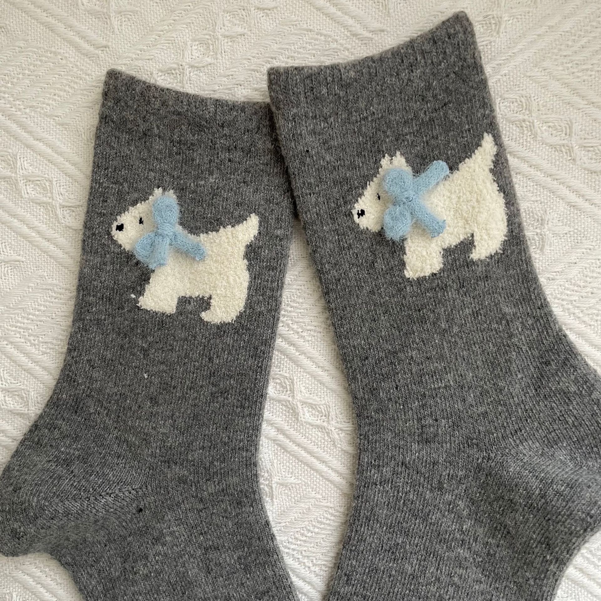 가을과 겨울 회색 파란색 두꺼운 기모 토끼 양모 양말 따뜻한 튜브 양말 어린이 인플 무리 활 더미 양말