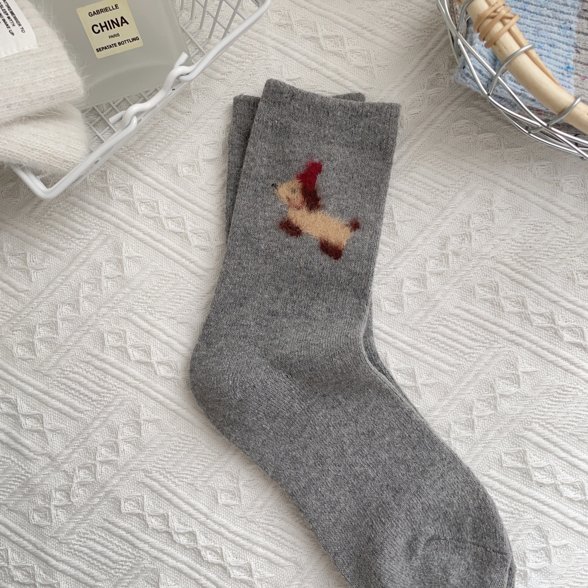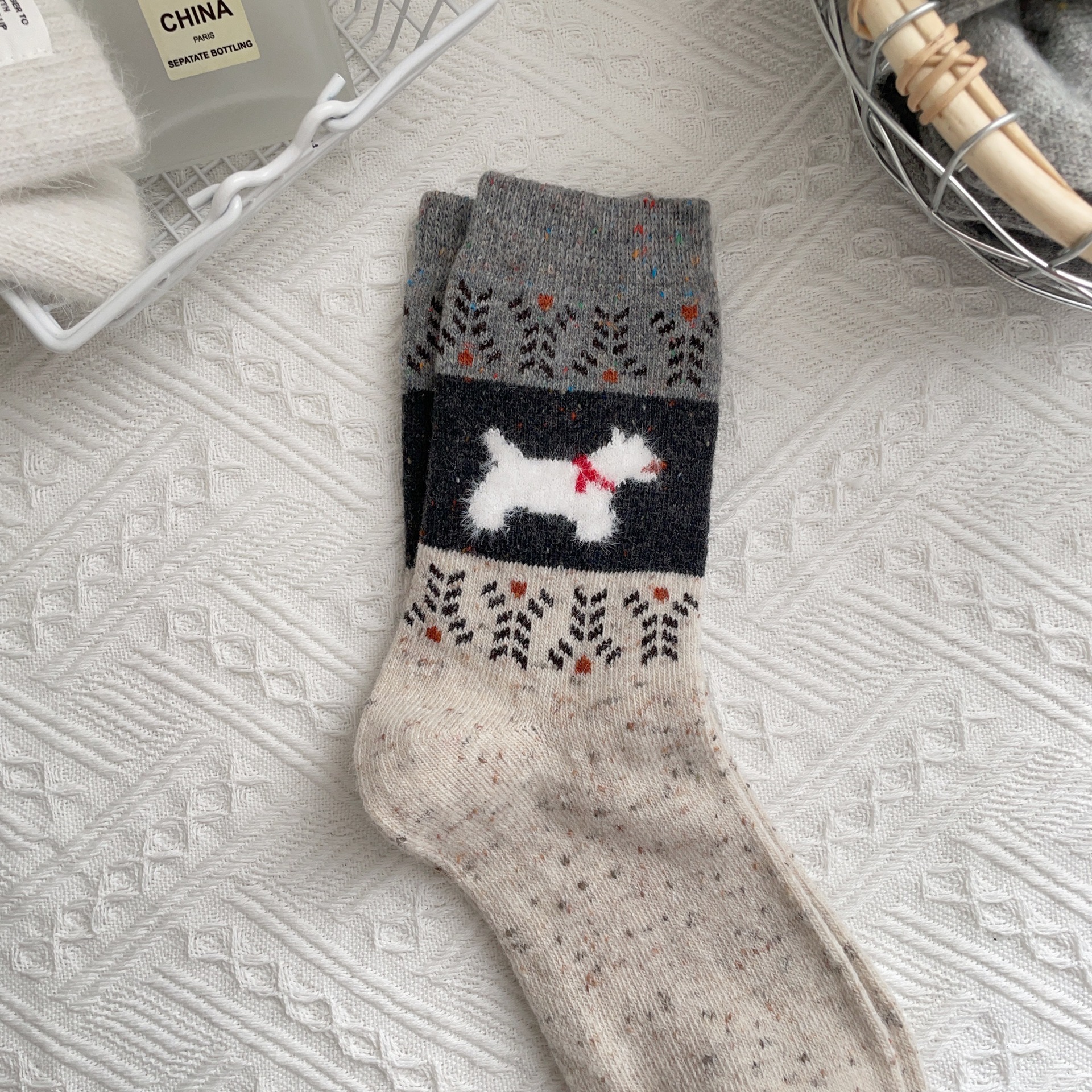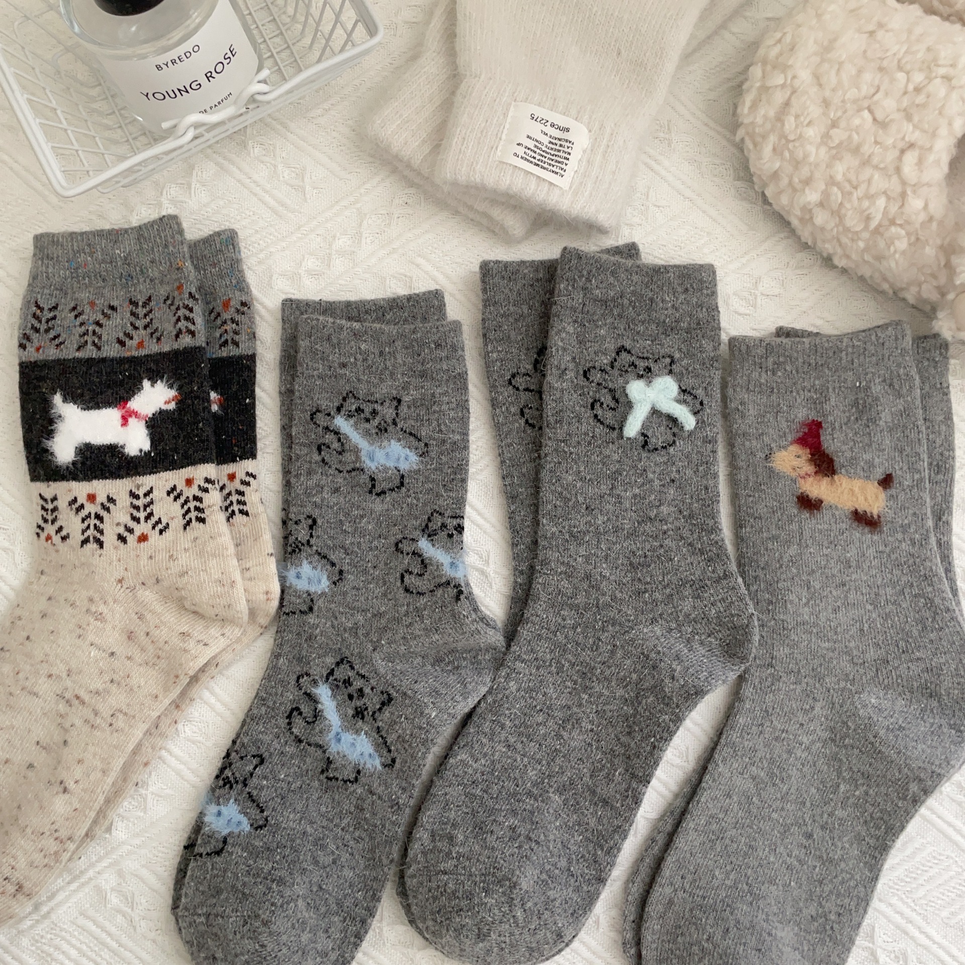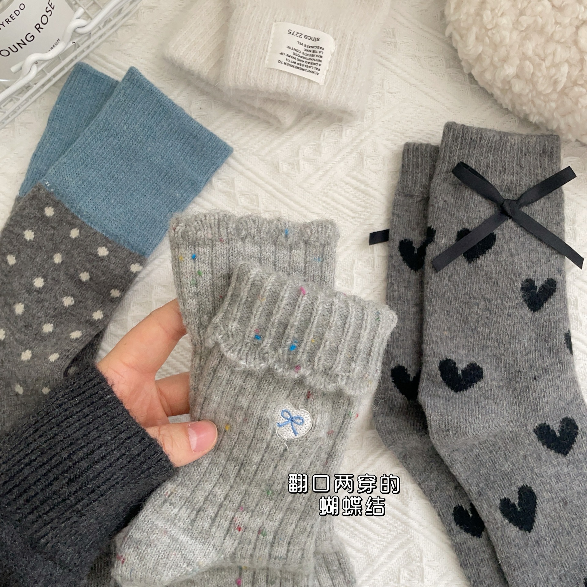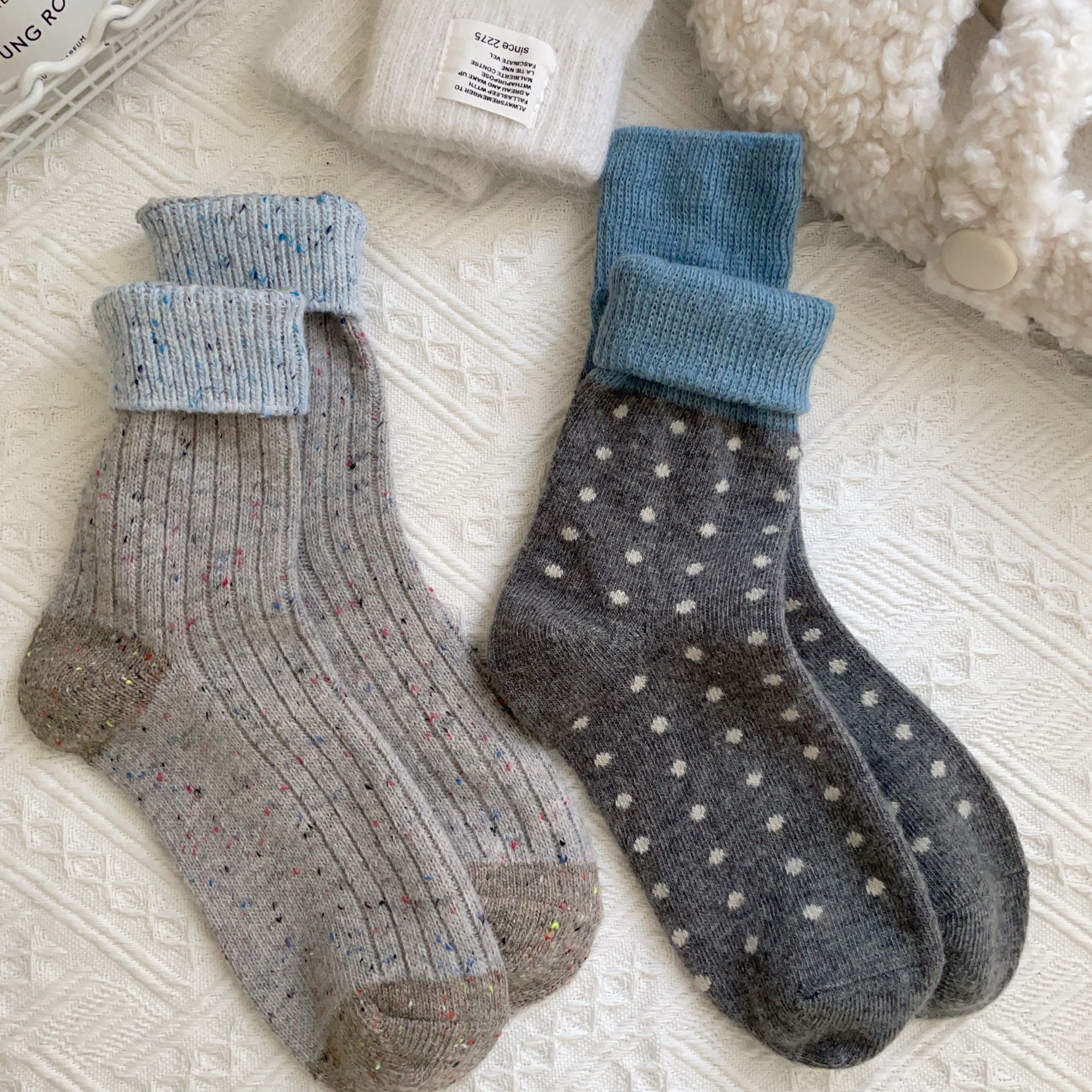 가을과 겨울 회색 파란색 두꺼운 기모 토끼 양모 양말 따뜻한 튜브 양말 어린이 인플 무리 활 더미 양말
