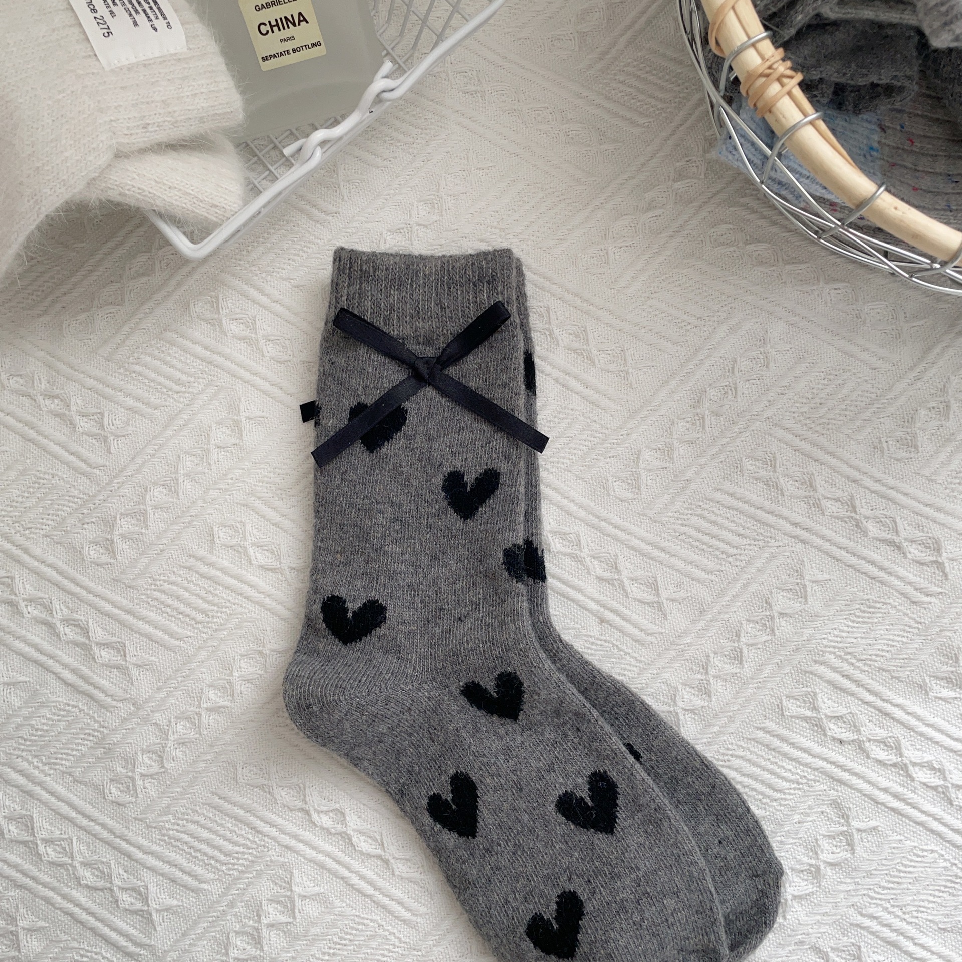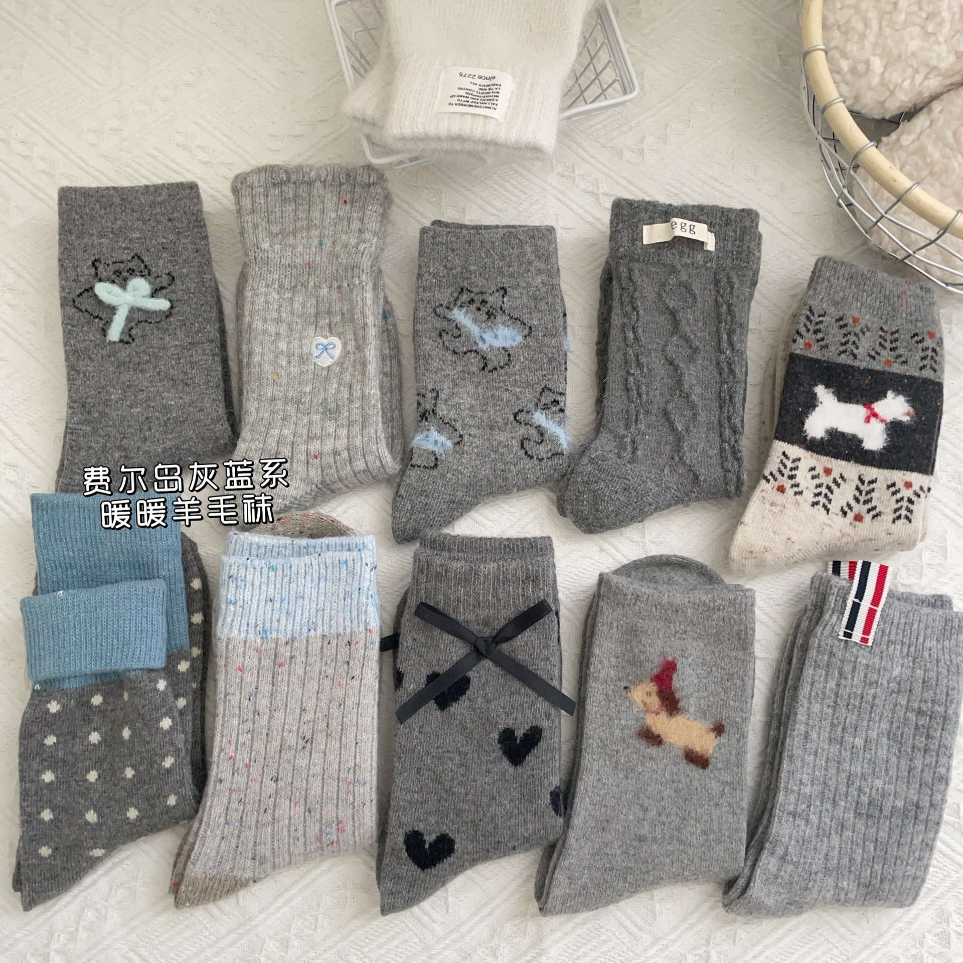 가을과 겨울 회색 파란색 두꺼운 기모 토끼 양모 양말 따뜻한 튜브 양말 어린이 인플 무리 활 더미 양말스토어 가기