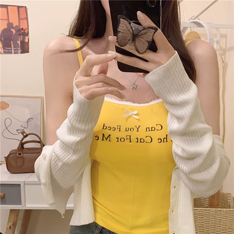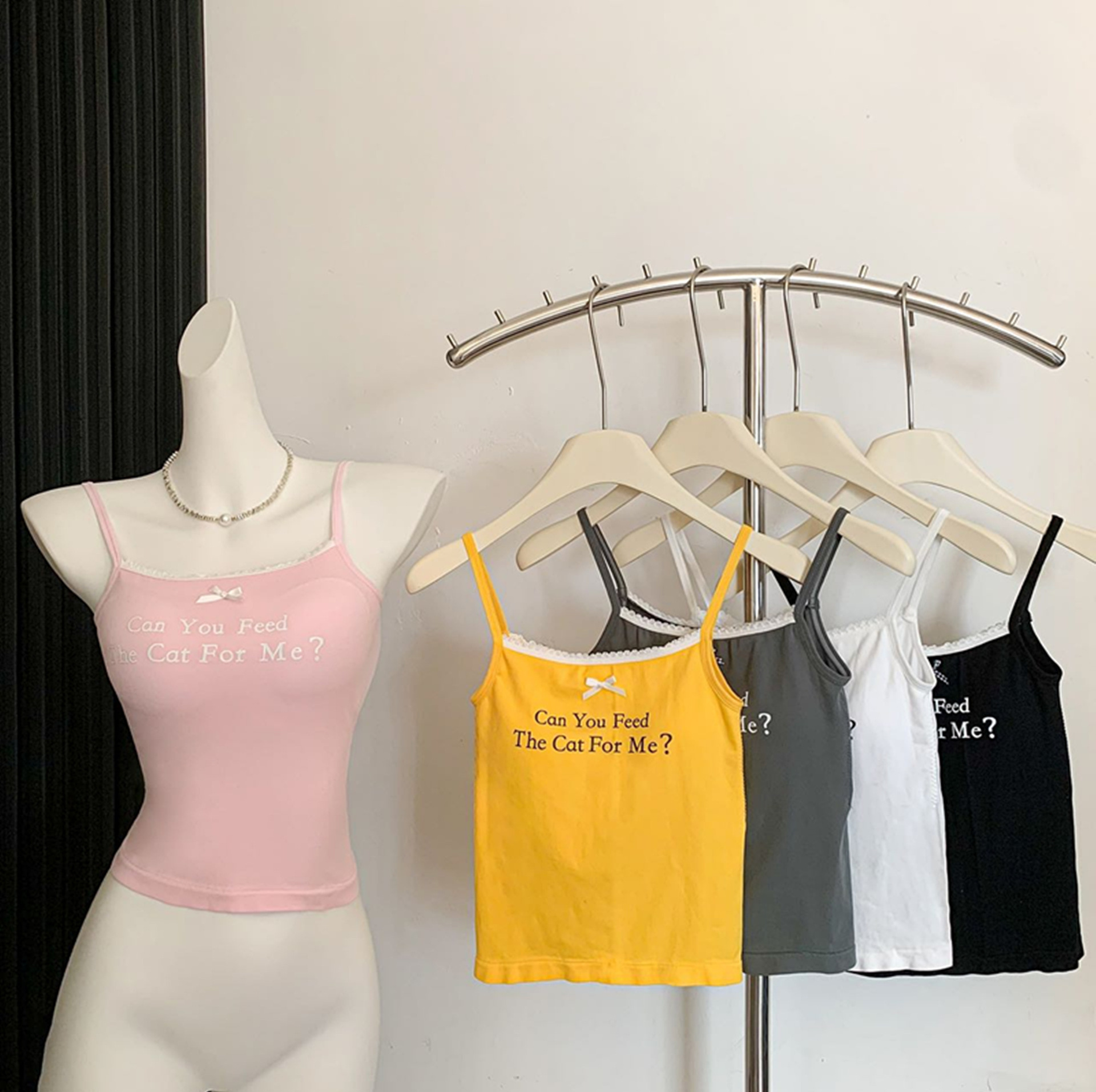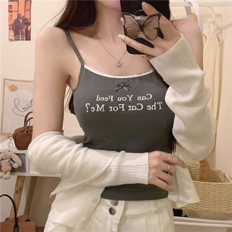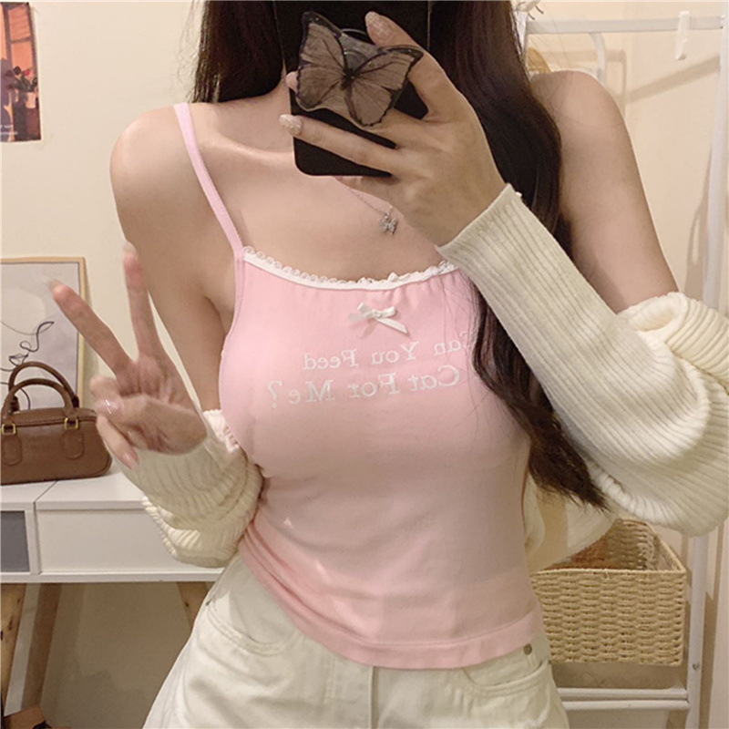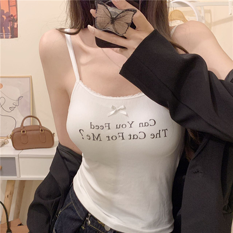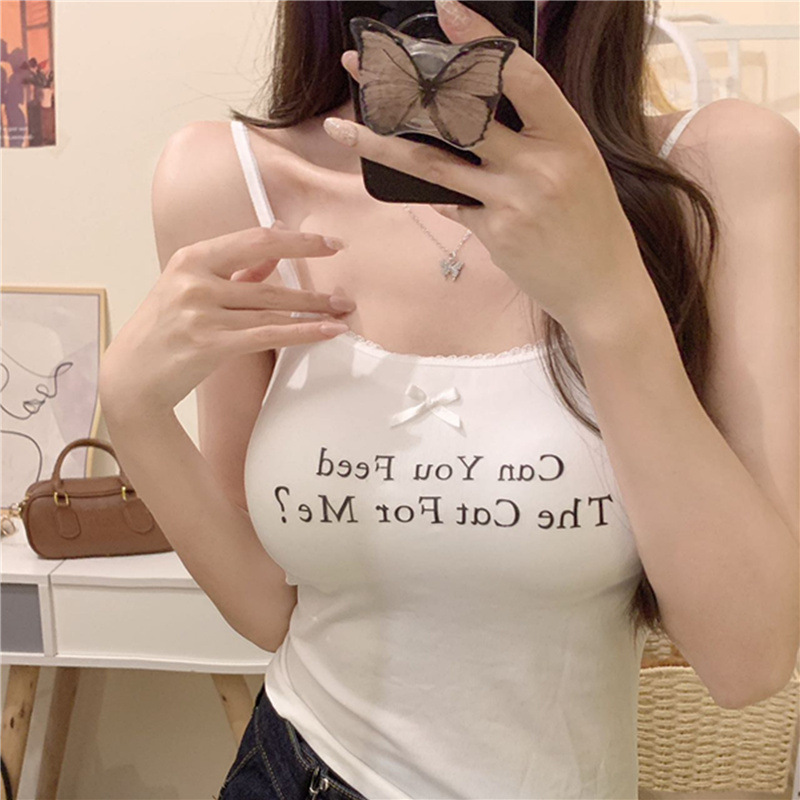 새로운 달콤한 스파이스 소녀 인쇄 편지 조끼 작은 슬링 순수한 욕망 소녀 여름 슬림 핏 올매치 탑 슬링