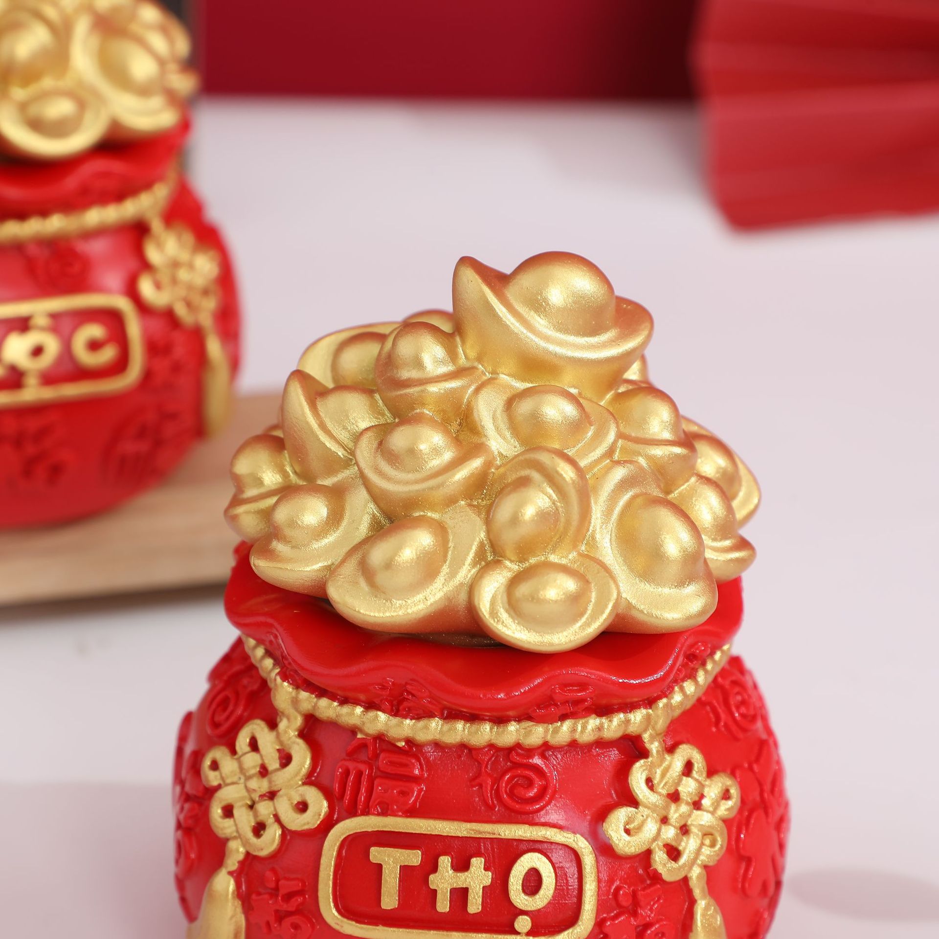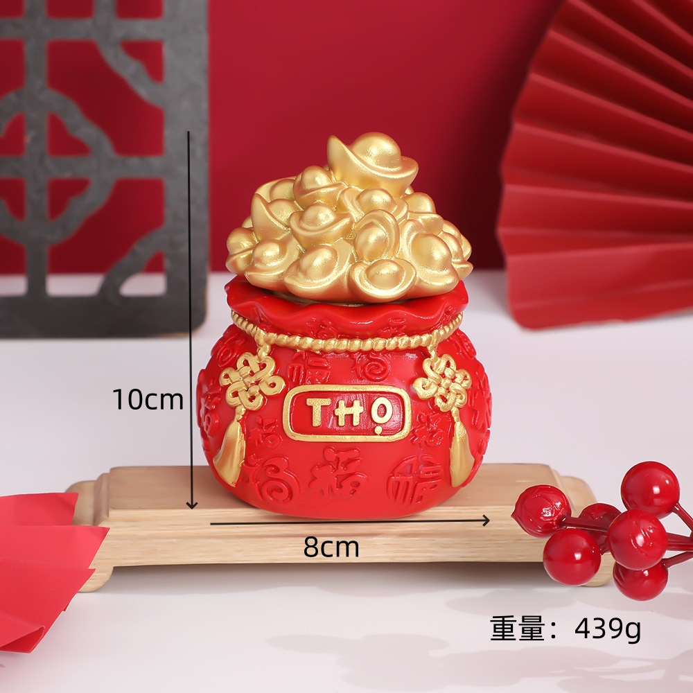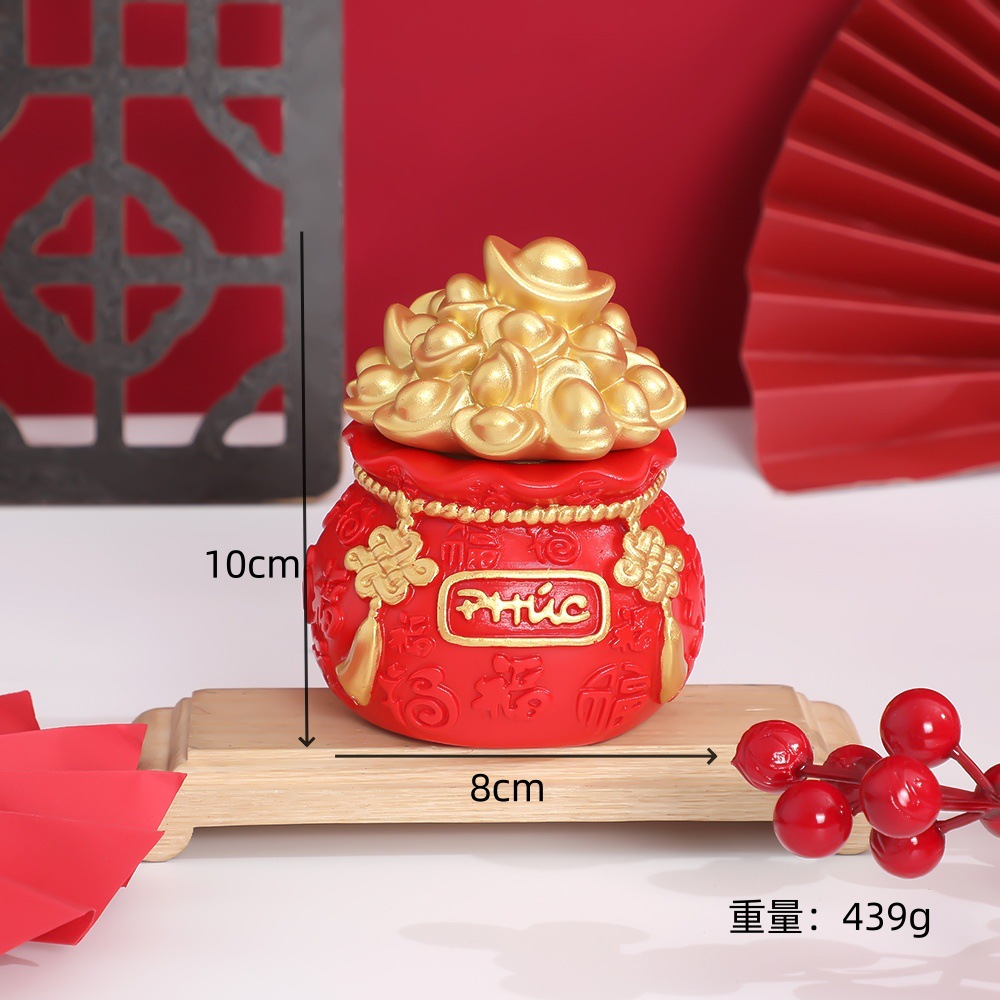 새해 좋은 행운 중국 매듭 Yuanbao 돈 가방 뱀 행운의 수지 공예 자동차 데스크탑 Cornucopia 작은 장식품