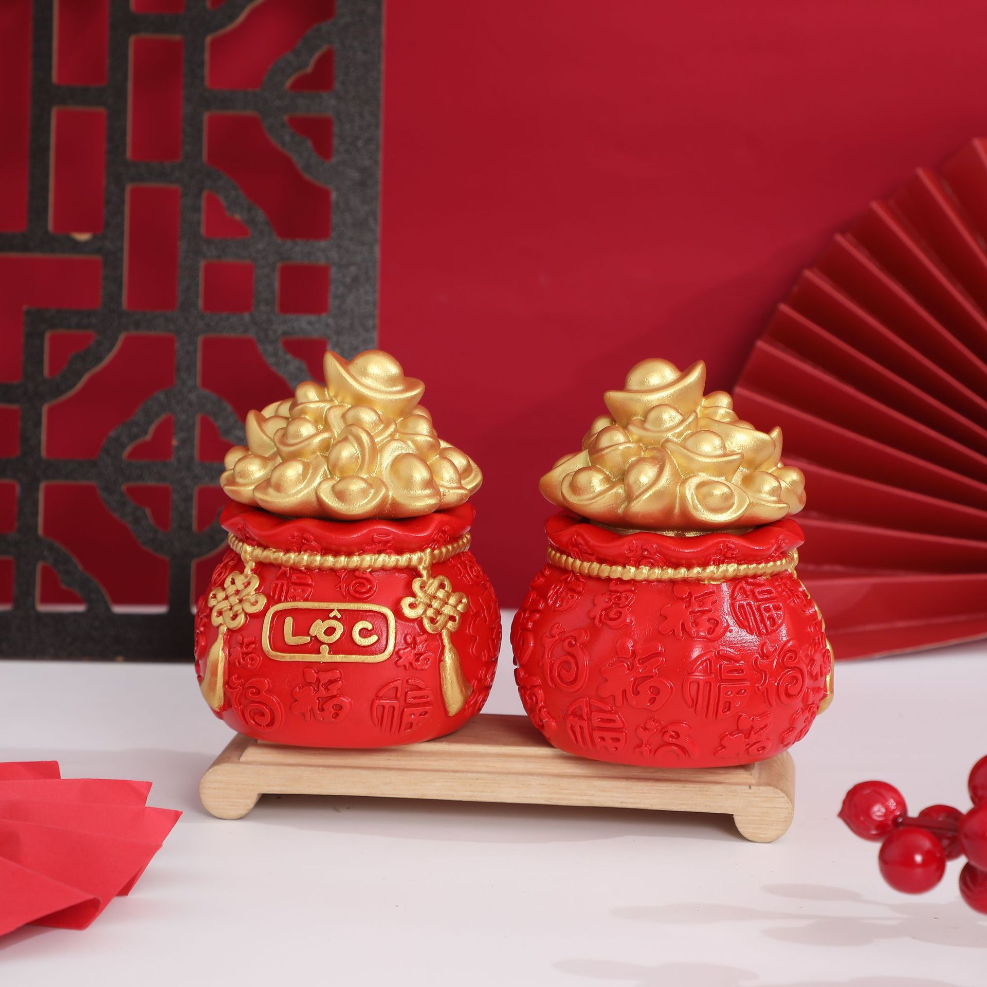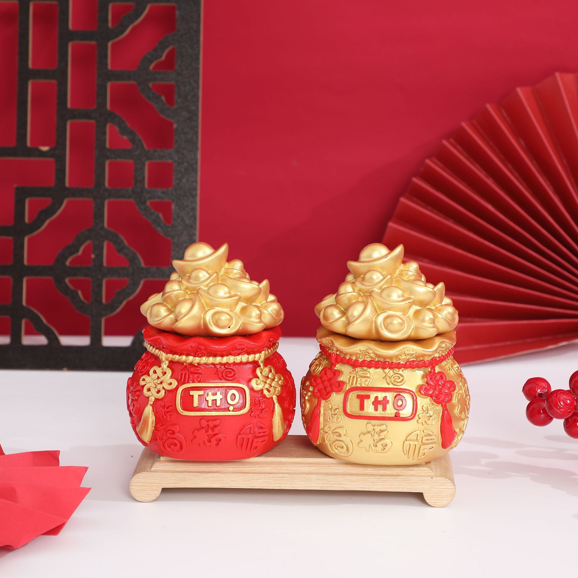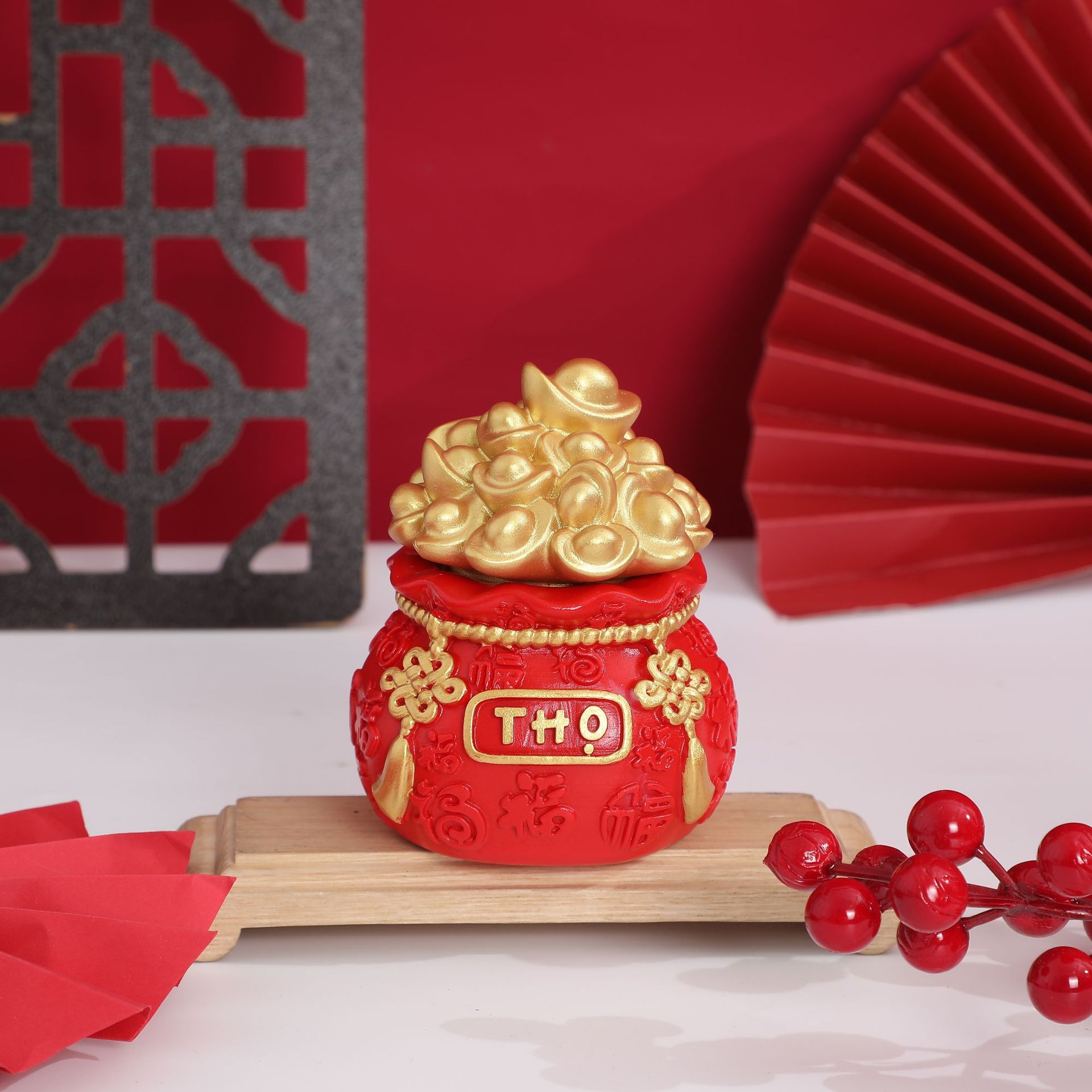 새해 좋은 행운 중국 매듭 Yuanbao 돈 가방 뱀 행운의 수지 공예 자동차 데스크탑 Cornucopia 작은 장식품