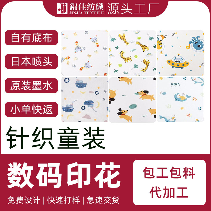 21S 30S 40S 50 면 니트 코튼 풀 랙 어린이 의류 레이온 액티브 직접 사출 디지털 인쇄 직물스토어 가기